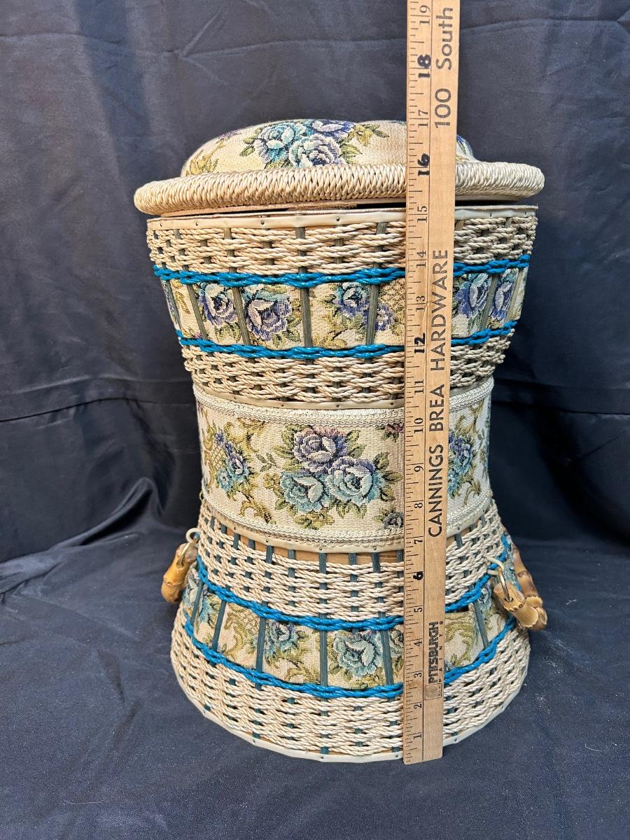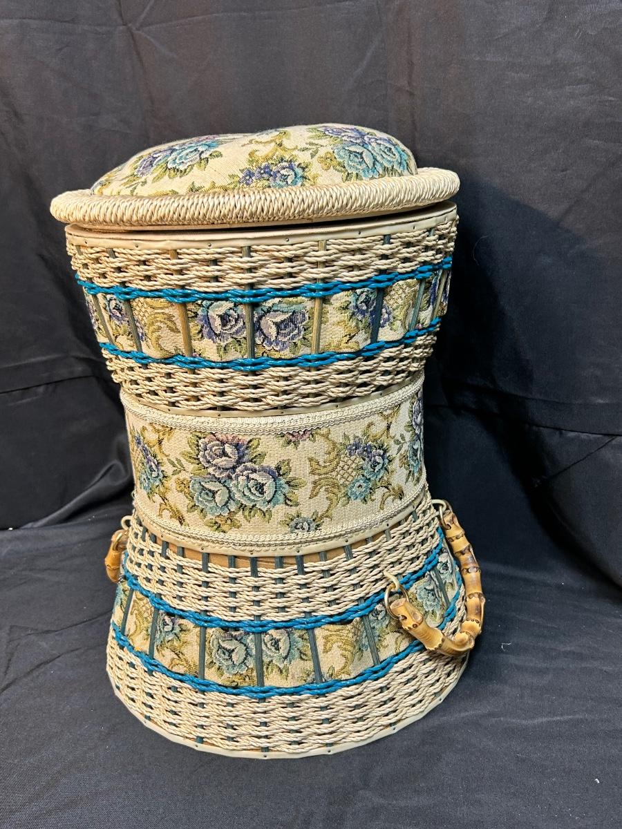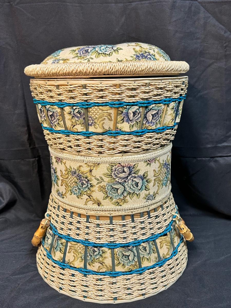 Retro Vintage Triple Stack Three Tier Wicker Sewing Basket Stool Ottoman with Handles Japan