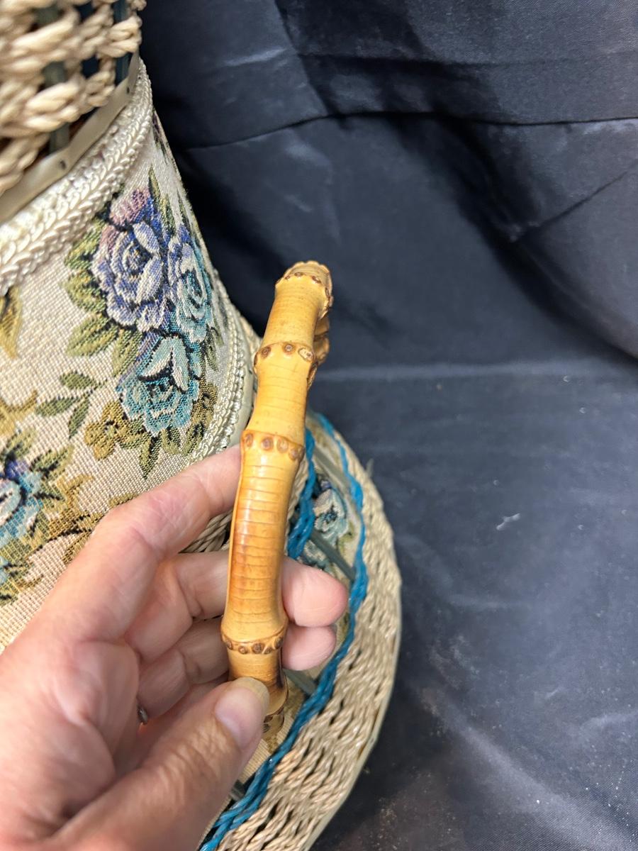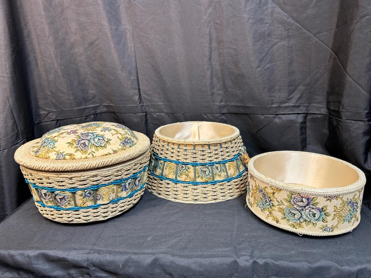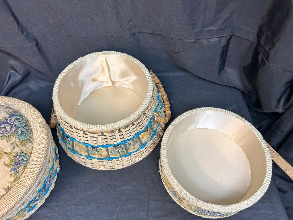 Retro Vintage Triple Stack Three Tier Wicker Sewing Basket Stool Ottoman with Handles Japan