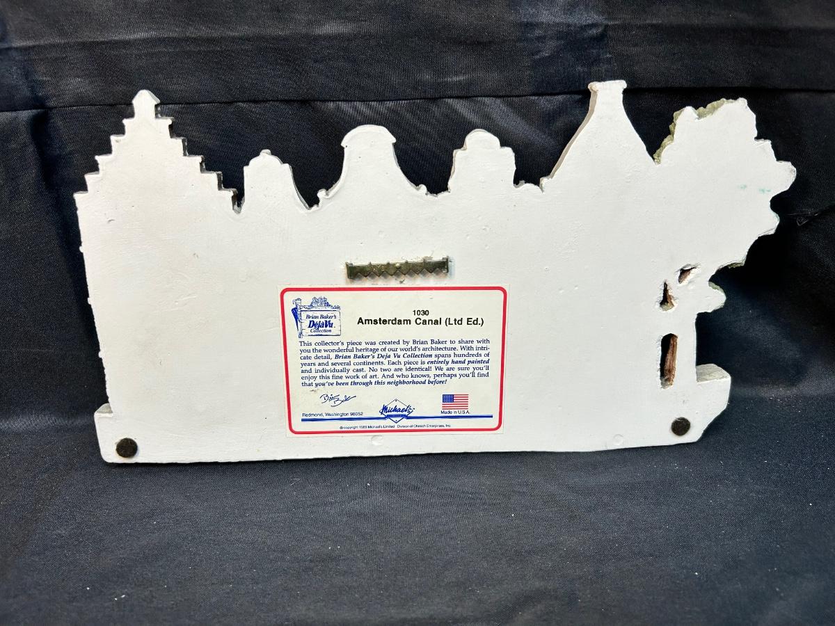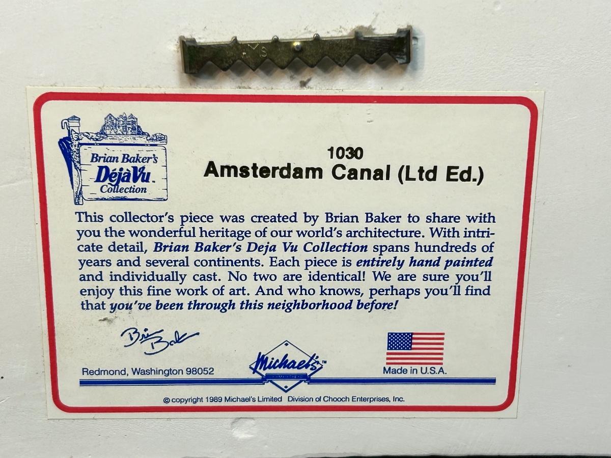 Brian Baker's DeJa'Vu Collection Amsterdam Canal Limited Edition Wall Plaque Signed and Numbered. In good condition. Signed on the front near the bottom.