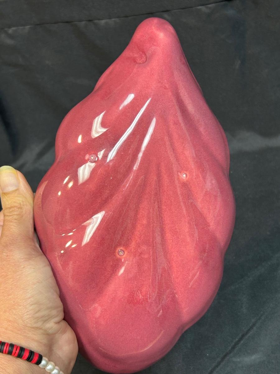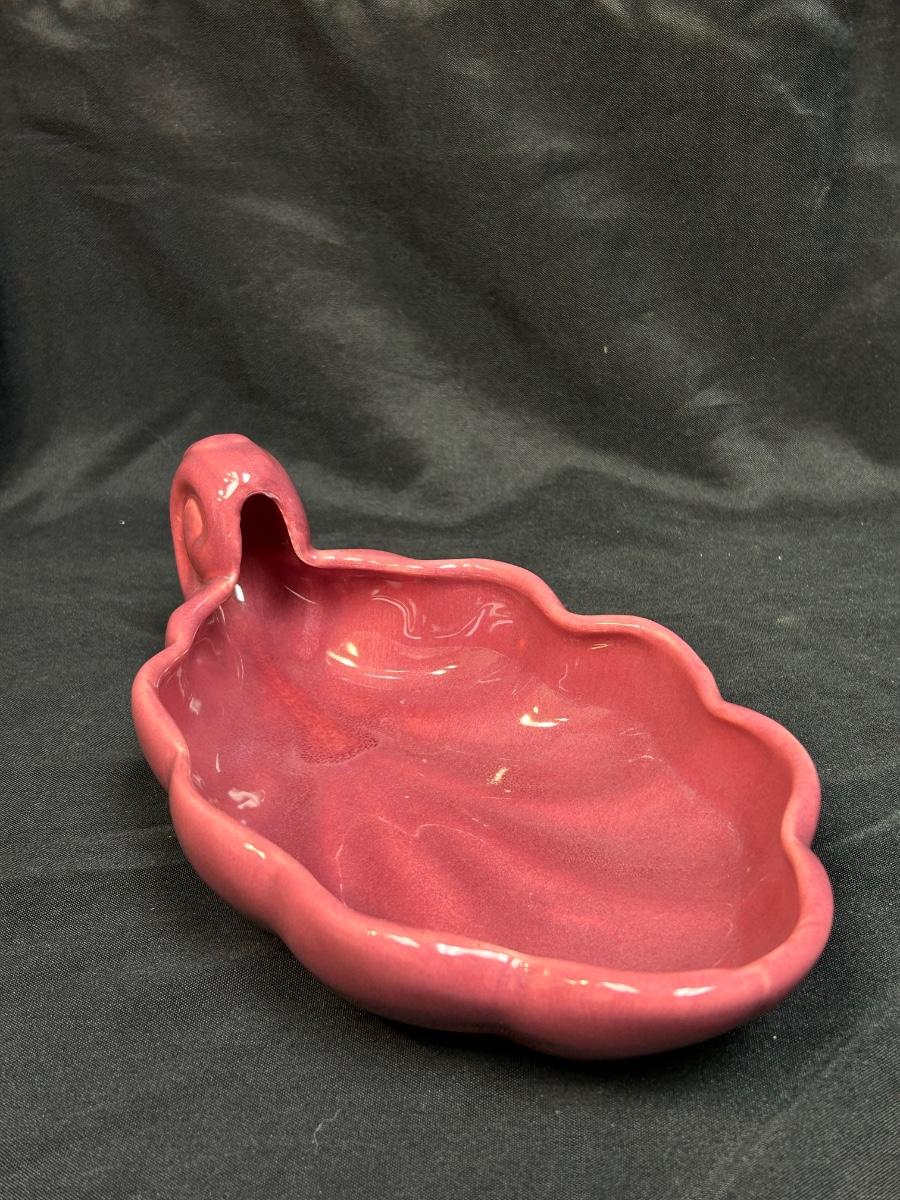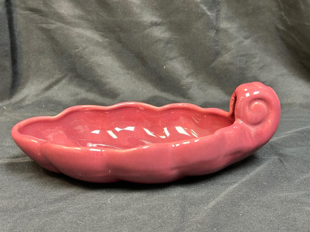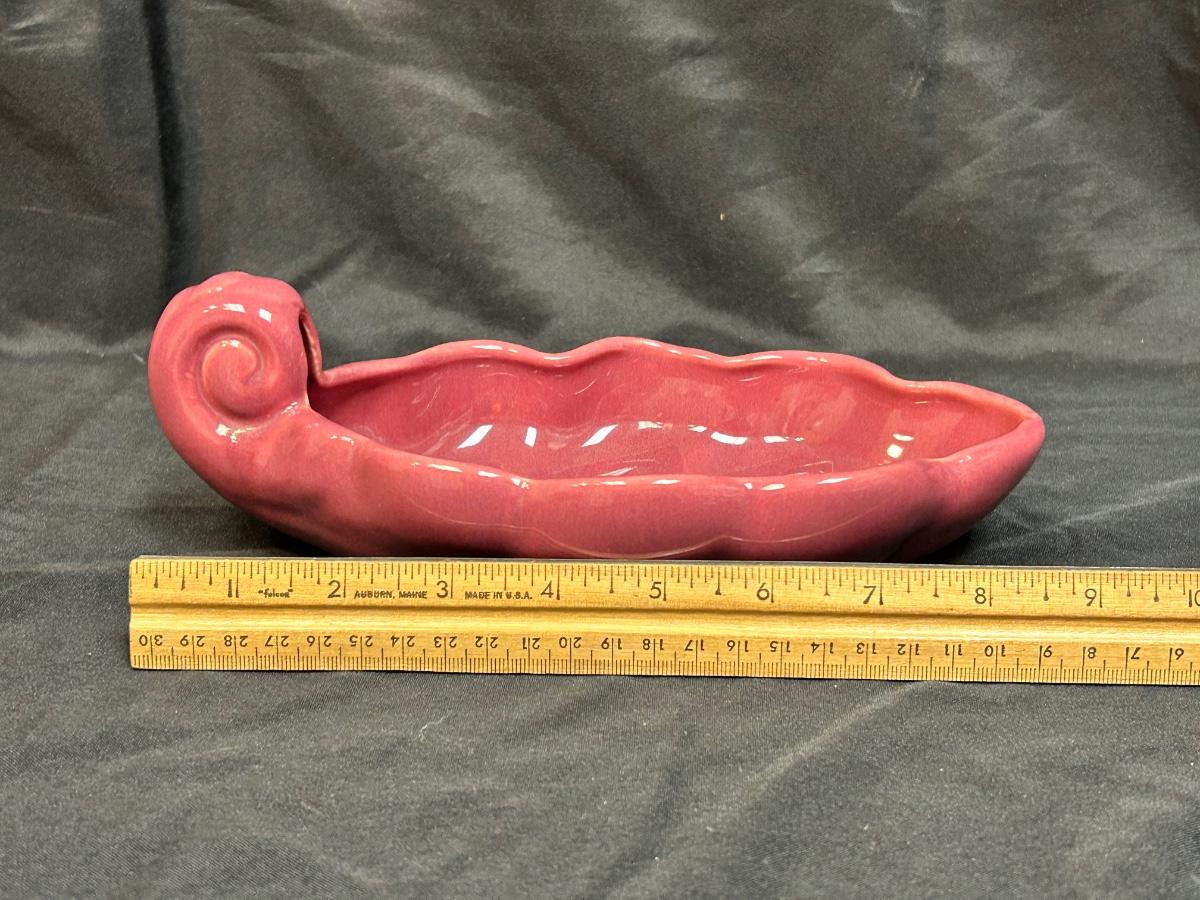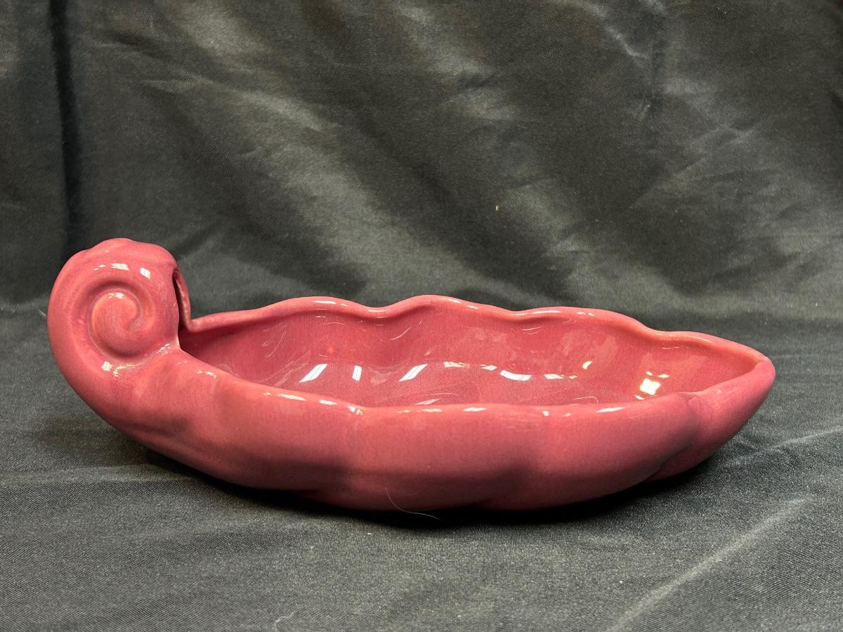 Vintage Dusty Rose Maroon Pink Scallop Shell Oblong Relish Trinket Dish. In good condition. Unbranded midcentury pottery. No chips.