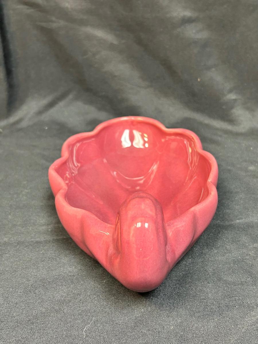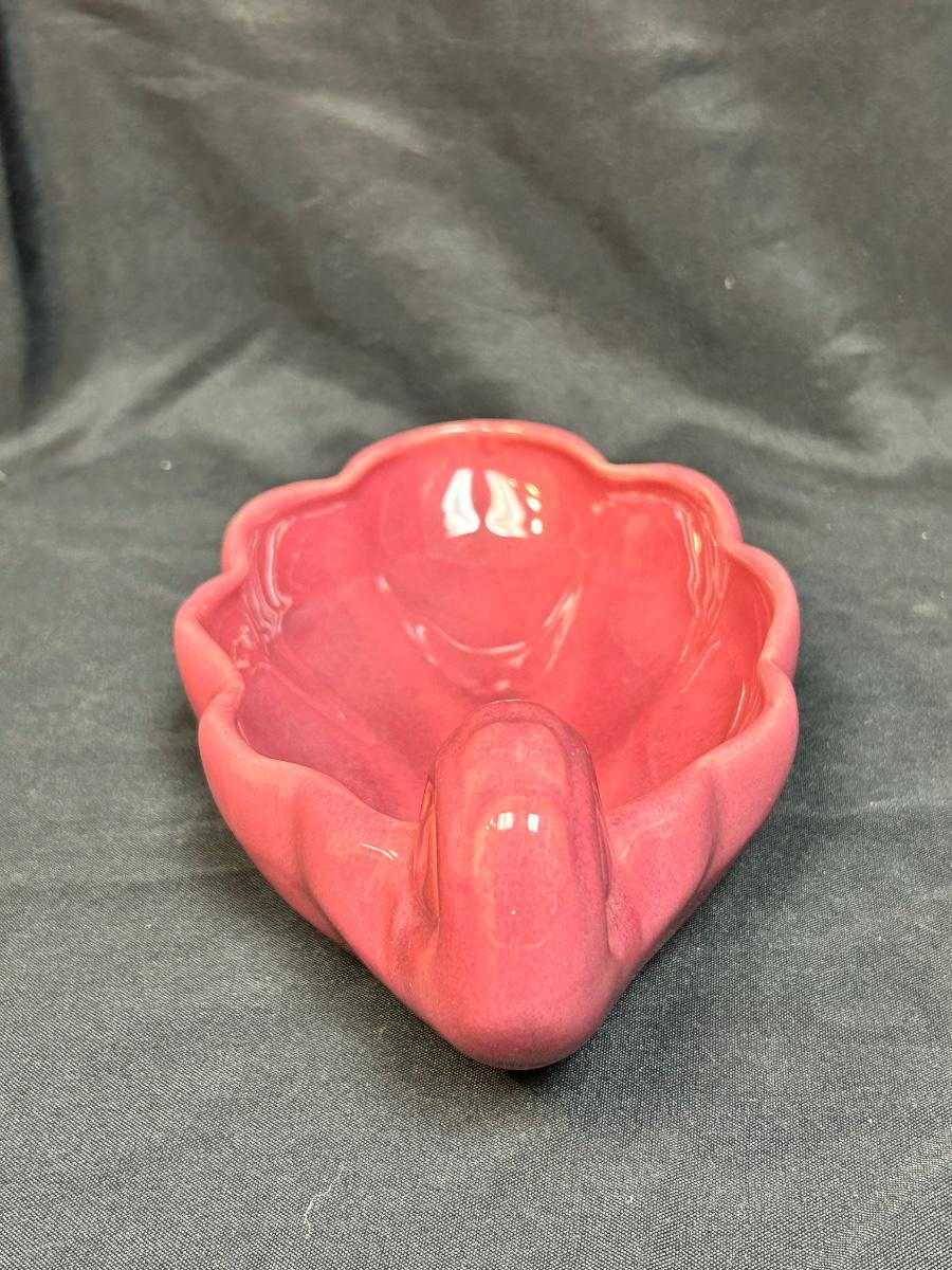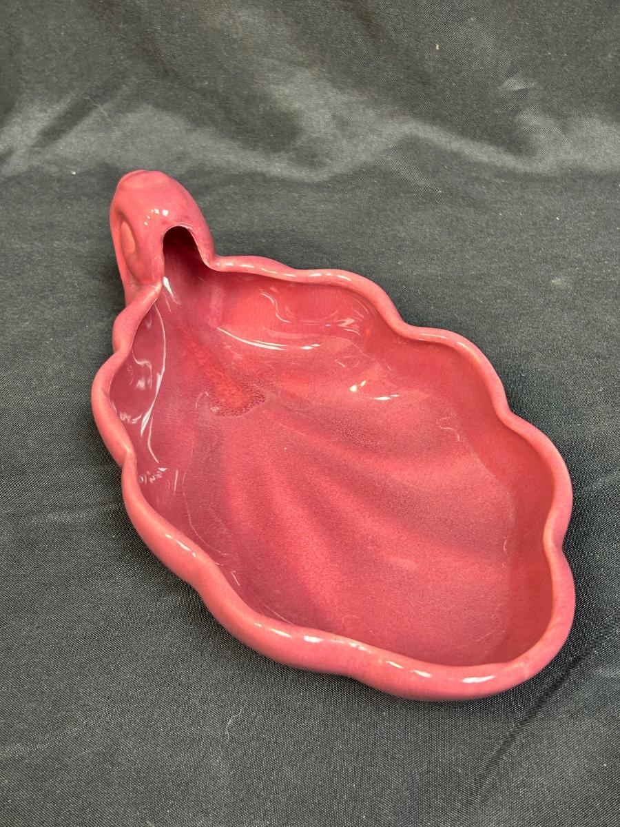 Vintage Dusty Rose Maroon Pink Scallop Shell Oblong Relish Trinket Dish