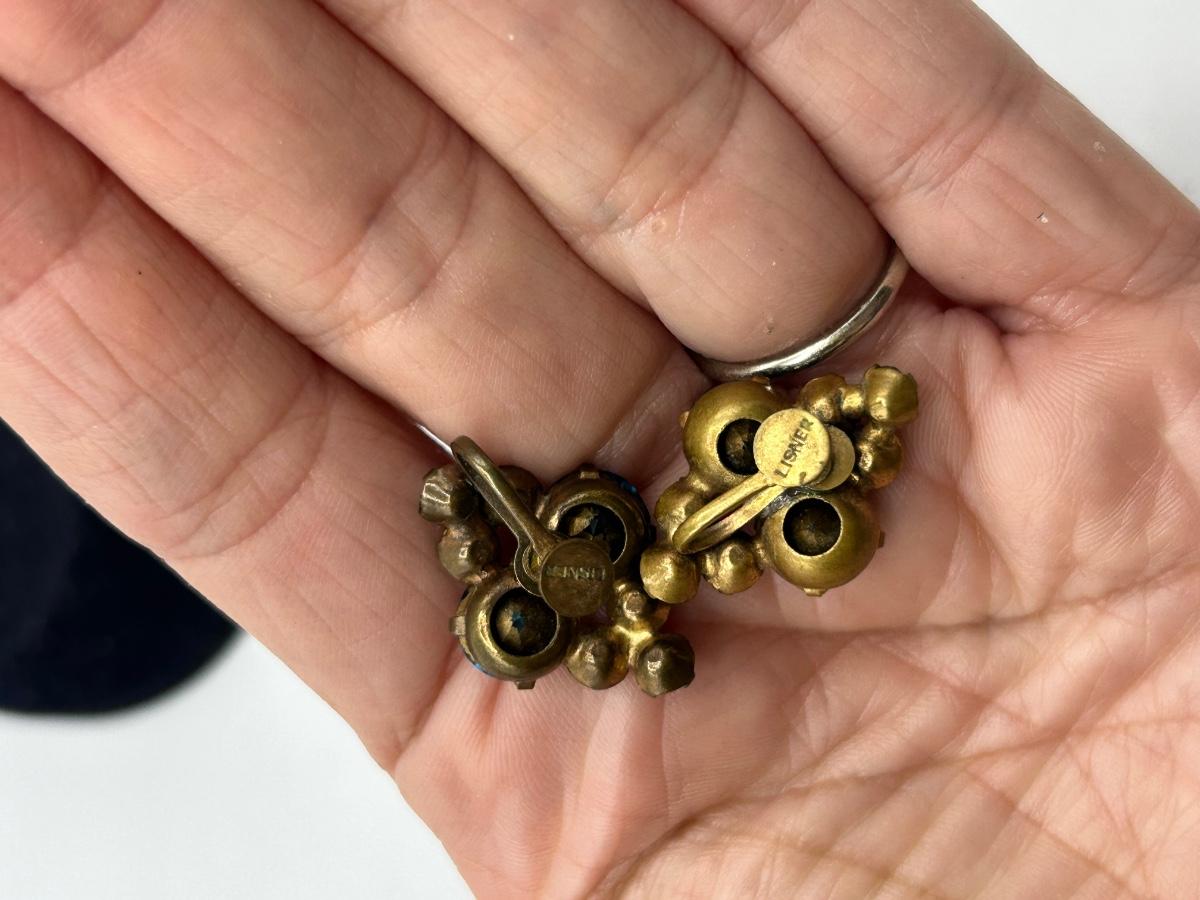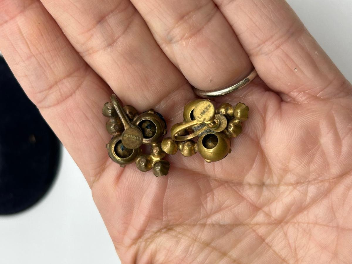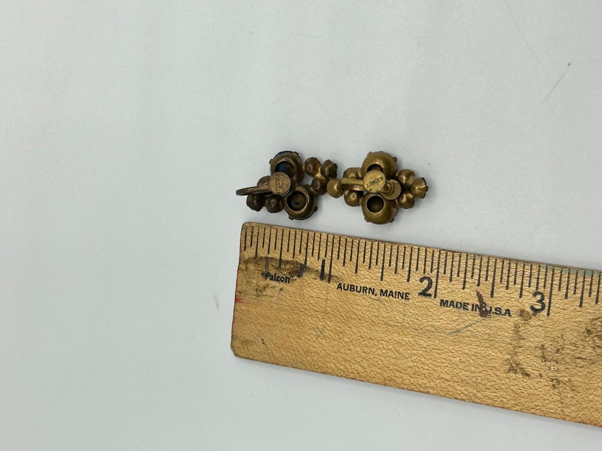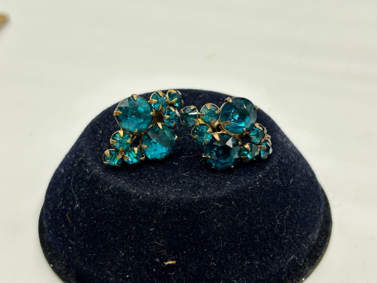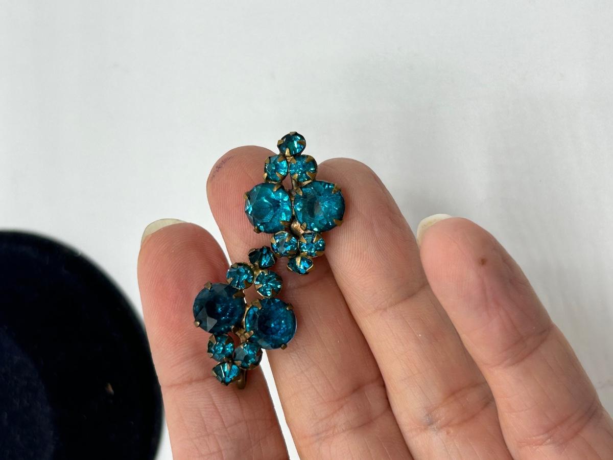 Vintage Turquoise Blue Rhinestone Cluster Screw Back Earrings