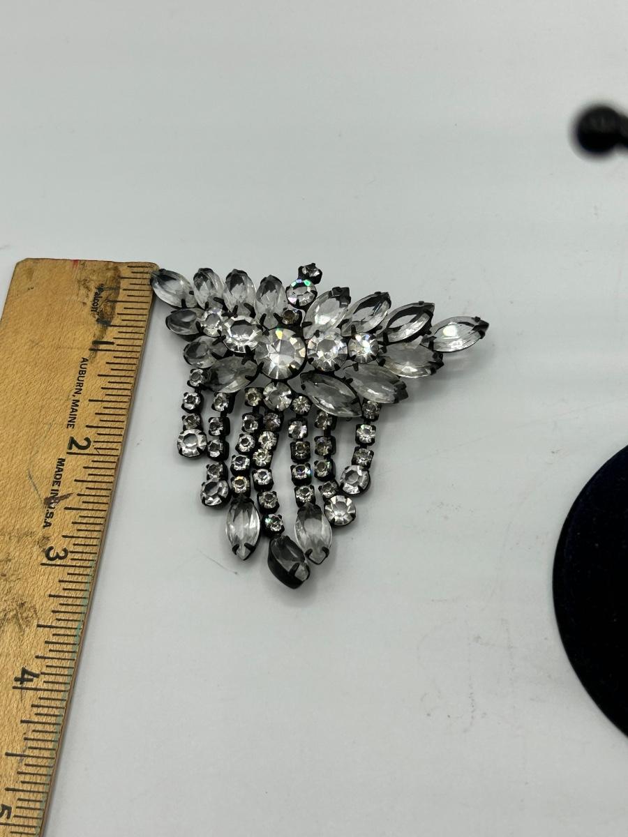 Large 3" Clear Rhinestone in Black Metal Setting Dangling Statement Pin Brooch