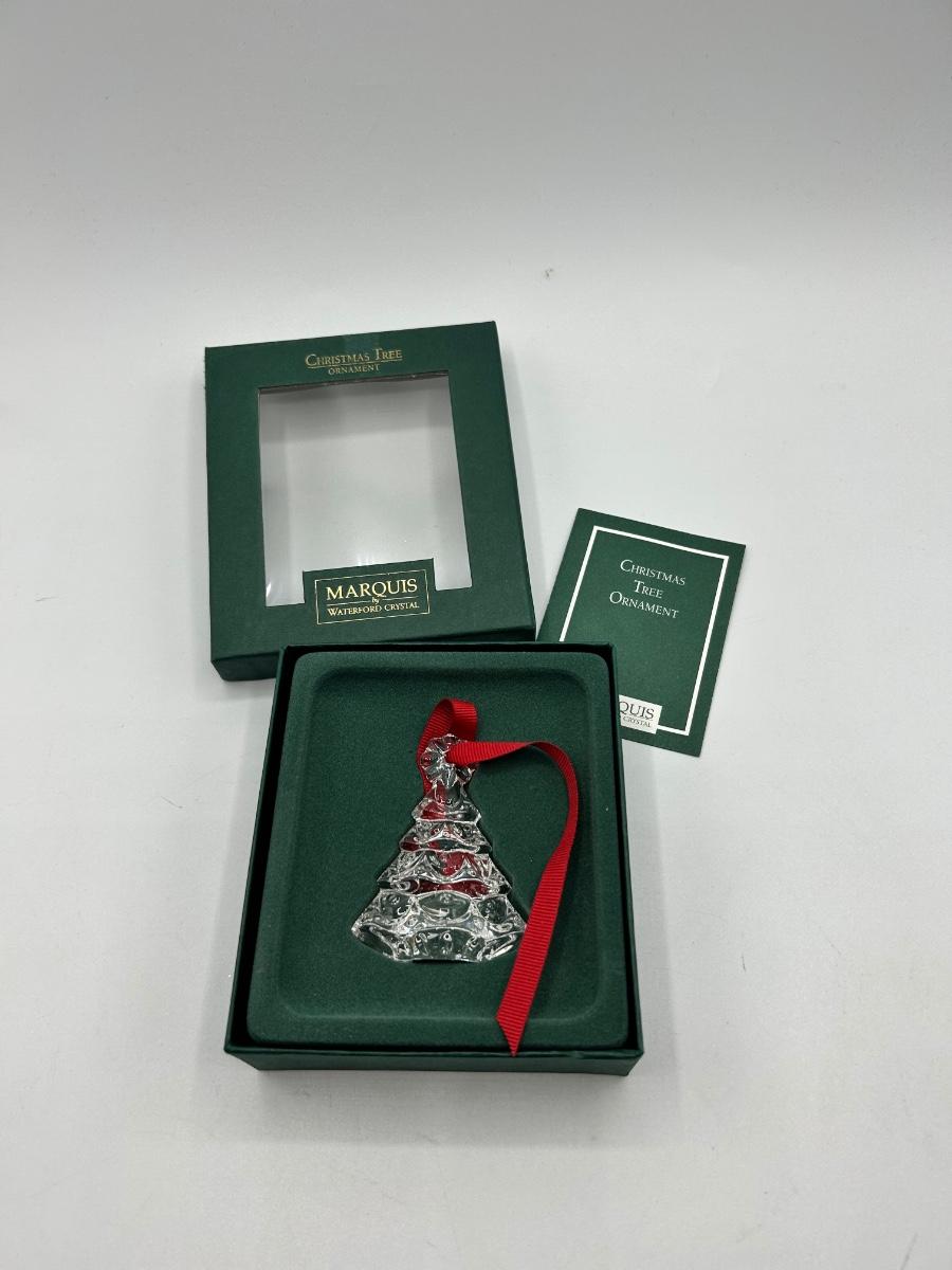 Vintage Marquis by Waterford Crystal Christmas Tree Ornament with Box & Original Sticker. In good condition. Original Marquis sticker attached to the bottom of tree.