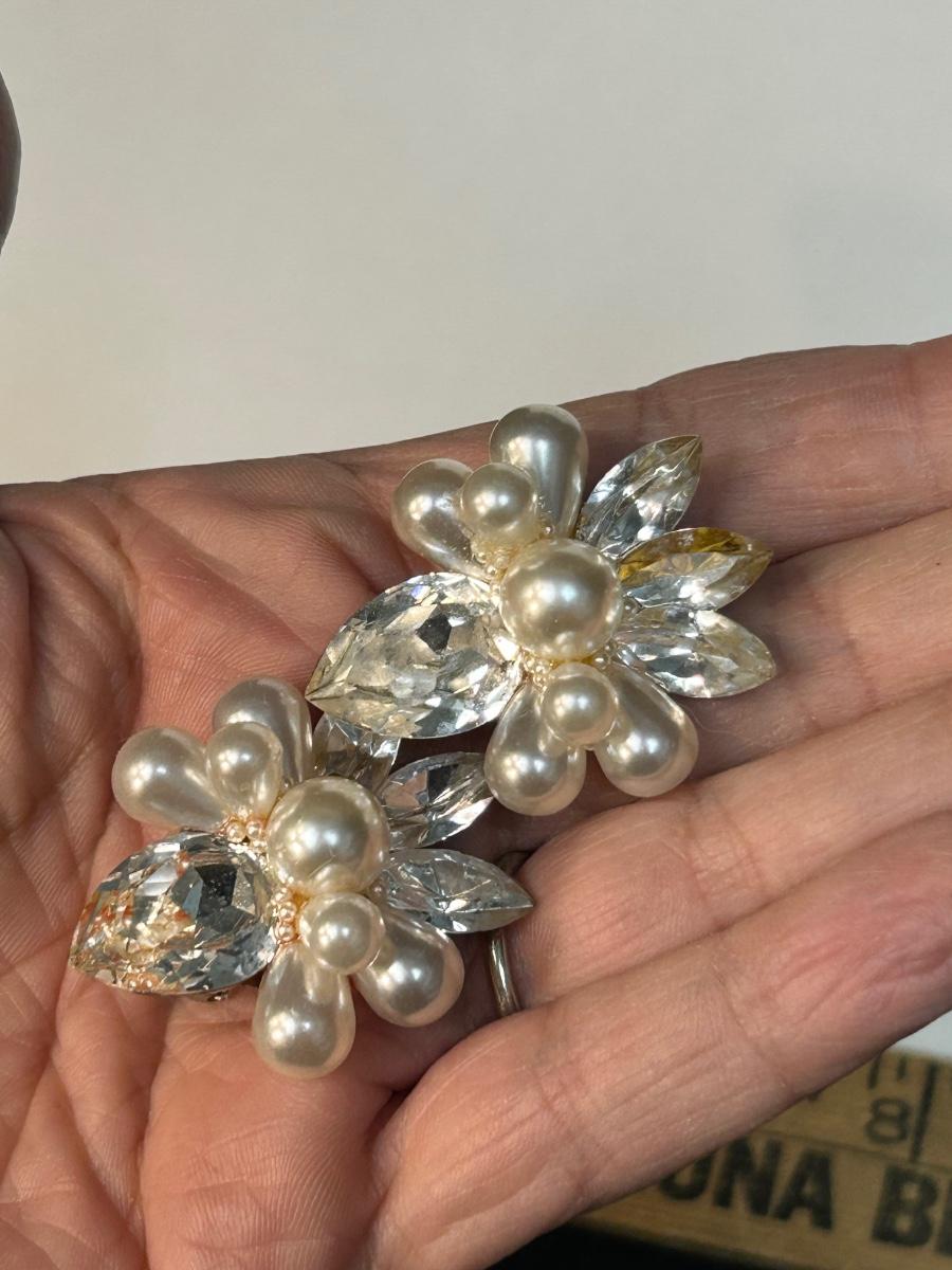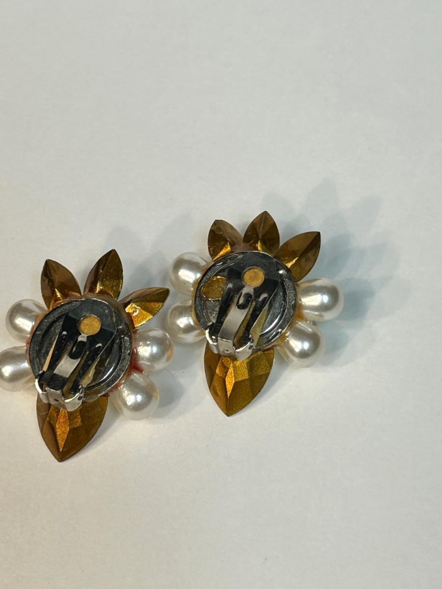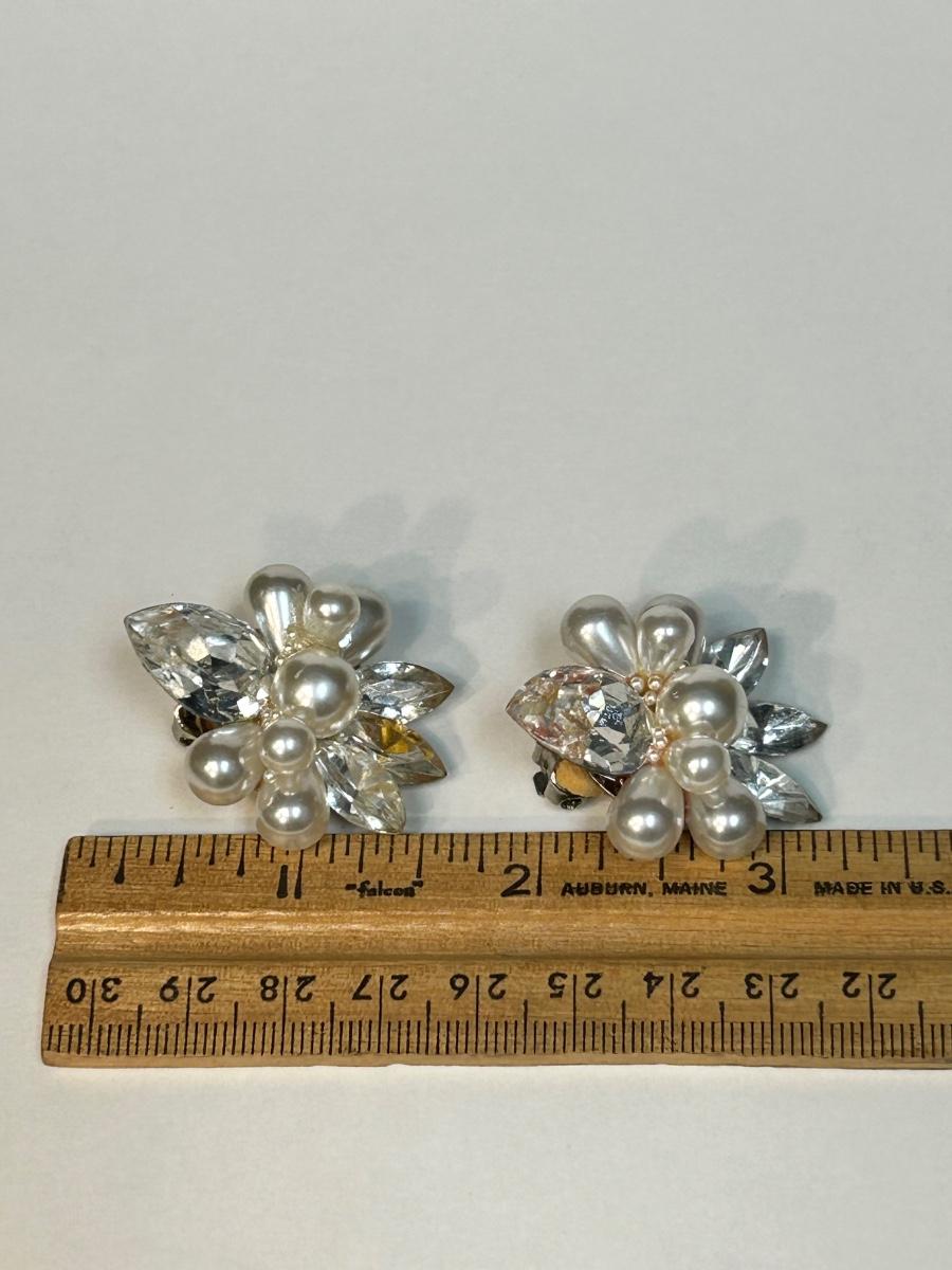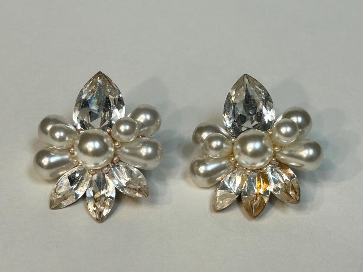 Retro Faux Pearl and Rhinestone Cluster Statement Clip Style Earrings. In fair condition.
