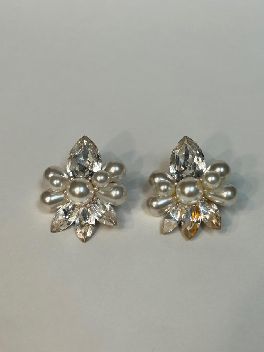 Retro Faux Pearl and Rhinestone Cluster Statement Clip Style Earrings