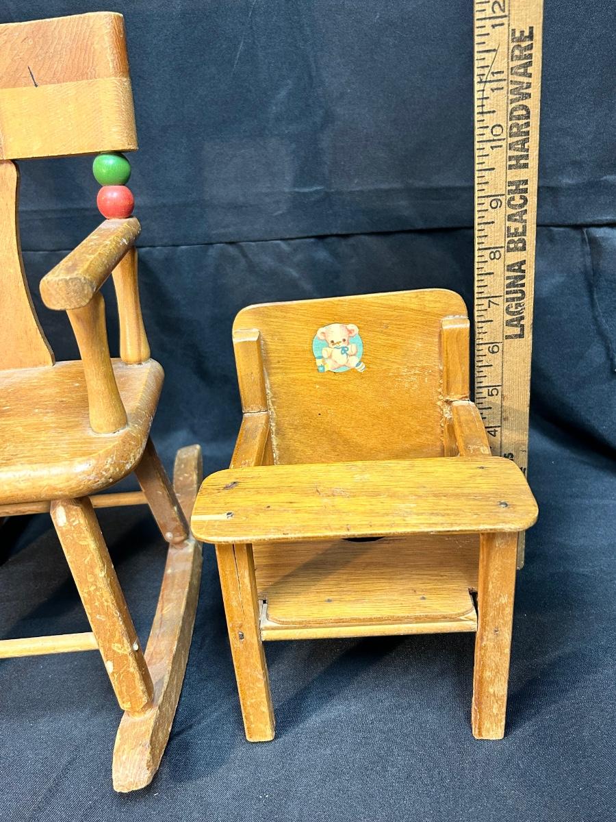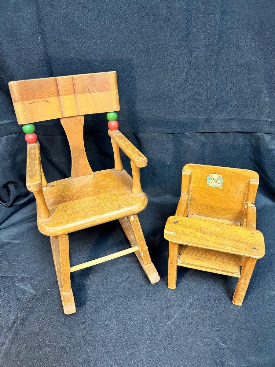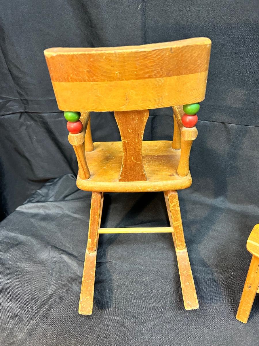 Pair of Vintage Wood Doll Furniture Chair & Highchair Imagination Play or Display