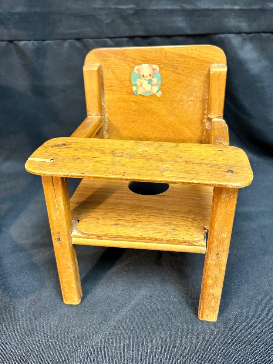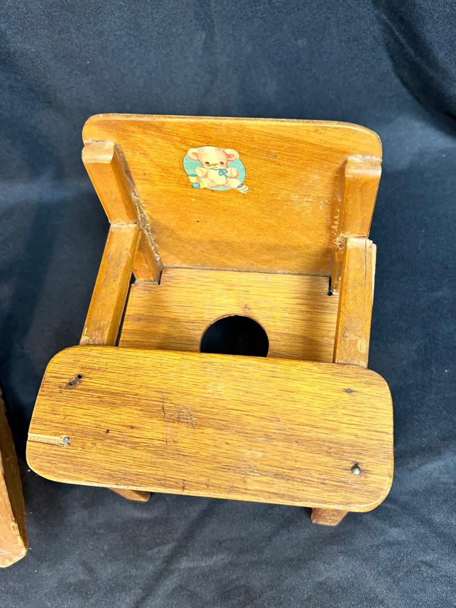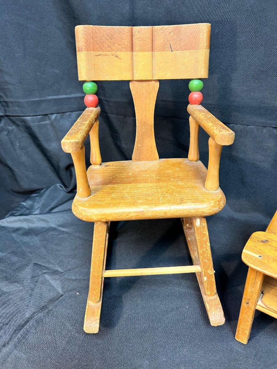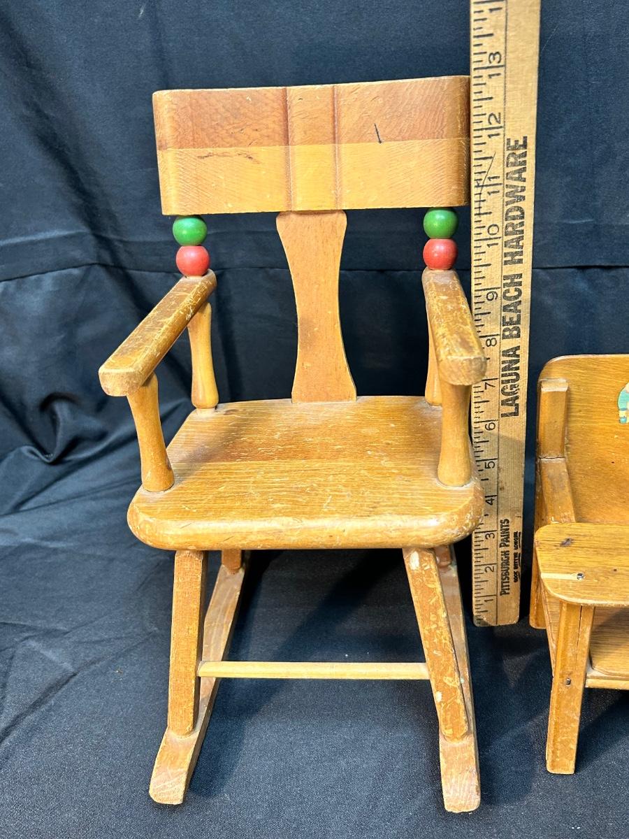 Pair of Vintage Wood Doll Furniture Chair & Highchair Imagination Play or Display