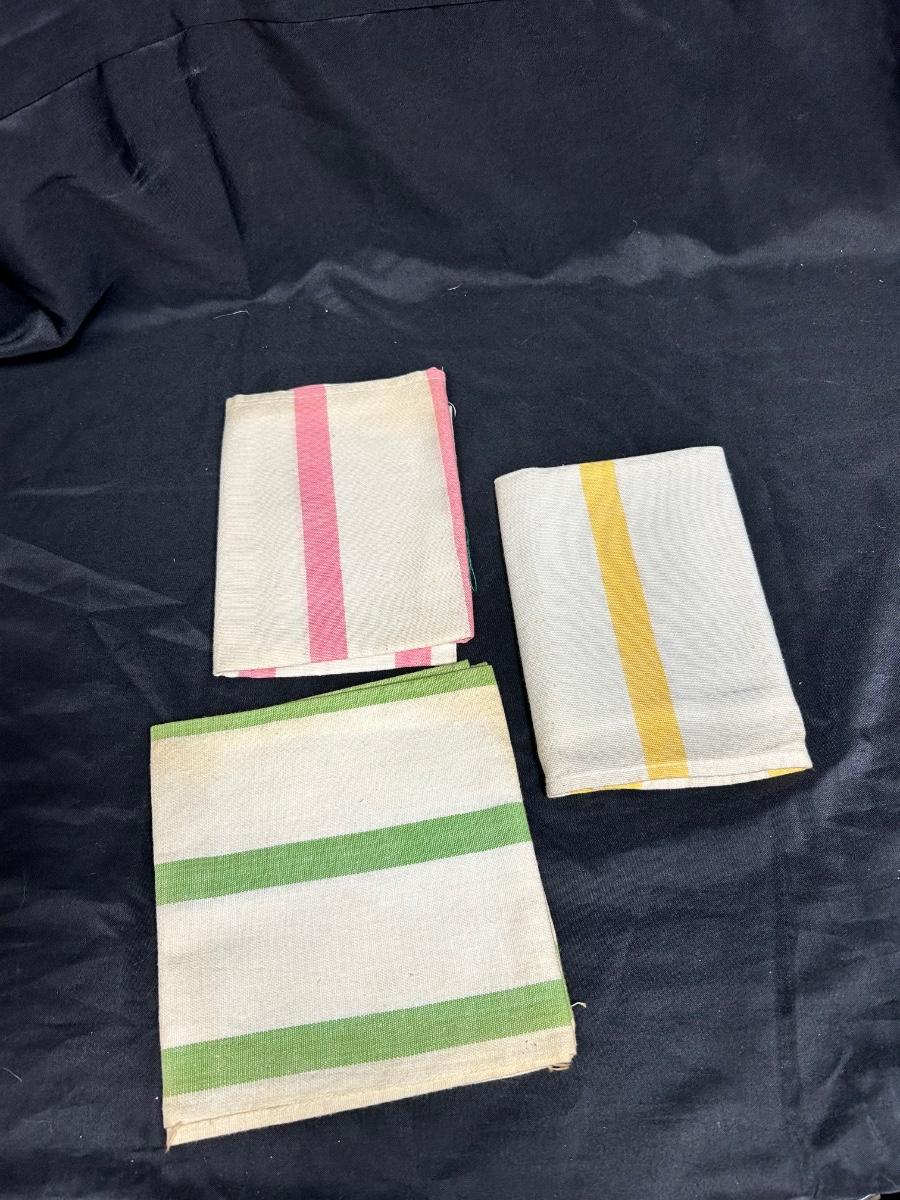 Set of Three Pastel Color Stripe Dish Tea Towels Yellow Green Pink