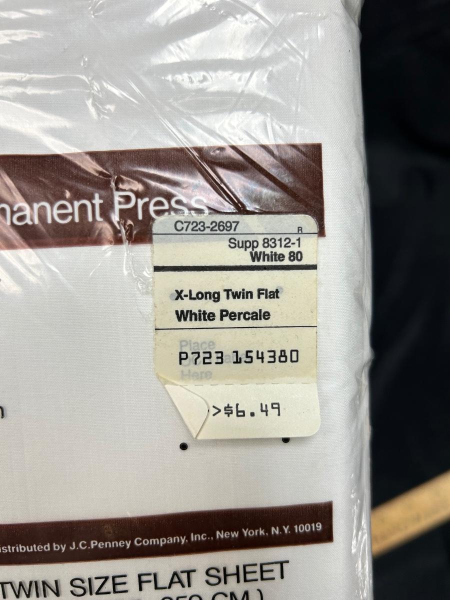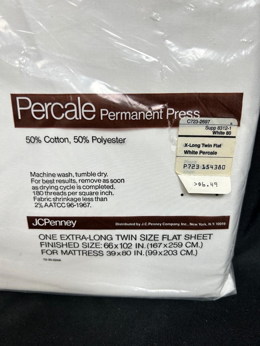 Retro PERCALE Permanent Press 50/50 Blend White XL Twin Flat Sheet NEW in Package. JCPenney brand.