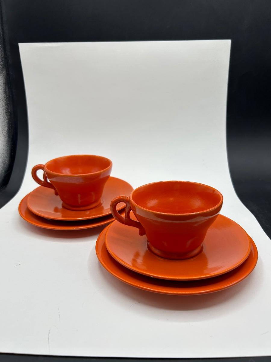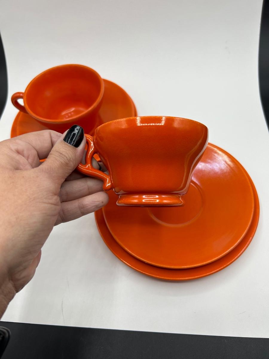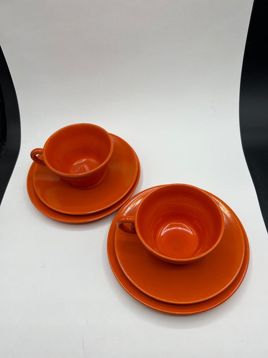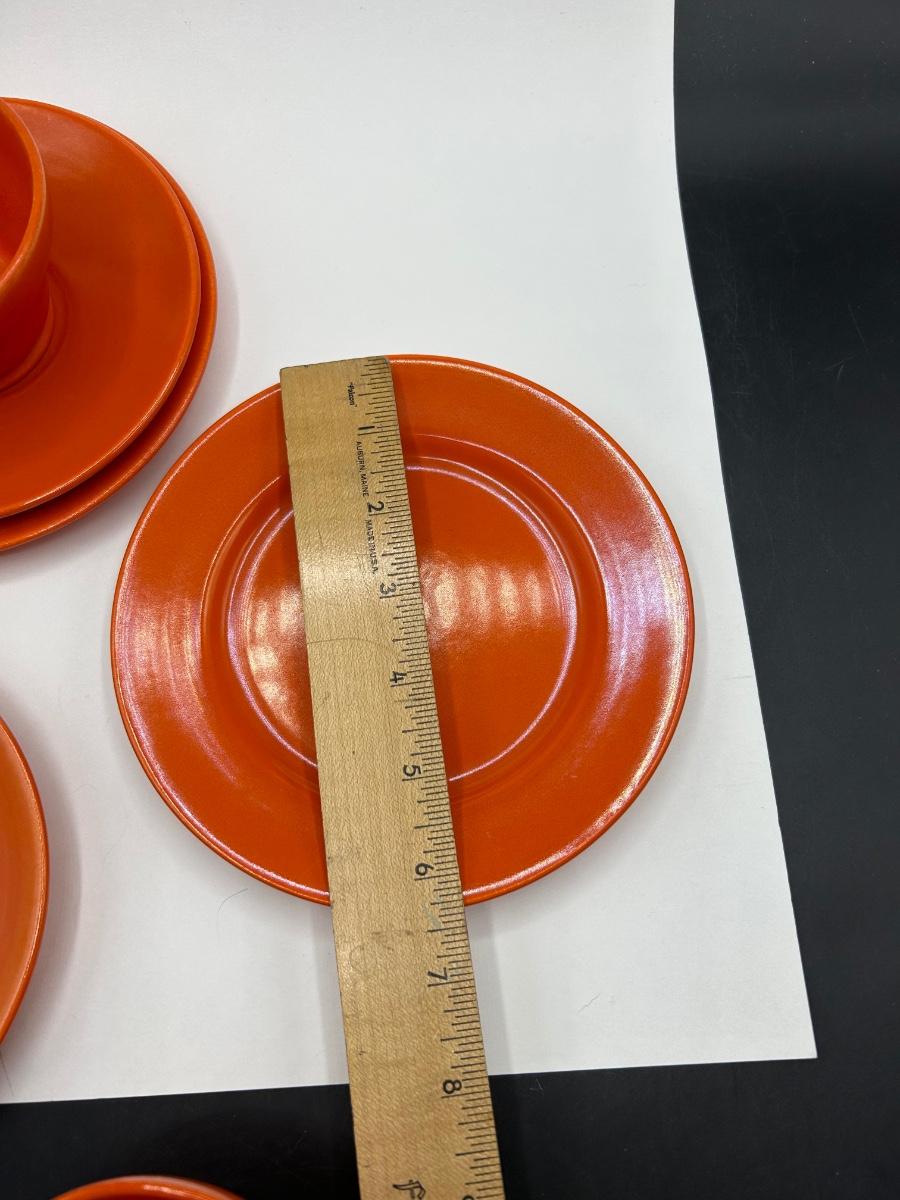 Pair of Vintage Franciscan Gladding McBean California Pottery Orange Cup Saucer Dessert Bread Plate. Great orange color. No chips.