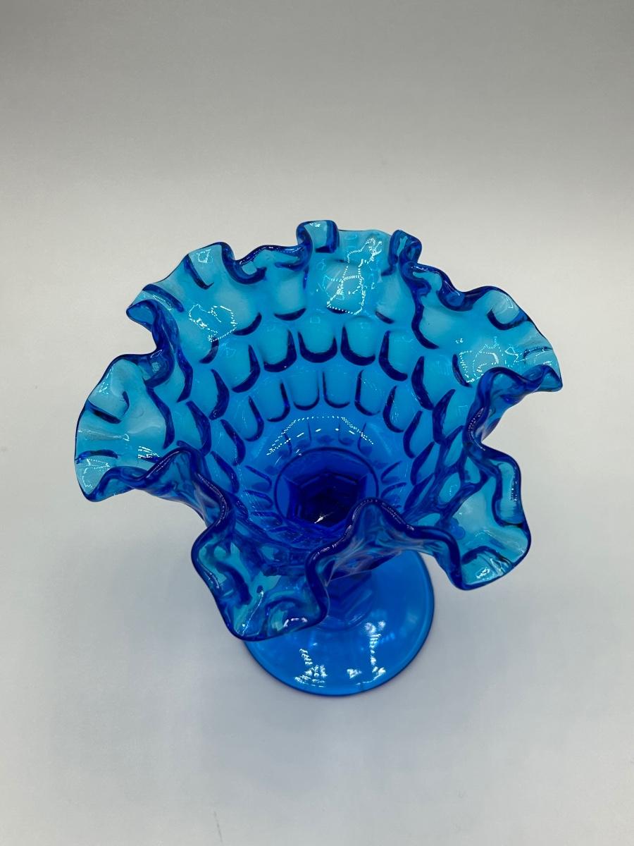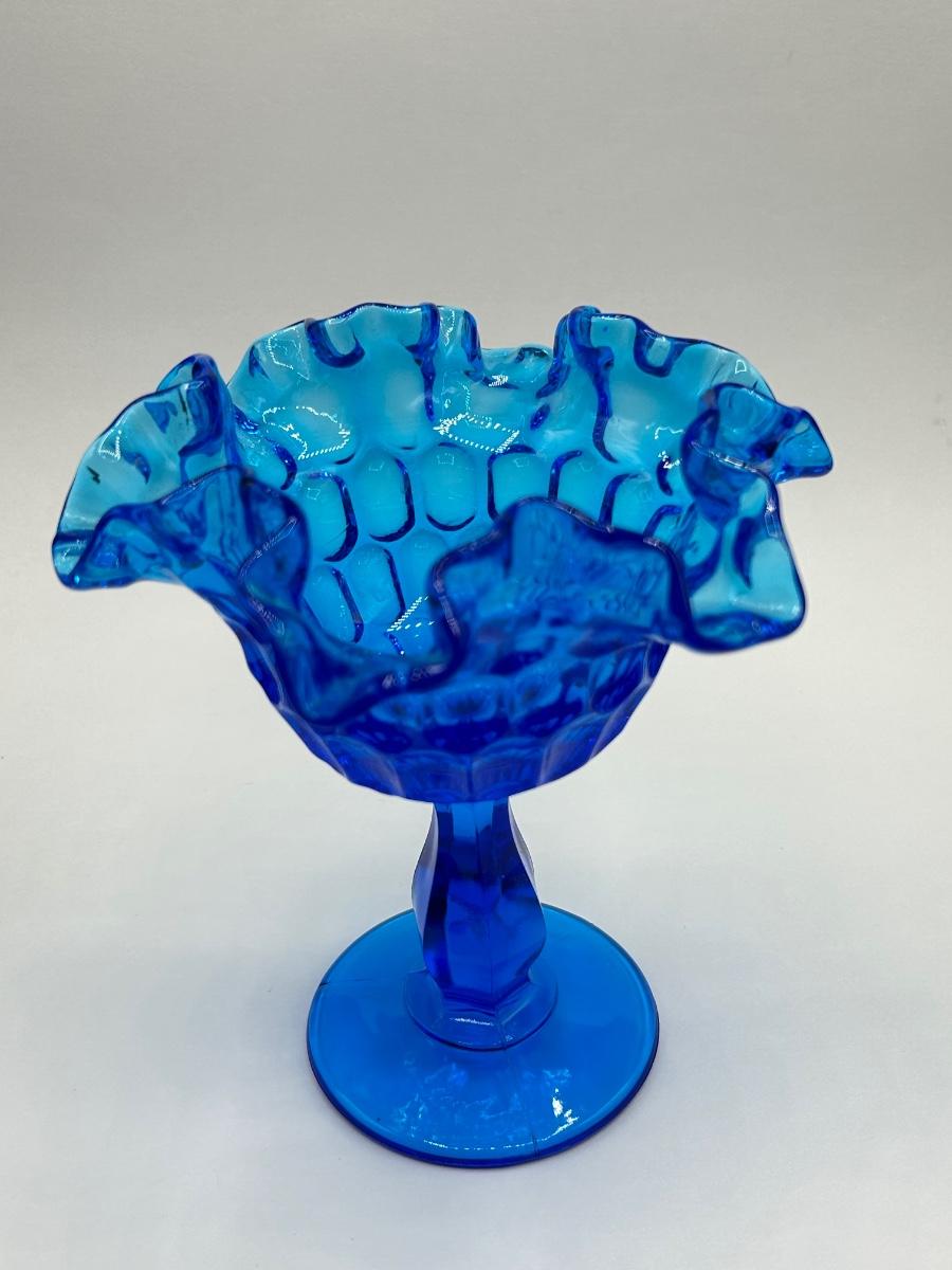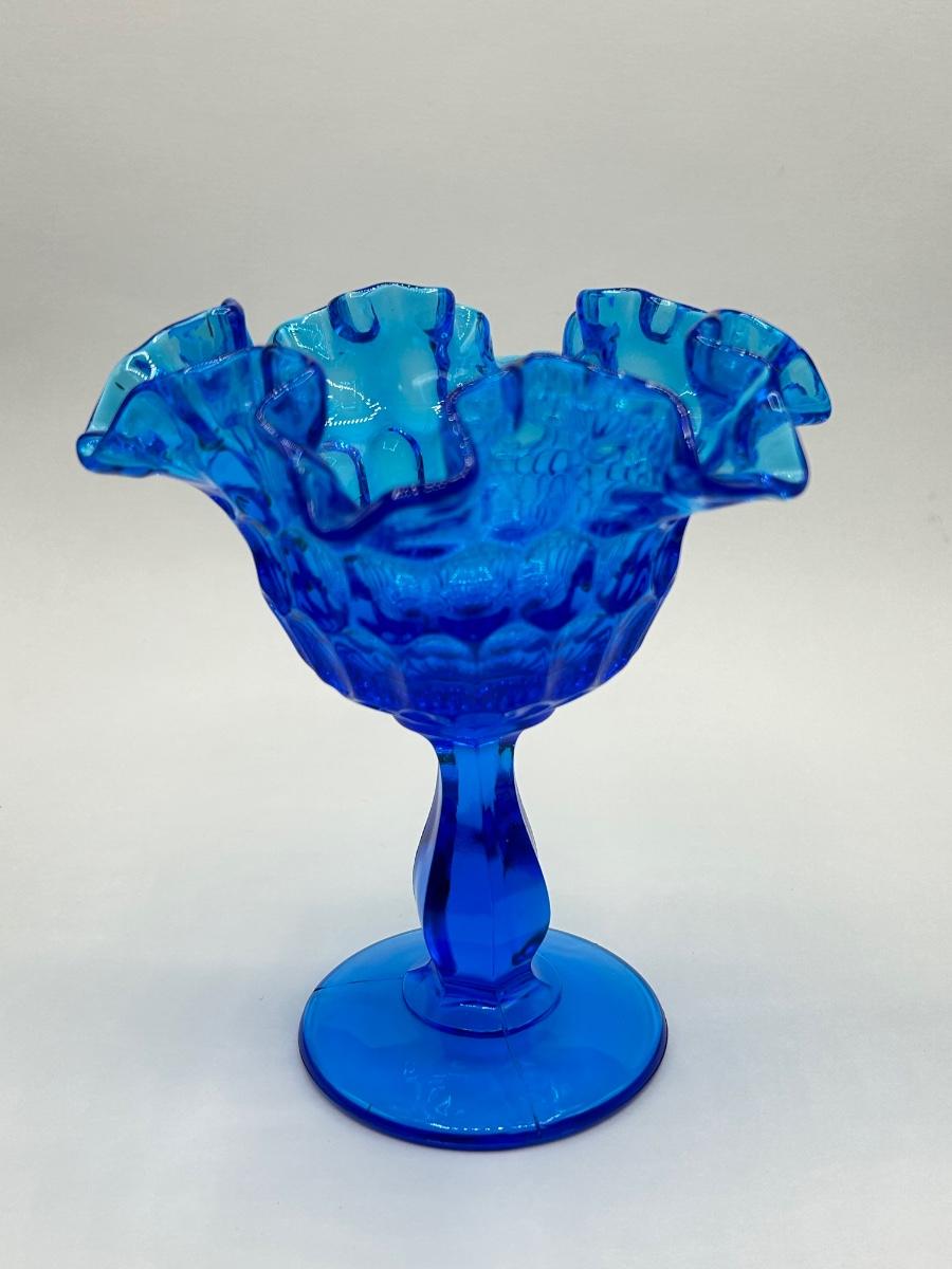 Vintage Colonial Blue Fenton Ruffled Edge Thumbprint Compote Pedestal Candy Dish