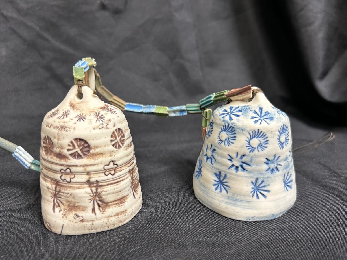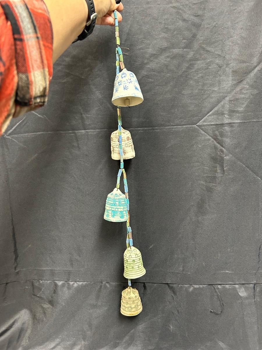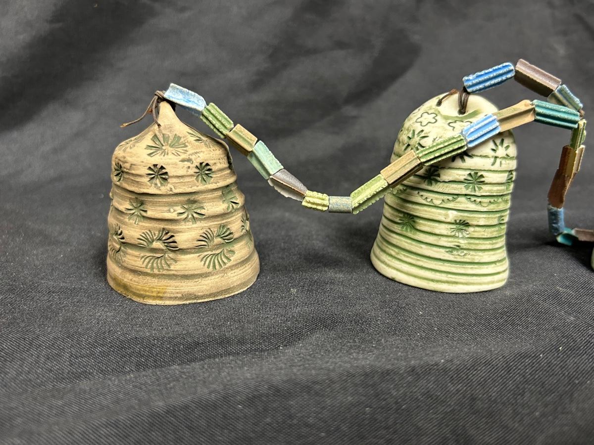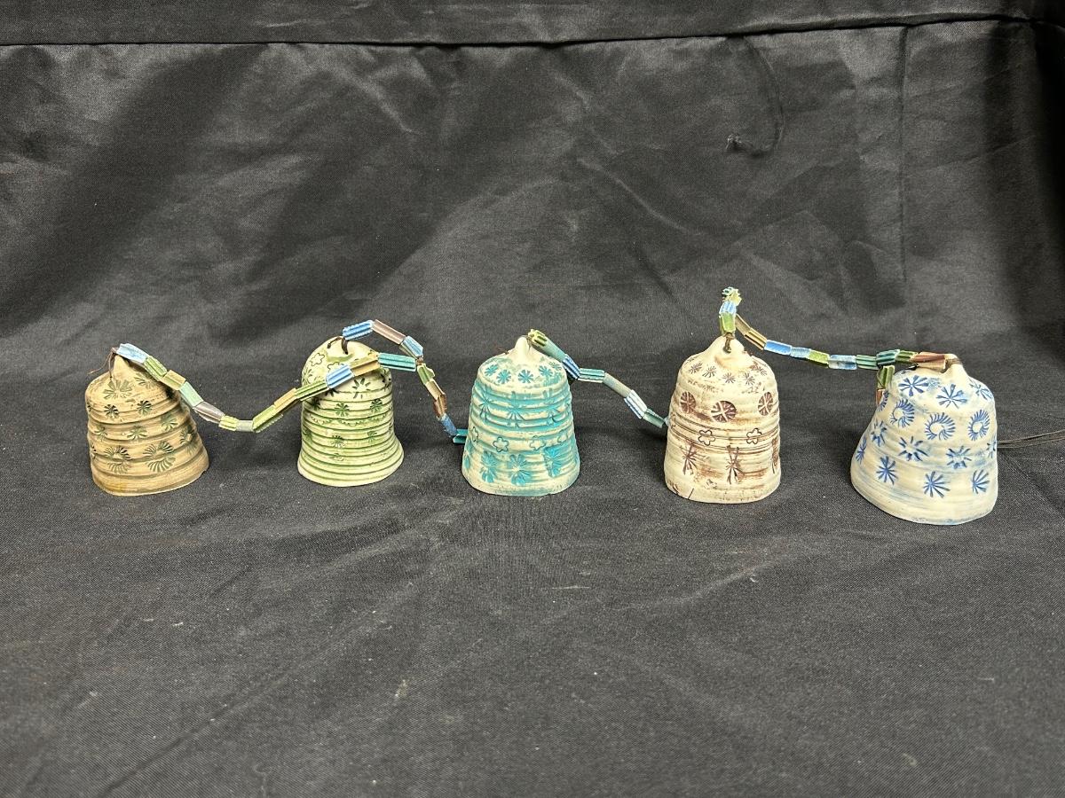 Vintage Hanging Clay Ceramic Pottery Hand Painted Bells