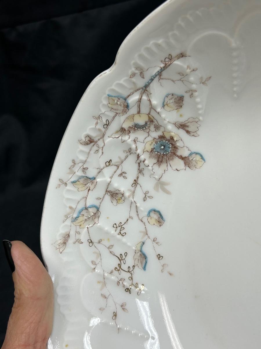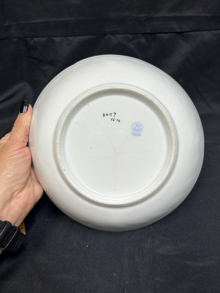 Vintage Antique Made in Austria Blue Floral Pattern Serving Bowl LS&S Carlsbad. In fair condition. There is a crack in the bottom of dish, it goes all the way through. Great for display.