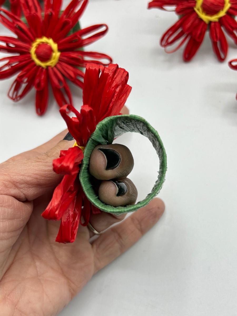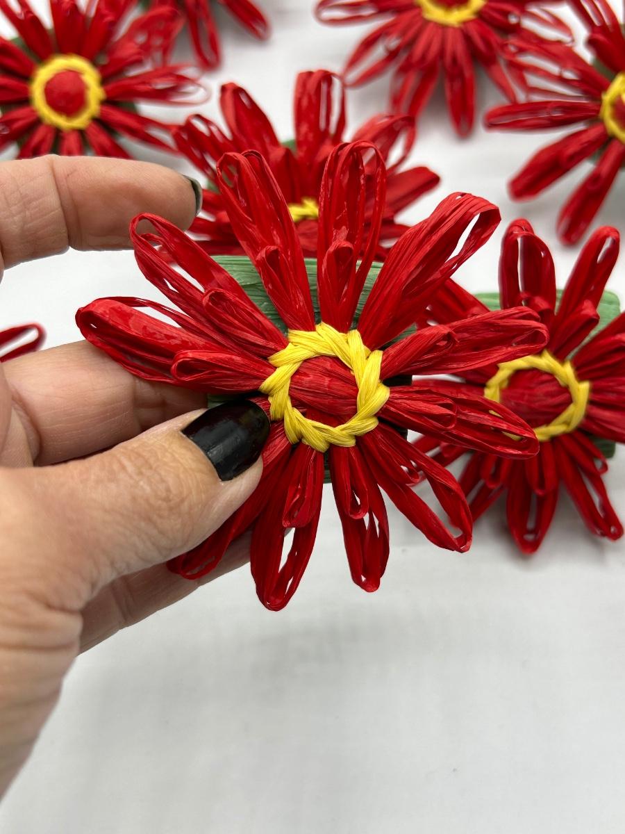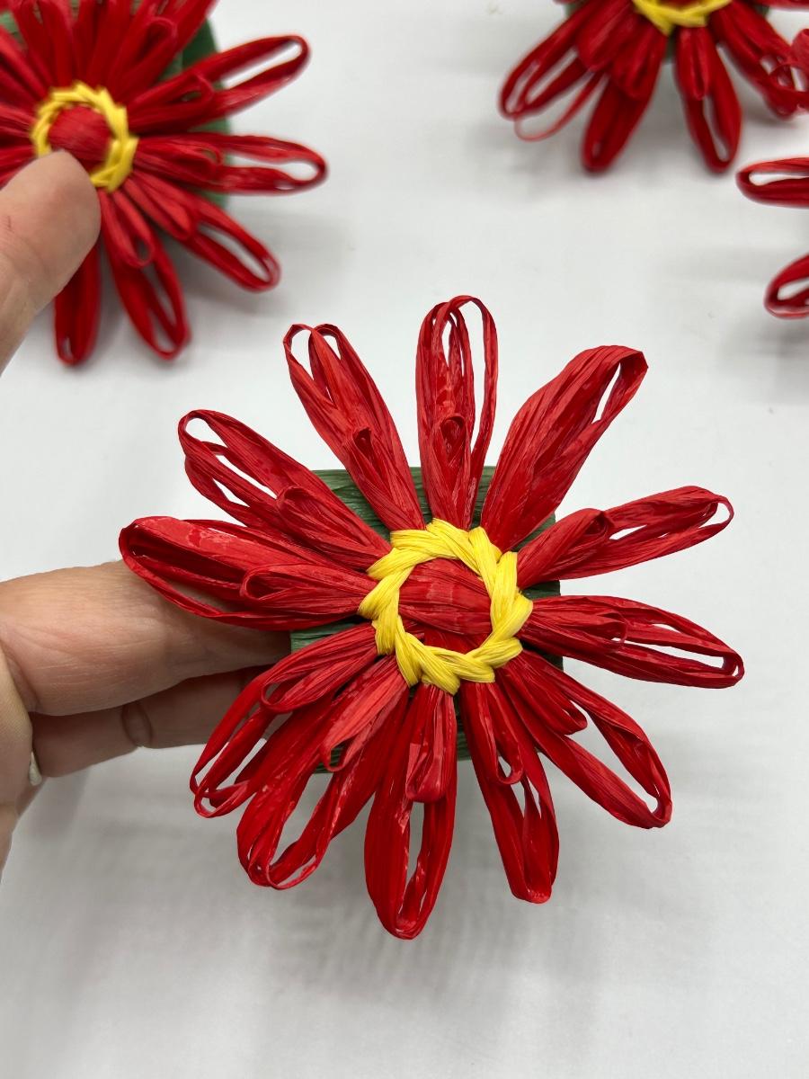 Set of 12 Red Paper Raffia Flower Napkin Ring Holders