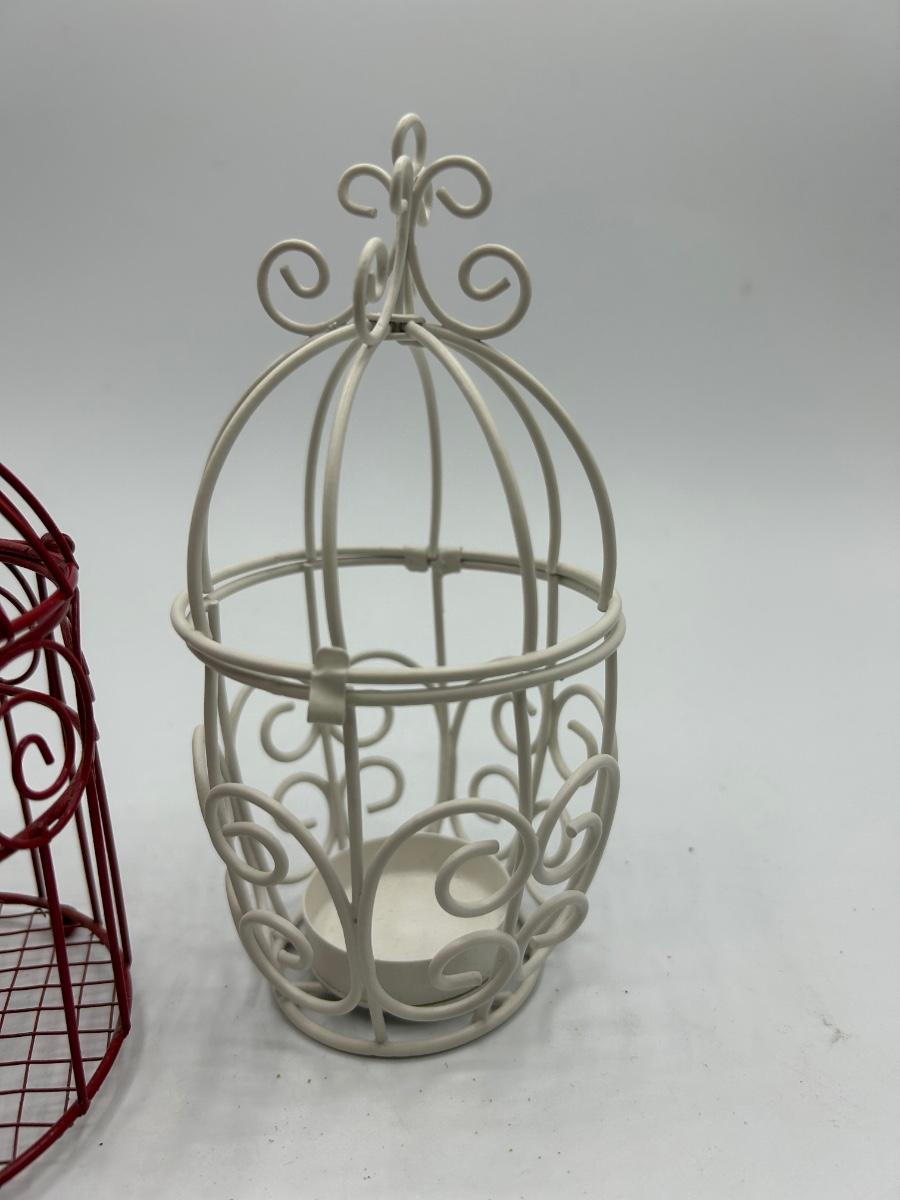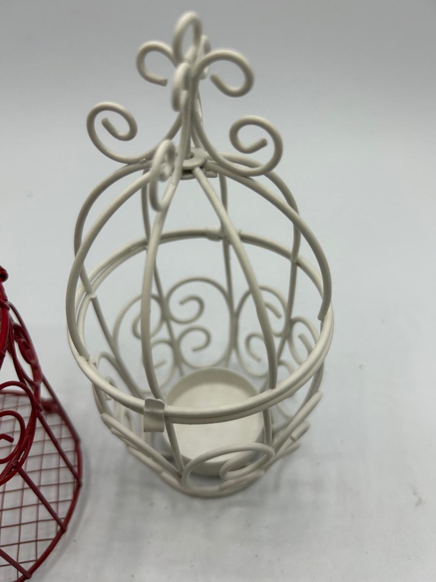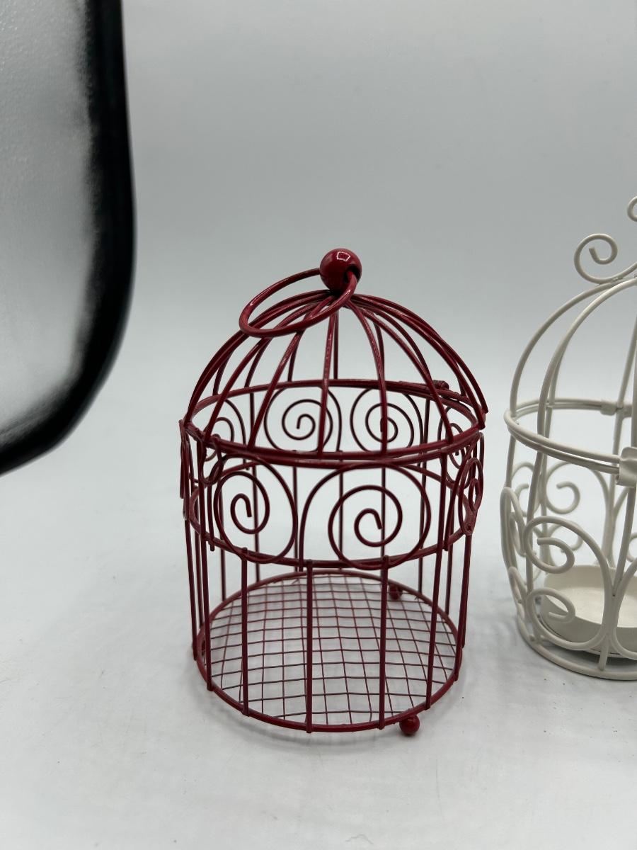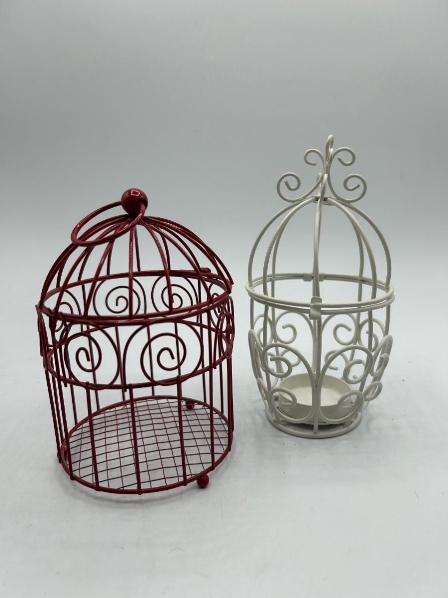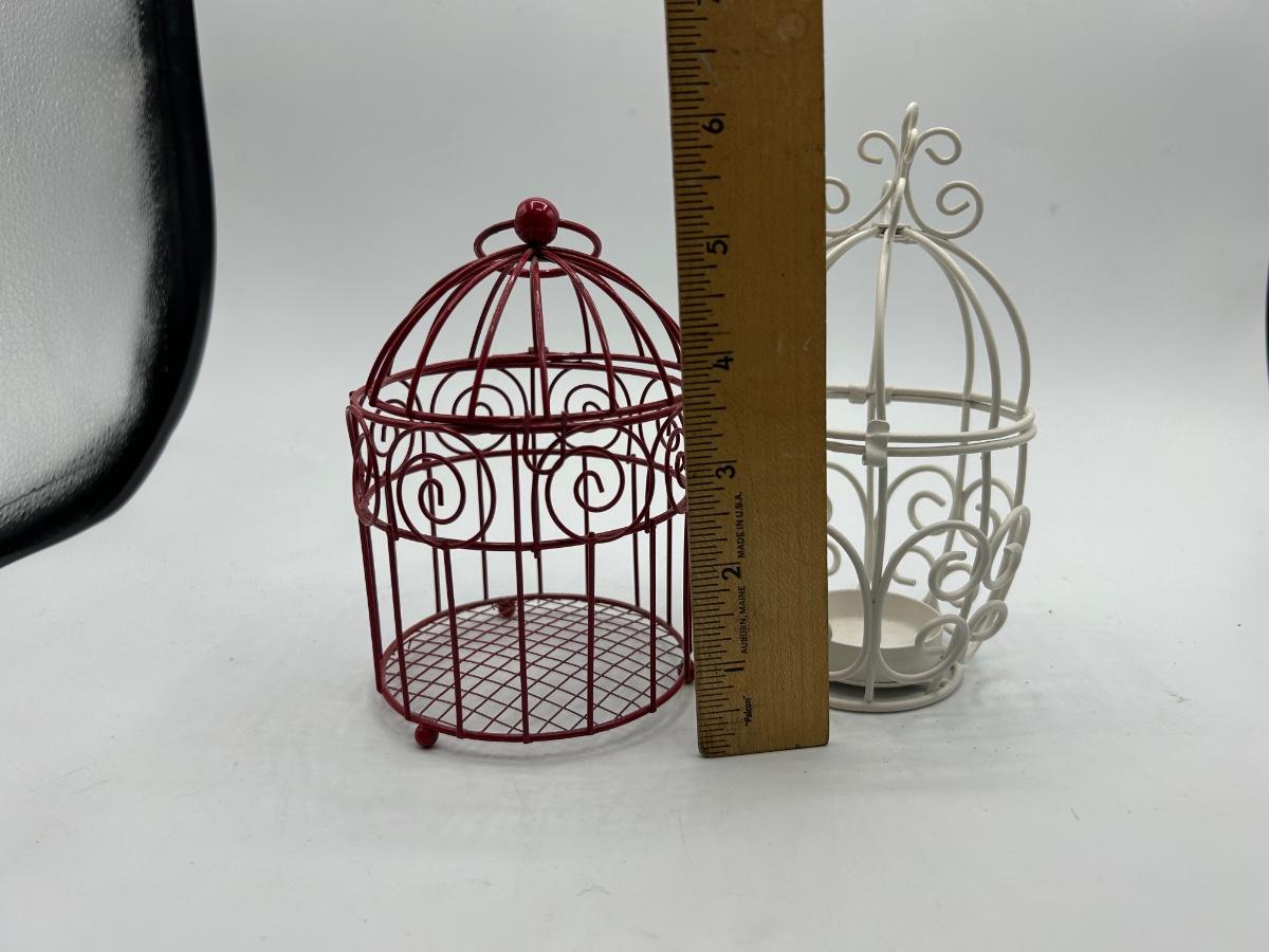 Pair of Small Painted Metal Decorative Birdcages. 6" and smaller. In good previously displayed condition.