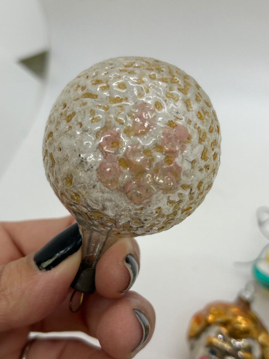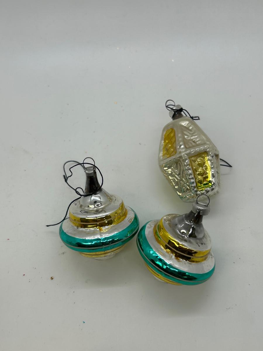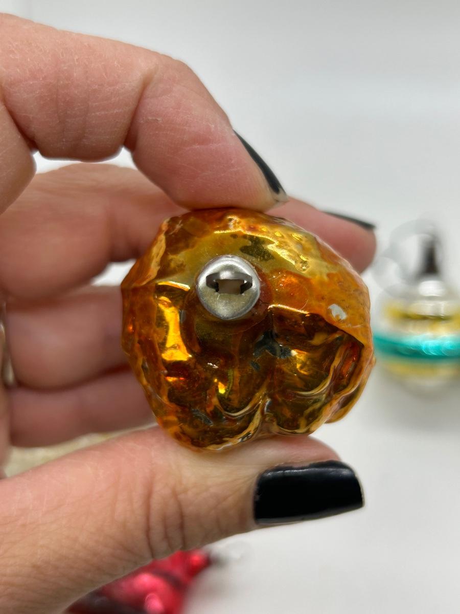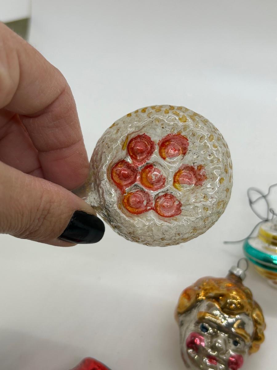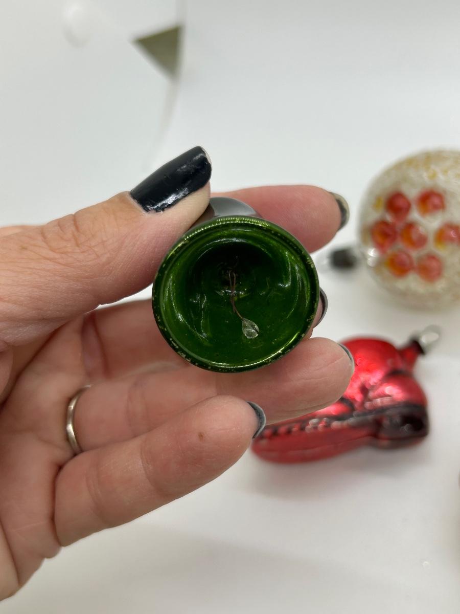 Mixed Lot of Small Blown Glass Holiday Christmas Ornaments Shoe Face Bell Tops. In good vintage condition. Some light wear but no damage.