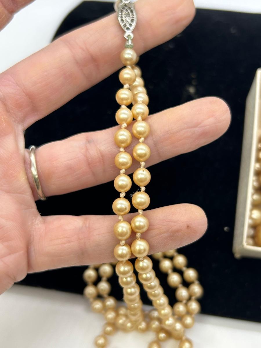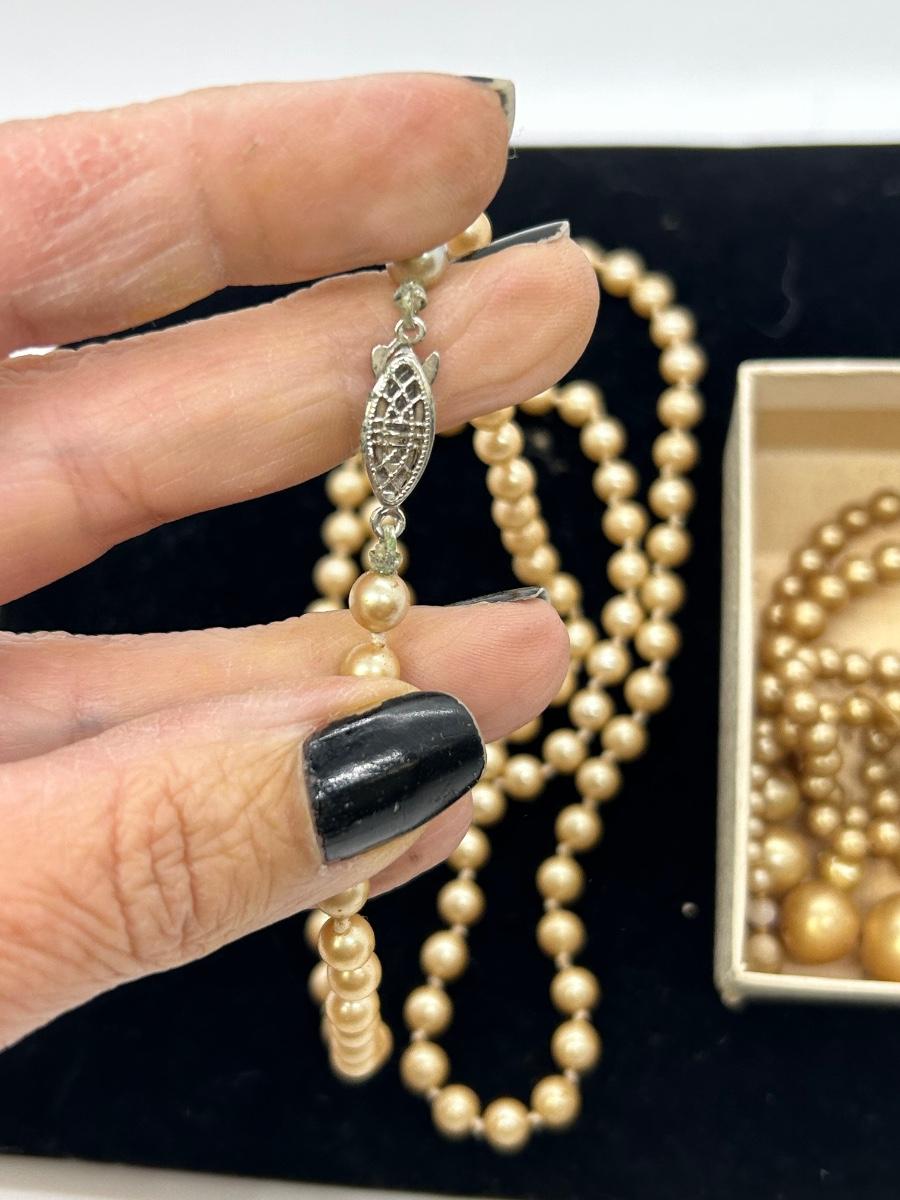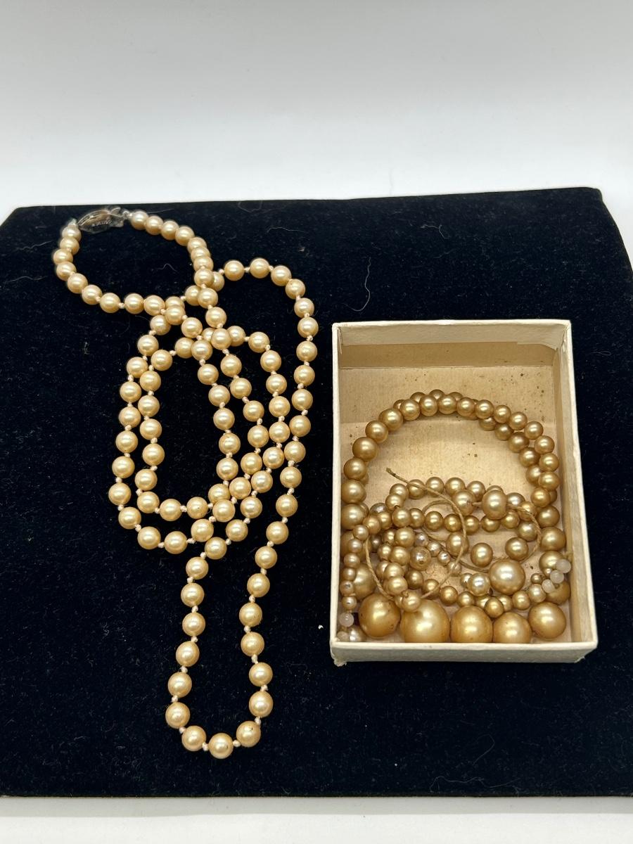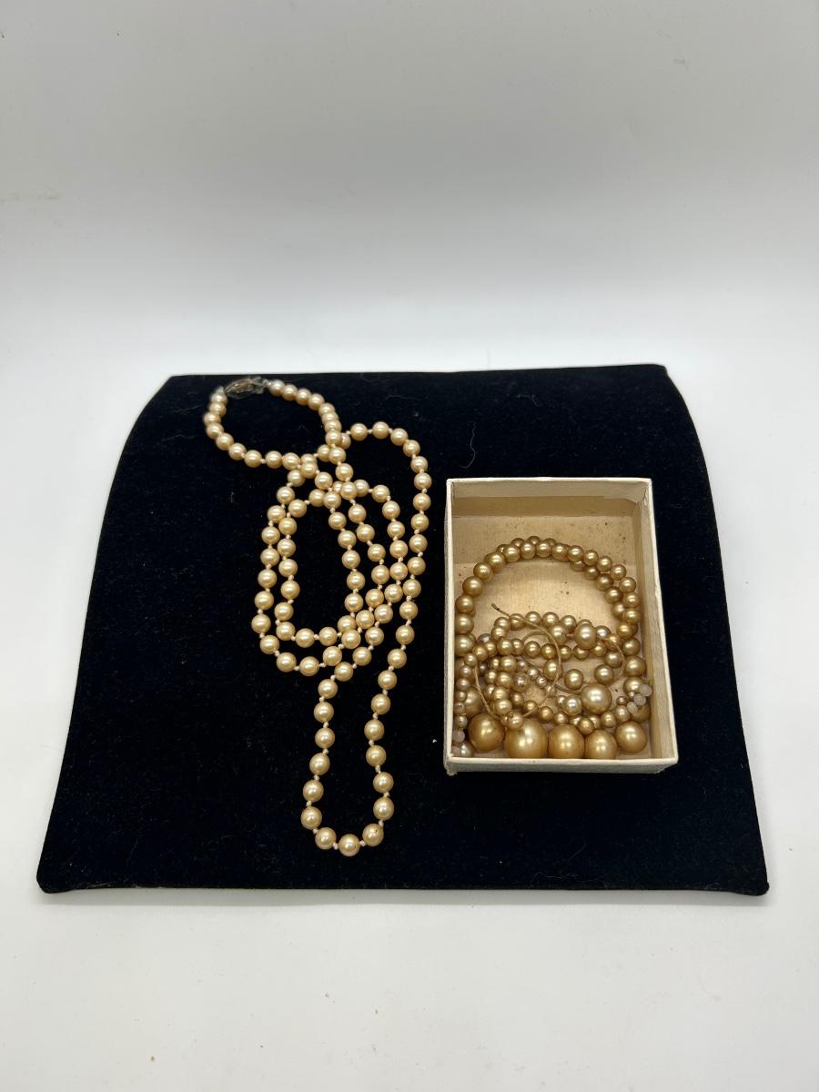 Mixed Lot of Vintage Faux Pearls Bead Necklaces for Crafting or Repair. One necklace is wearable, the other has come apart.