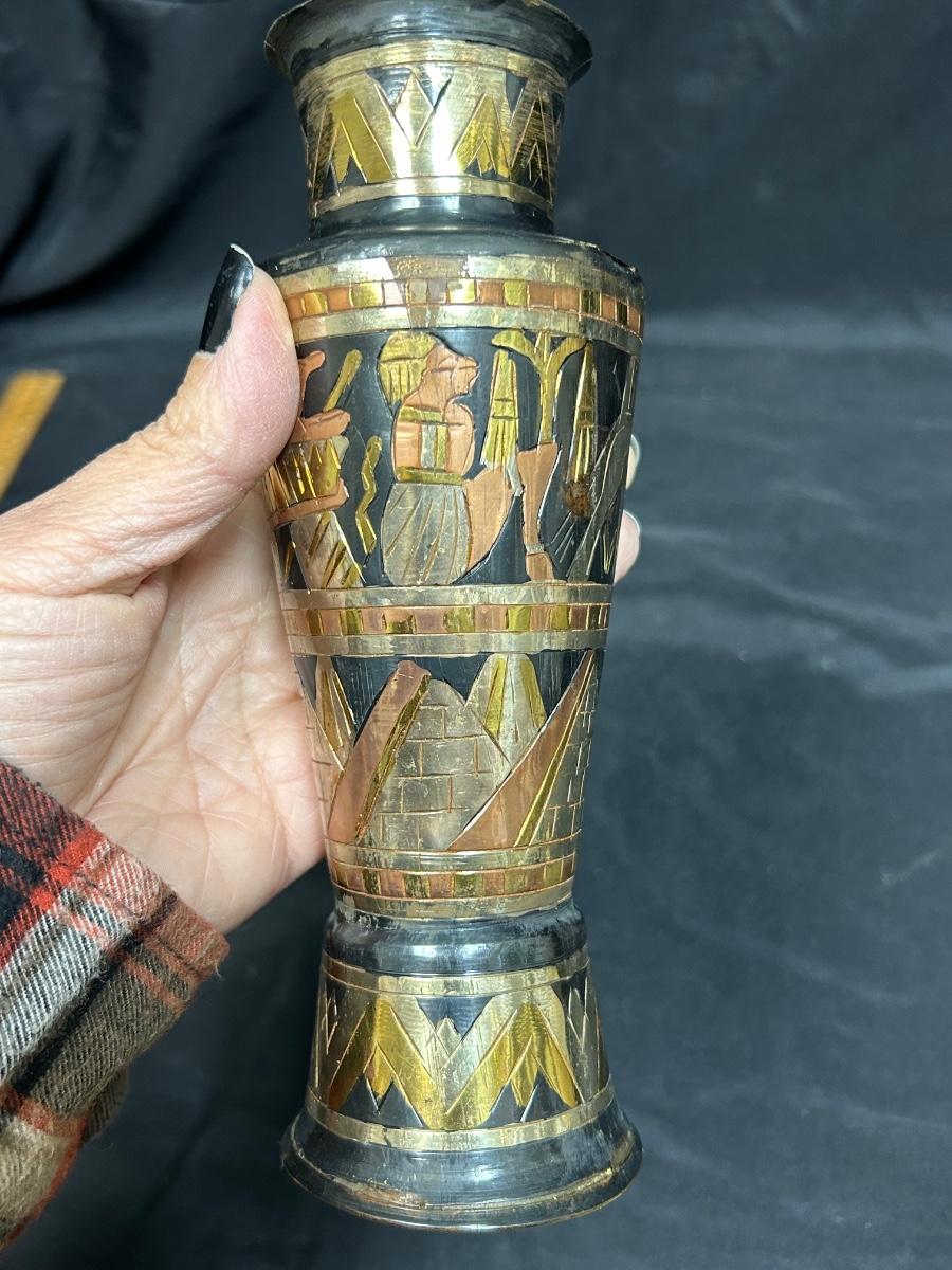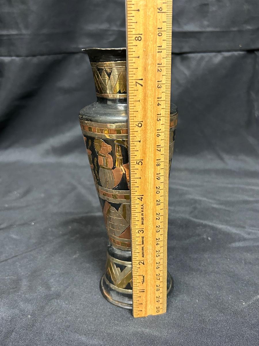 Vintage Mixed Metals Egyptian Revival Vacation Souvenir Vase Urn