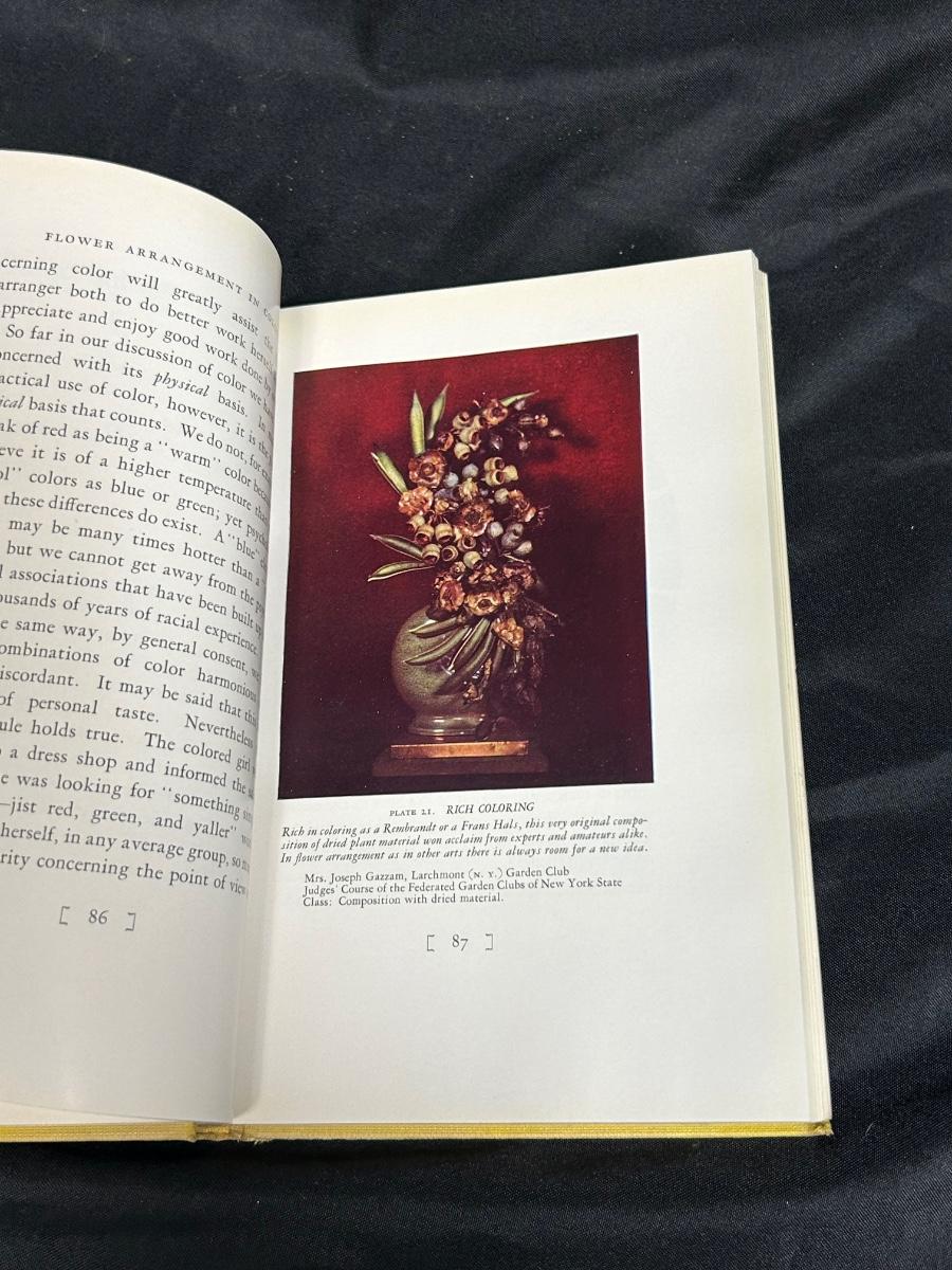 Vintage Flower Arrangement in Color Reference Book with Illustrations. Great for anyone in the flower business or at home crafters. In good condition. Has quite a few color photos. 1940 copyright.