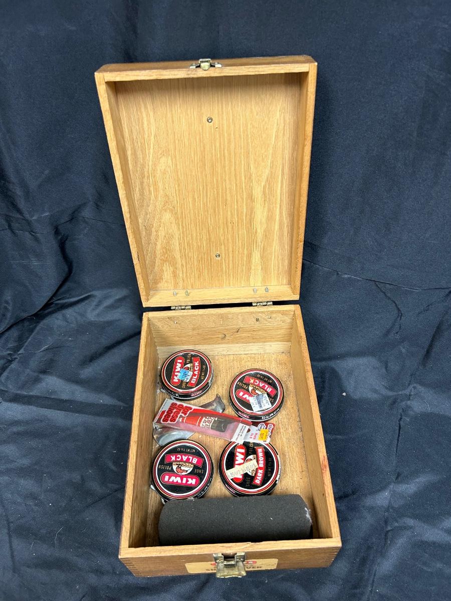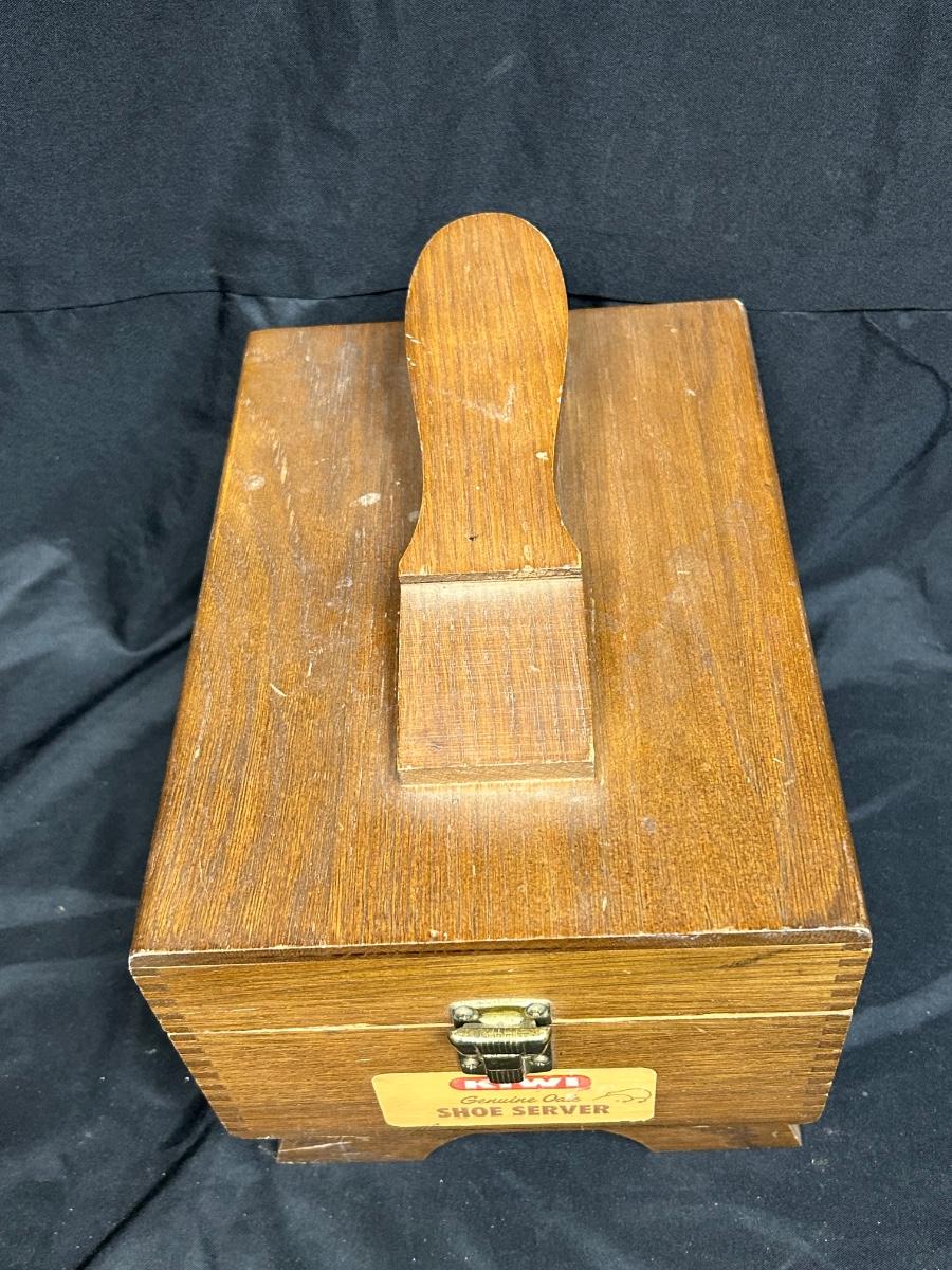 Vintage Kiwi Brand Genuine Oak Shoe Server Cleaning Shining Box