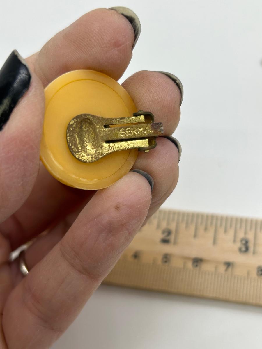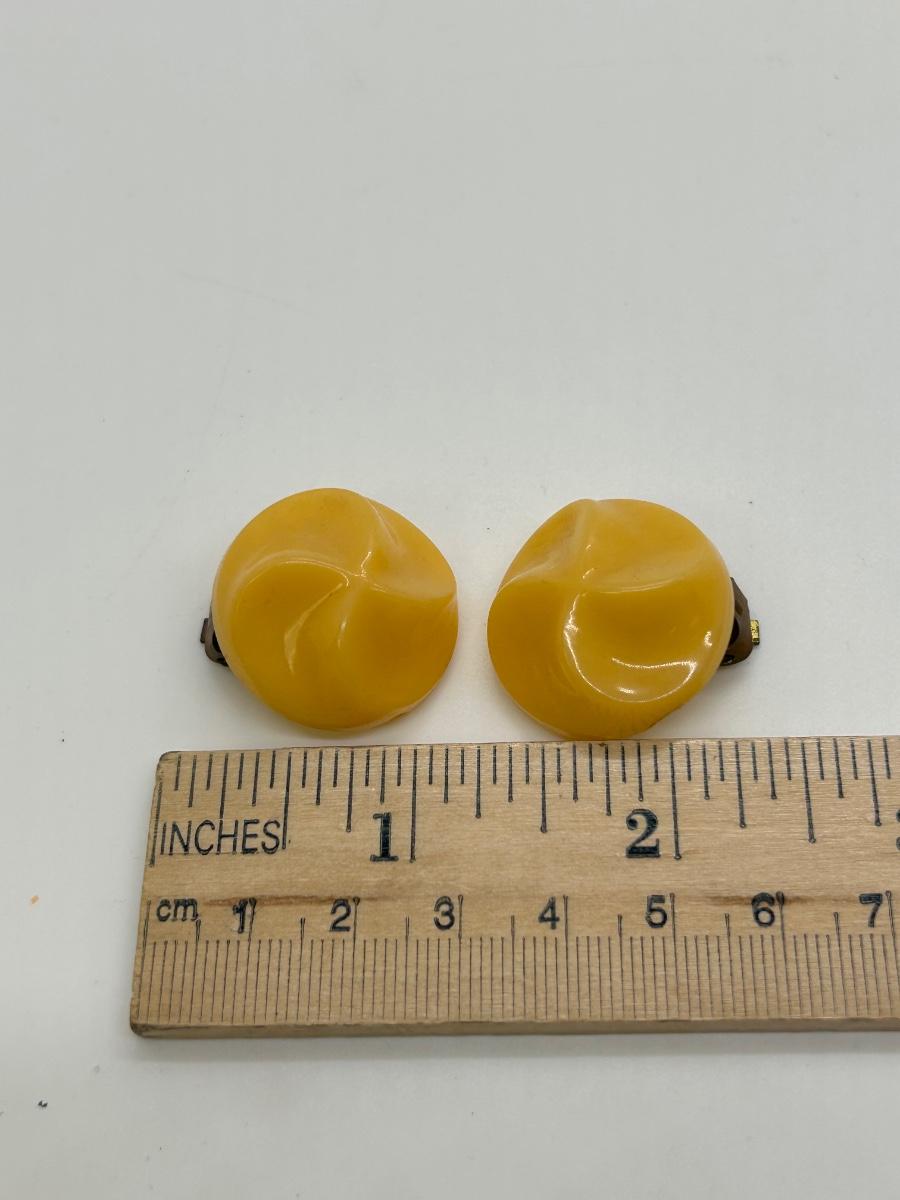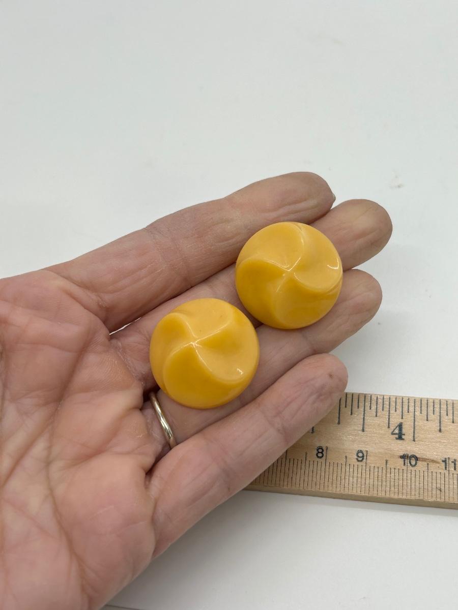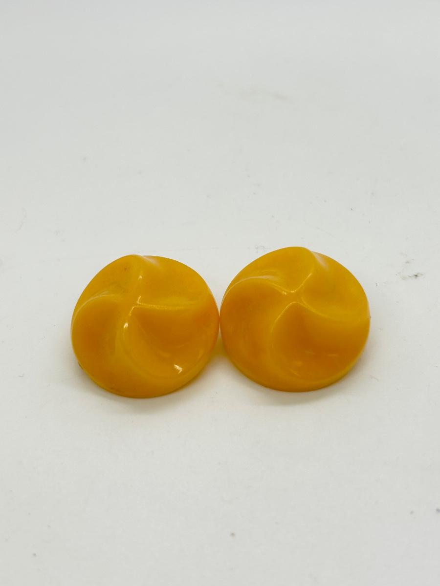 Vintage Golden Yellow Orange Plastic Bakelite Swirl Button Clip On Earrings Germany