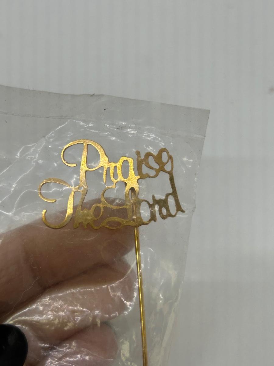 Gold Tone Praise the Lord Stick Pin New. In sealed plastic.