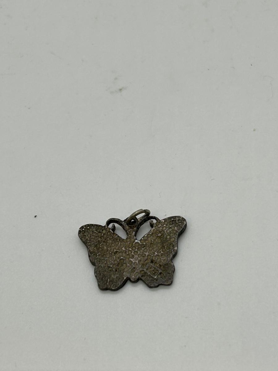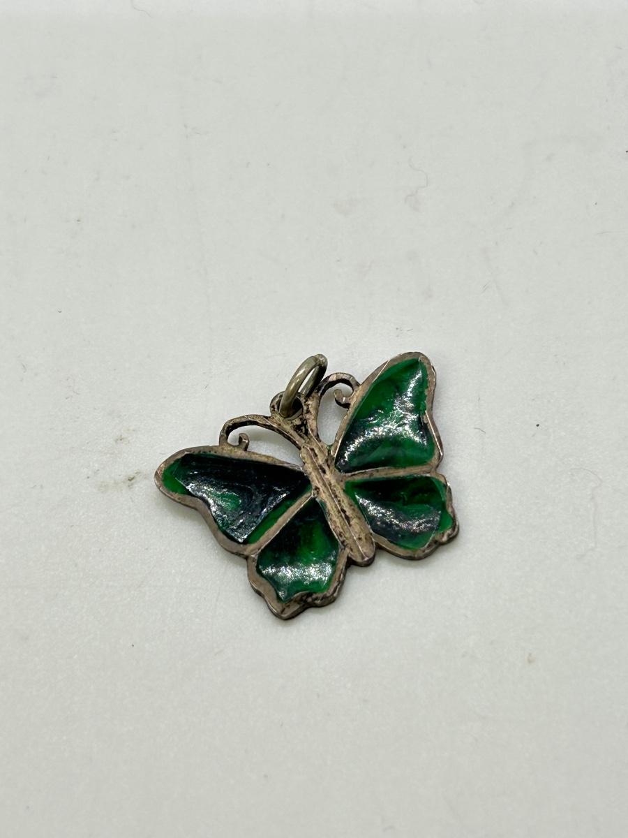 Vintage Green Enamel Silver Tone Butterfly Charm Pendant. In good vintage condition.