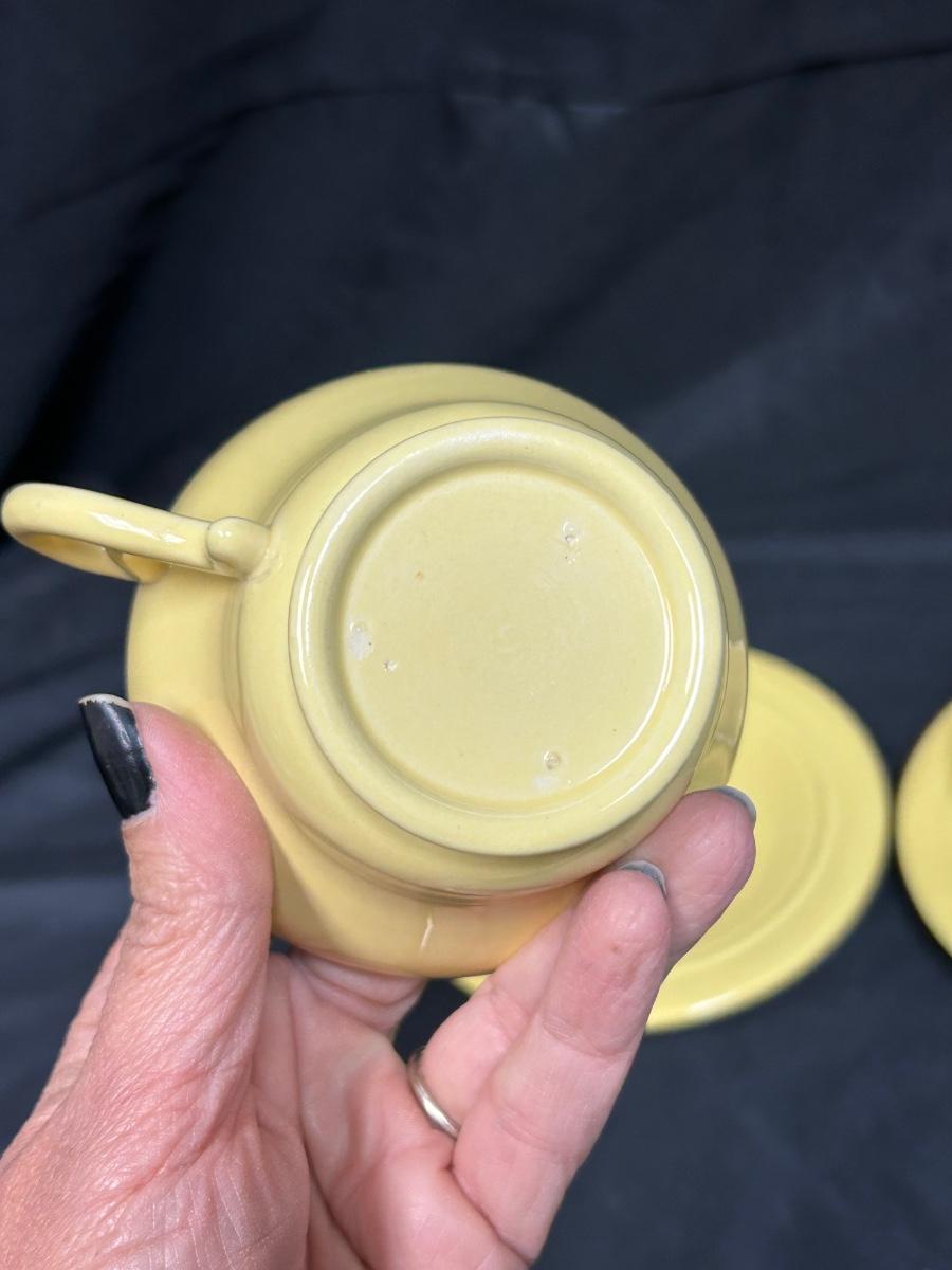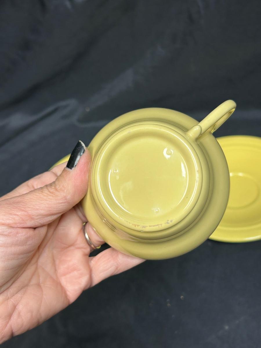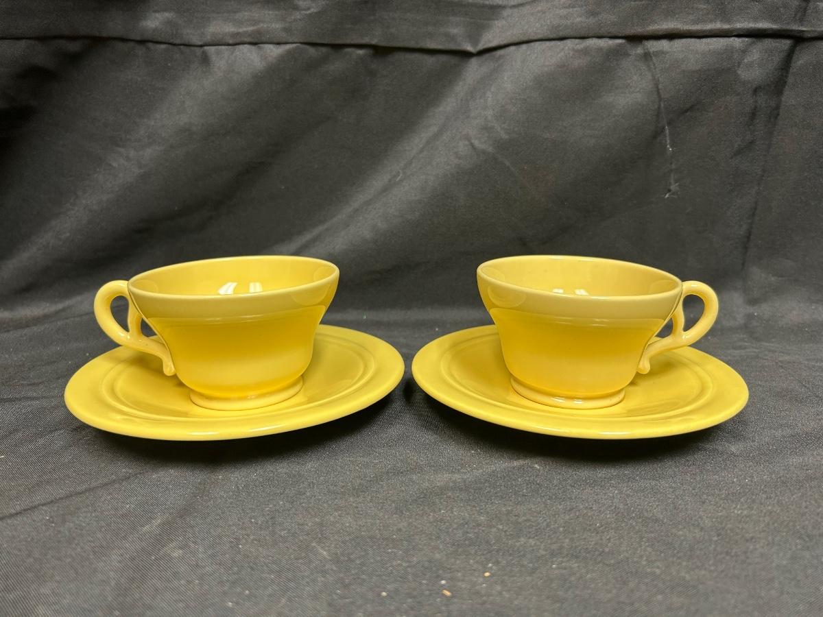 Pair of Vintage Yellow Cup and Saucers Metlox Poppy Trail California Pottery. In good condition, no chips, may have light signs of use.