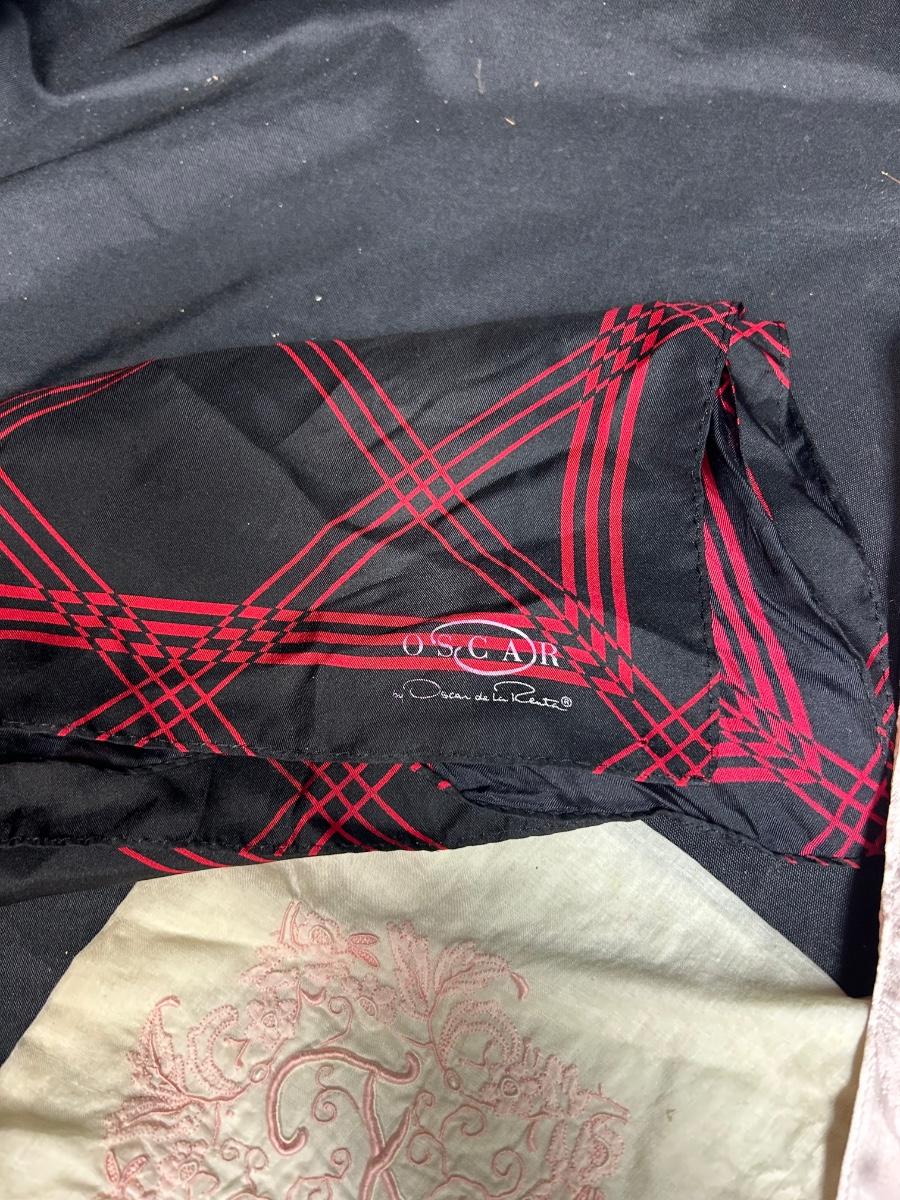 Mixed Lot of Scarves Oscar De La Renta Bill Blass Albert Nipon. In good previously used condition. No holes or major spots found.