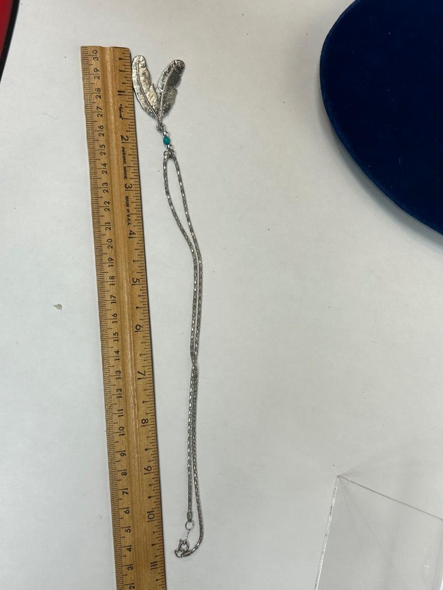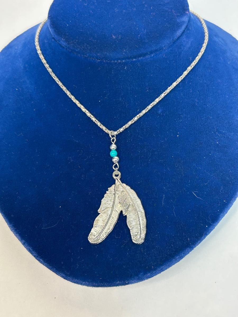 Silver Tone Pair of Feathers Pendant Fashion Necklace. Lightweight pendant and chain. No sterling marks. In good condition.