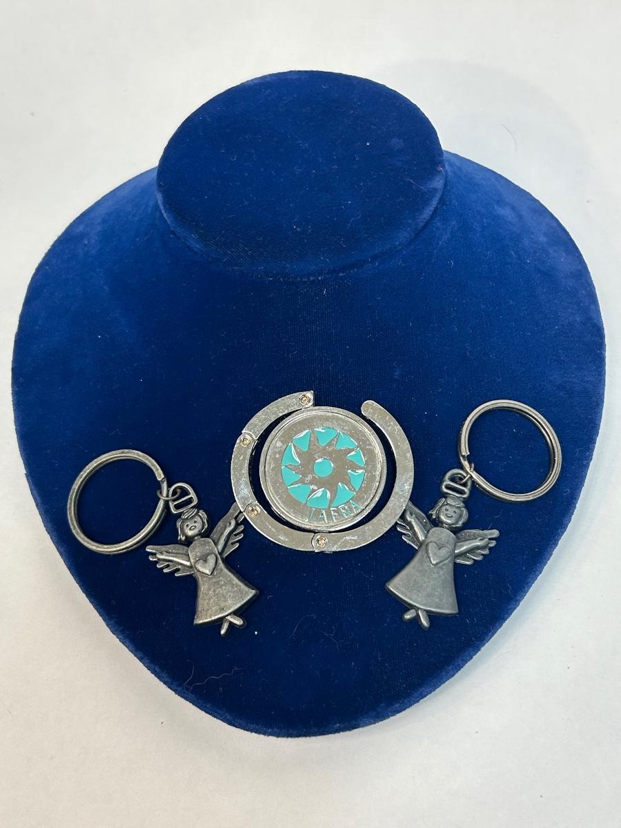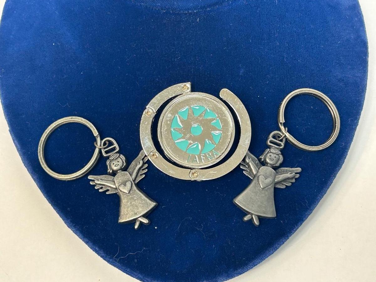 Pair of Guardian Angel Keychains and a Jafra Logo Purse Holder Hook