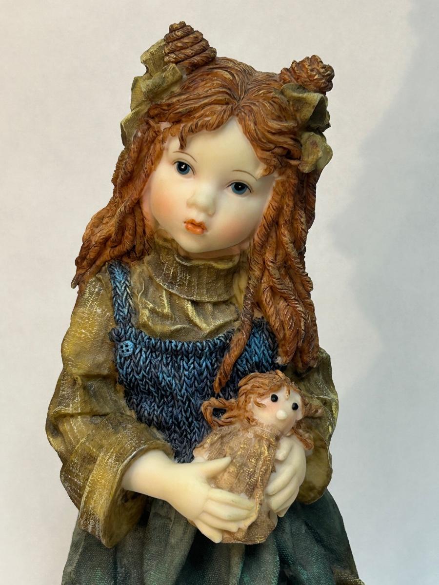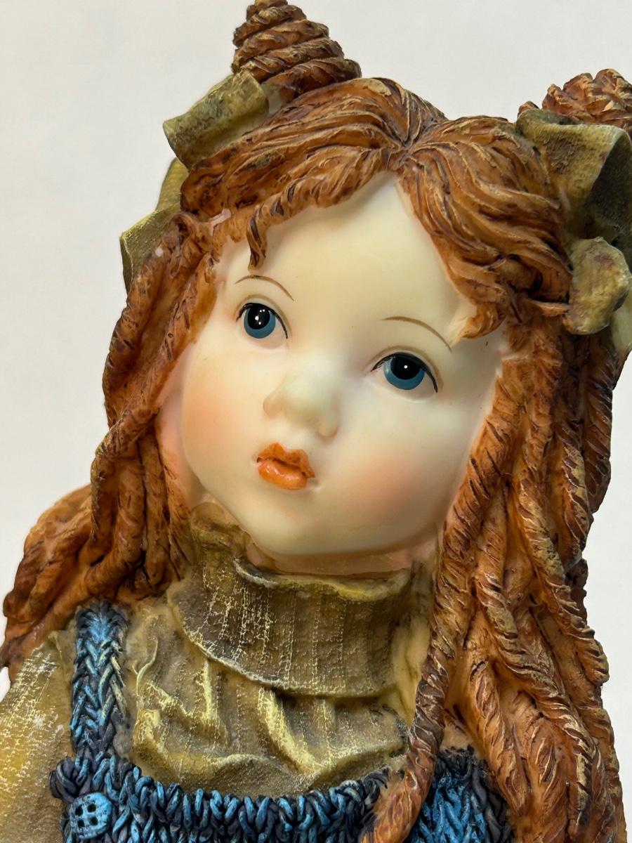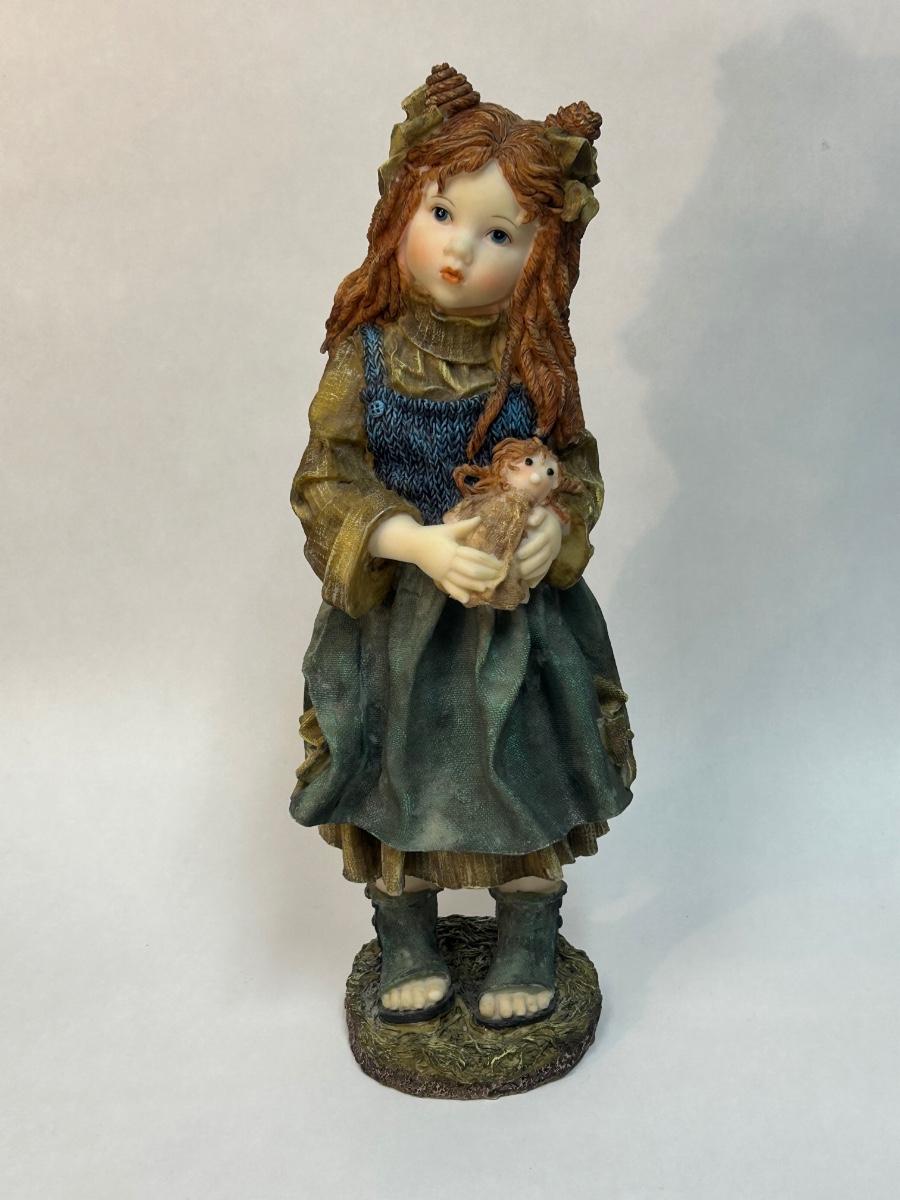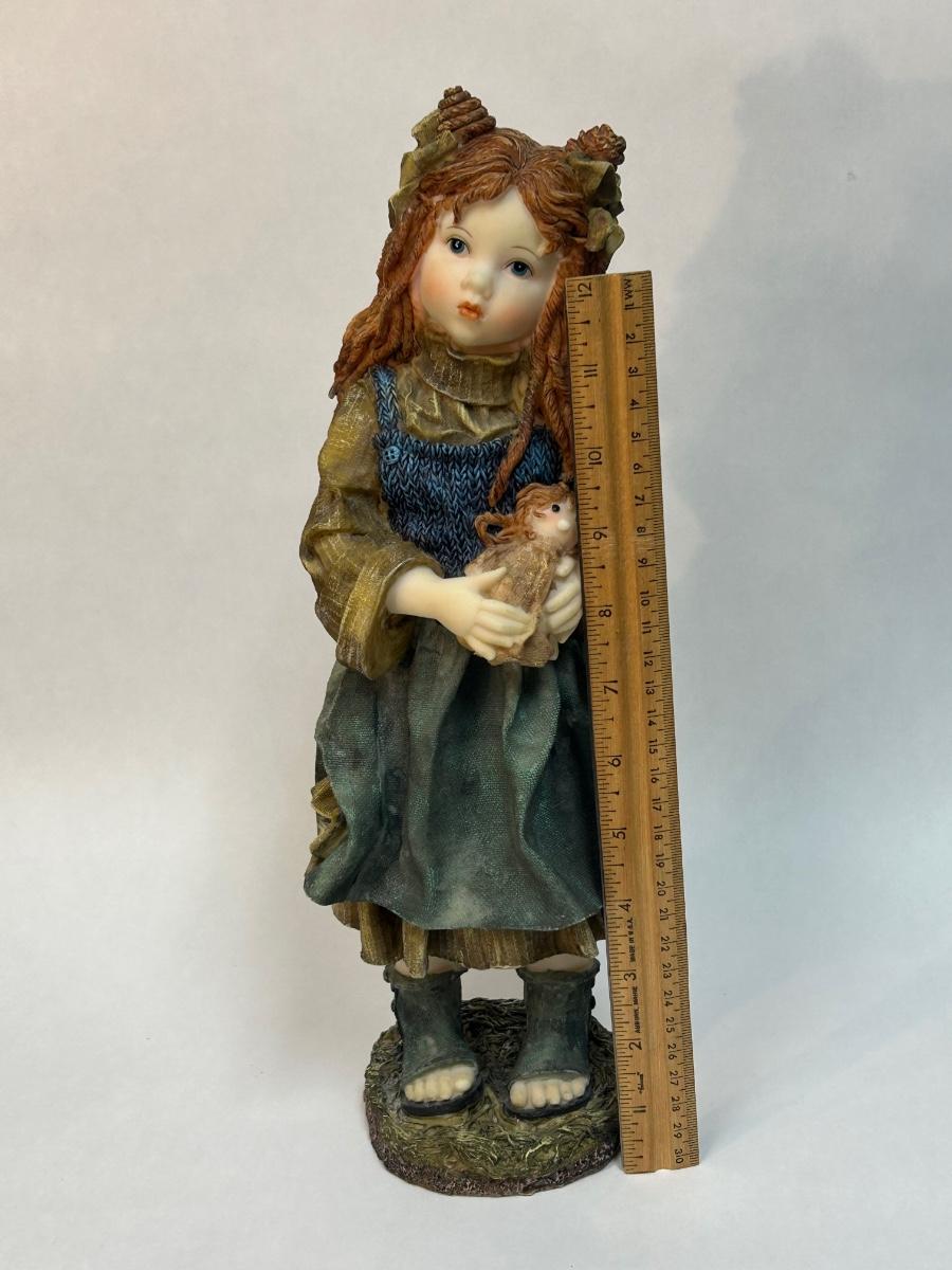 Resin Little Girl with Doll Statuette Garden Yard Art. Can be displayed inside or outside. In good condition. About 14" size.