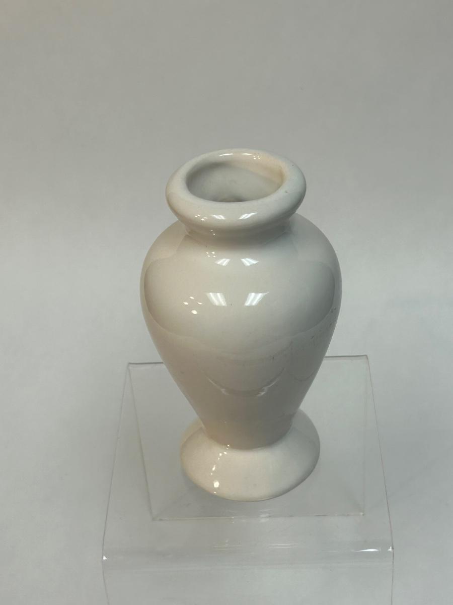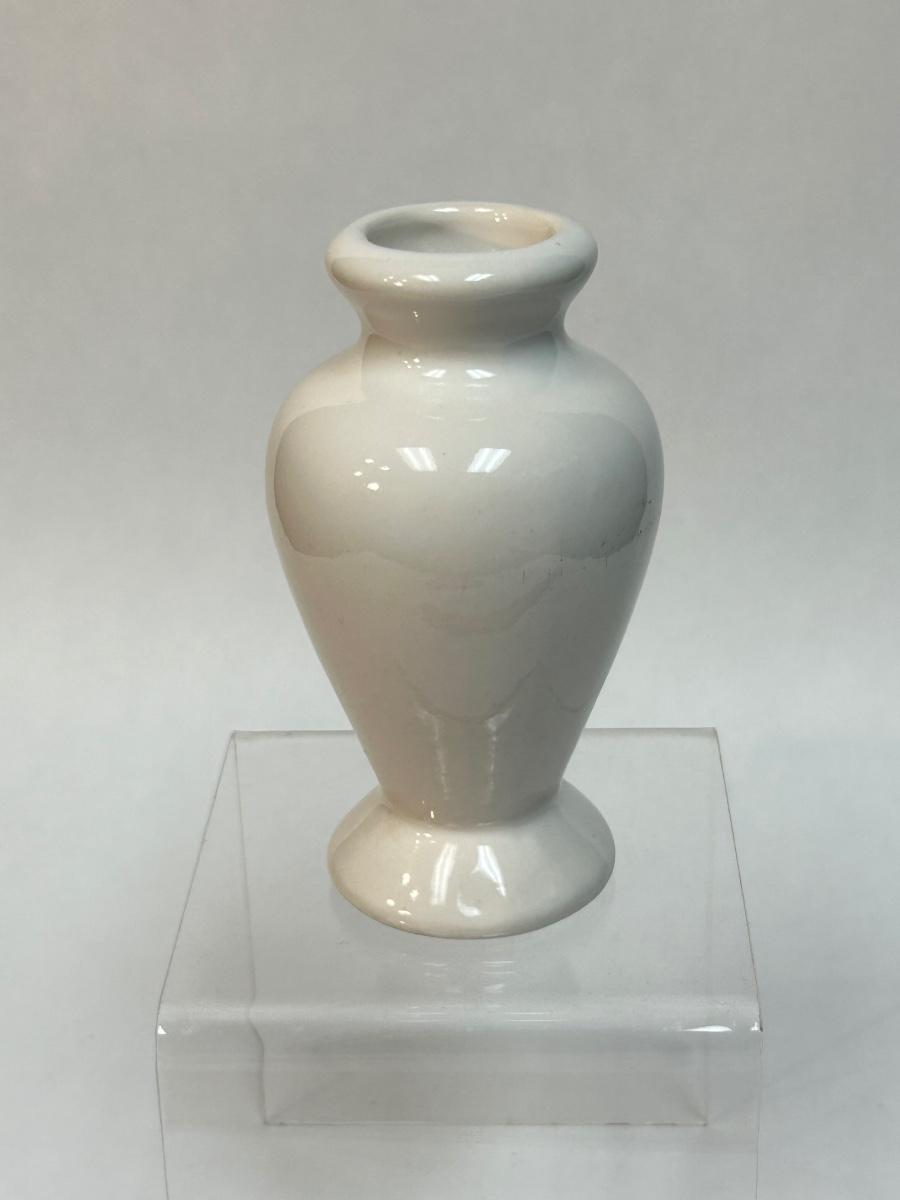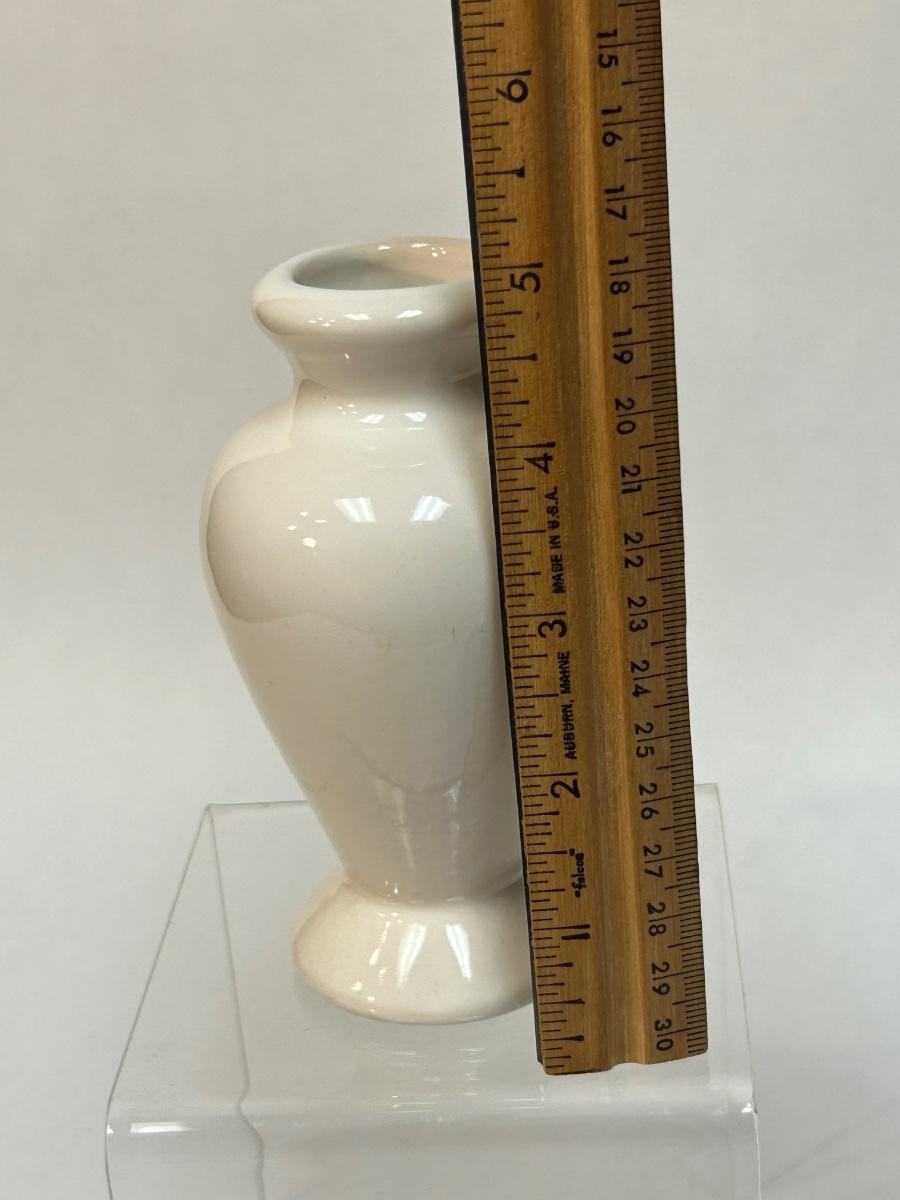 Small White Ceramic Flower Bud Vase. In good condition. About 5" size.