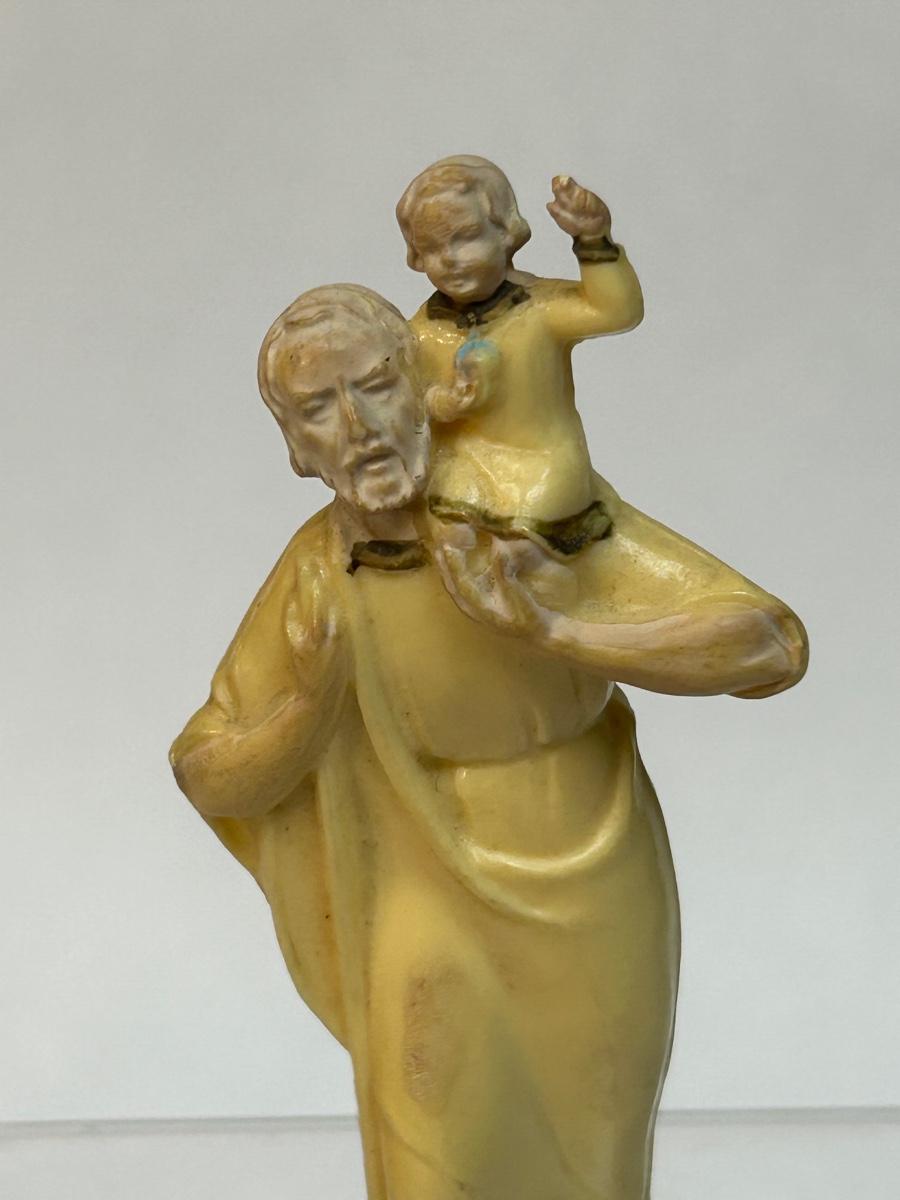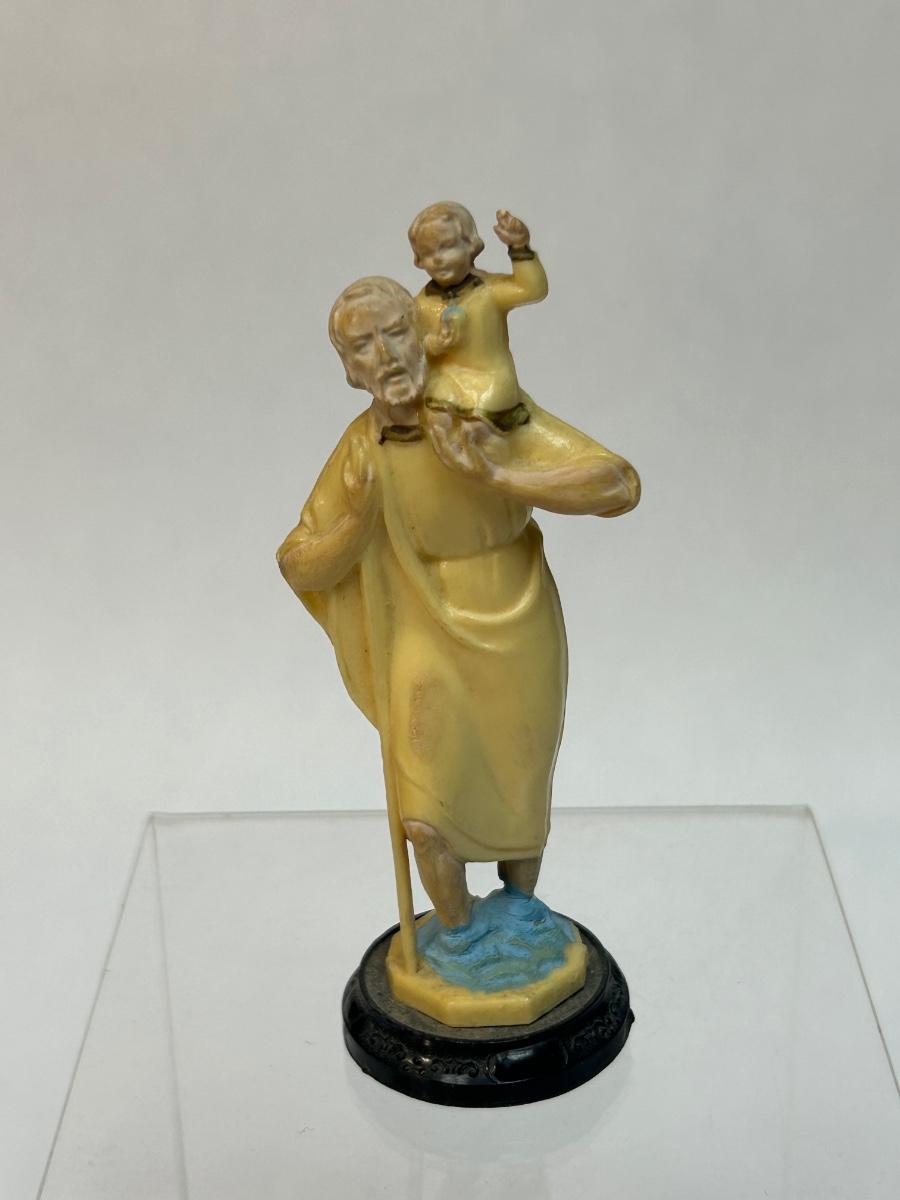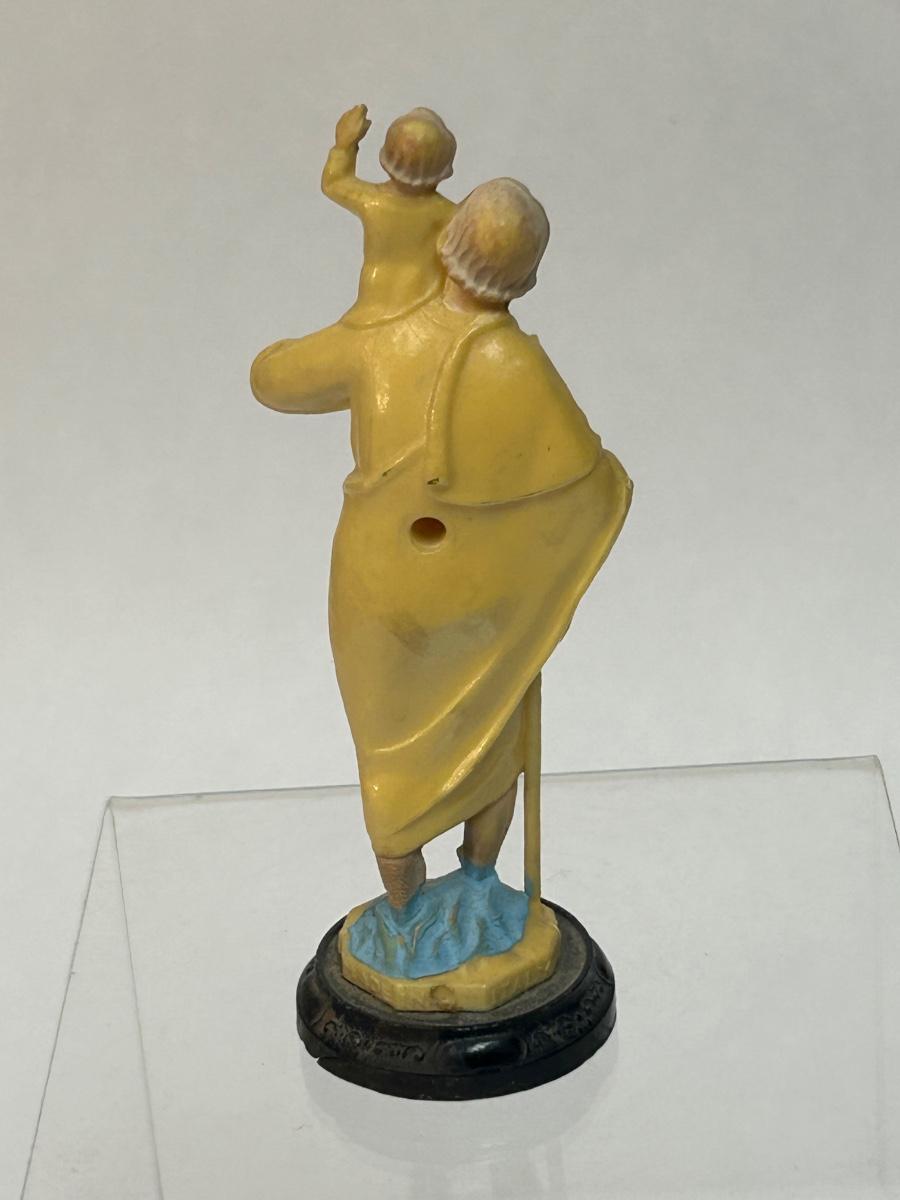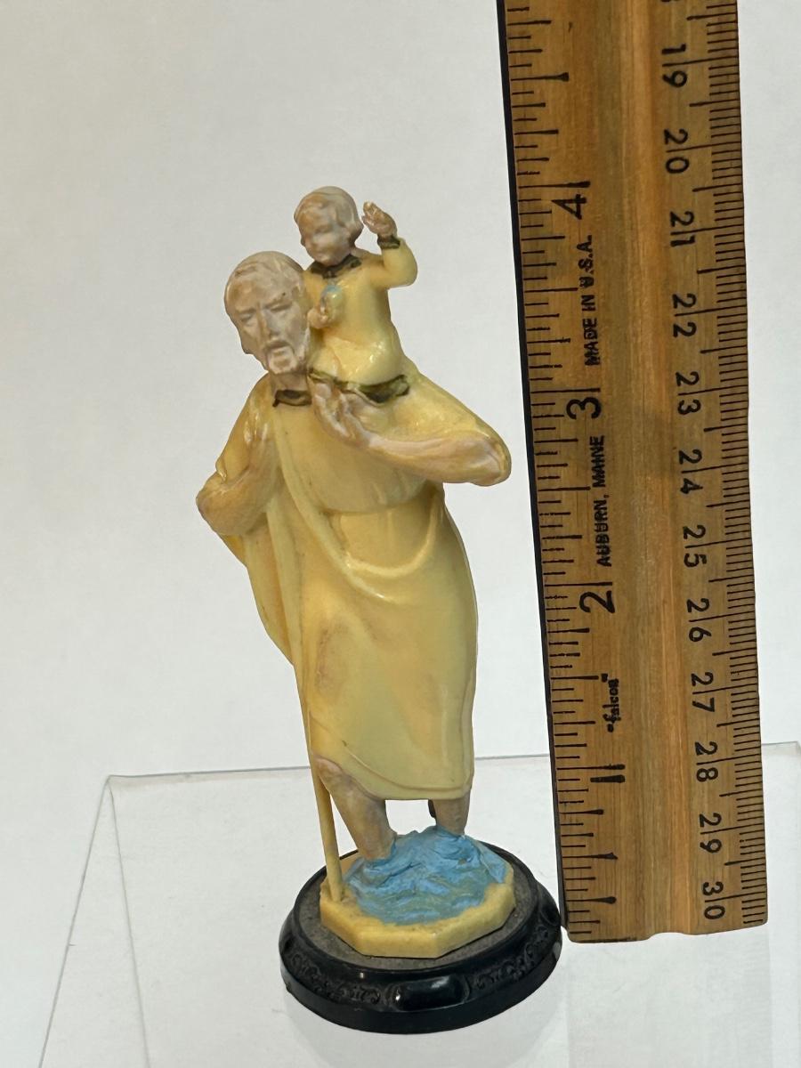Vintage Celluloid Plastic Religious Spiritual Figurine St. Christopher with Child Made in Italy