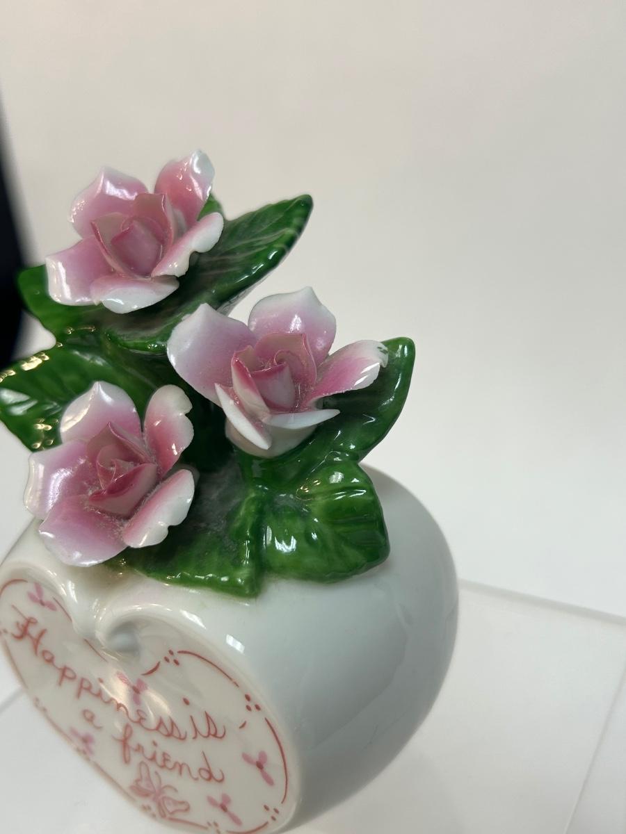 Happiness is a Friend Ceramic Porcelain Heart with Flowers Figurine