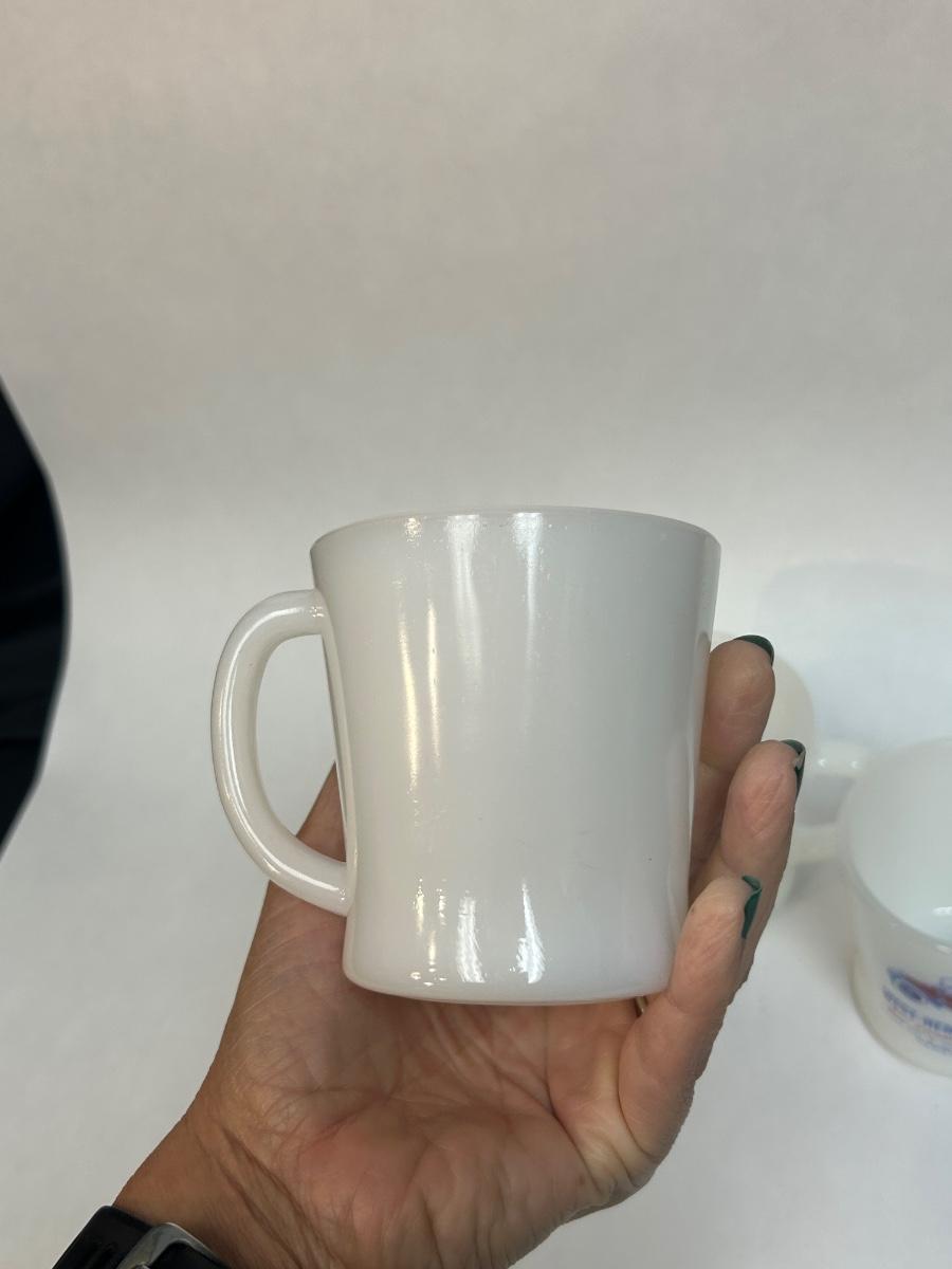 Set of Three West-Herr Ford Dealership Logo Milk Glass Coffee Cups