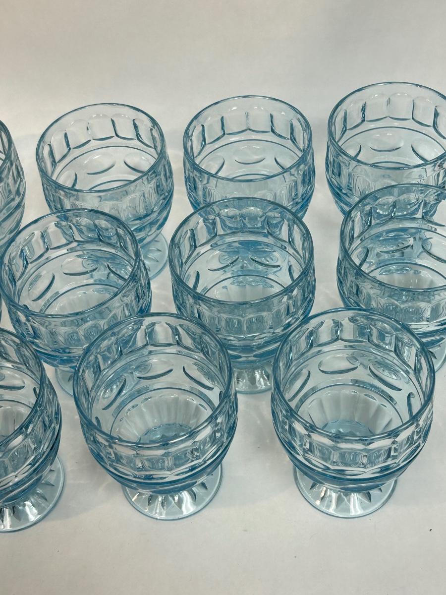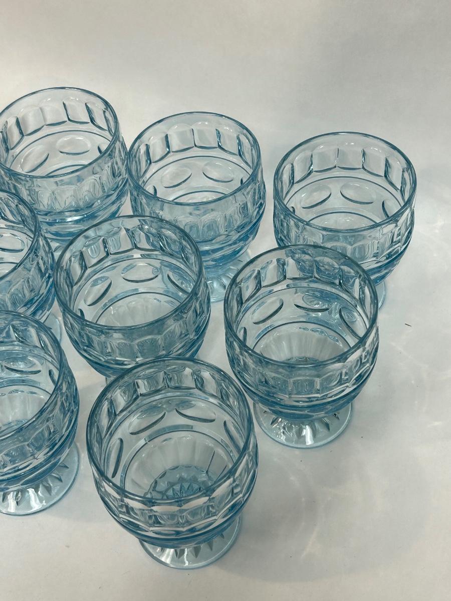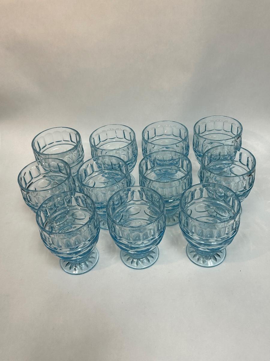 Vintage Fostoria Hermitage Pale Blue Glass Footed Juice Glass Drink Glasses Goblets. In good condition. Set of 11.