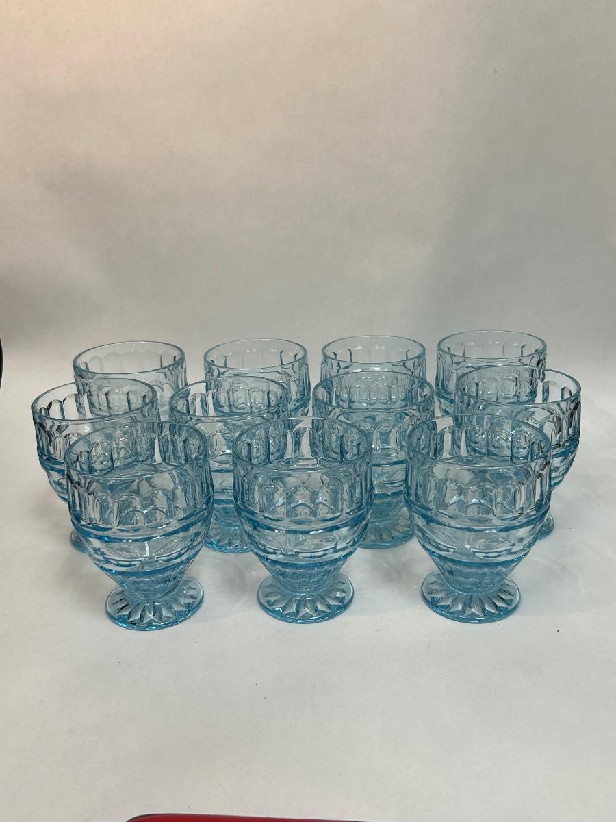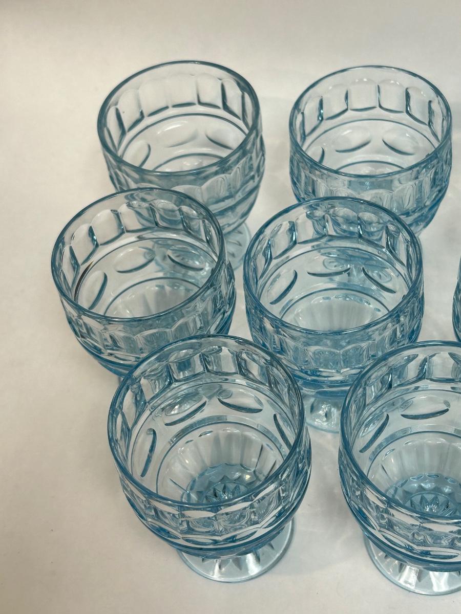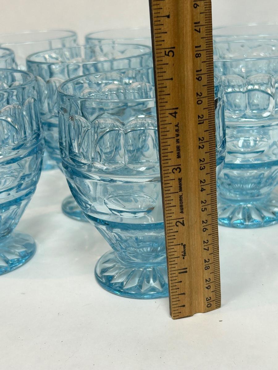 Vintage Fostoria Hermitage Pale Blue Glass Footed Juice Glass Drink Glasses Goblets. In good condition. Set of 11.