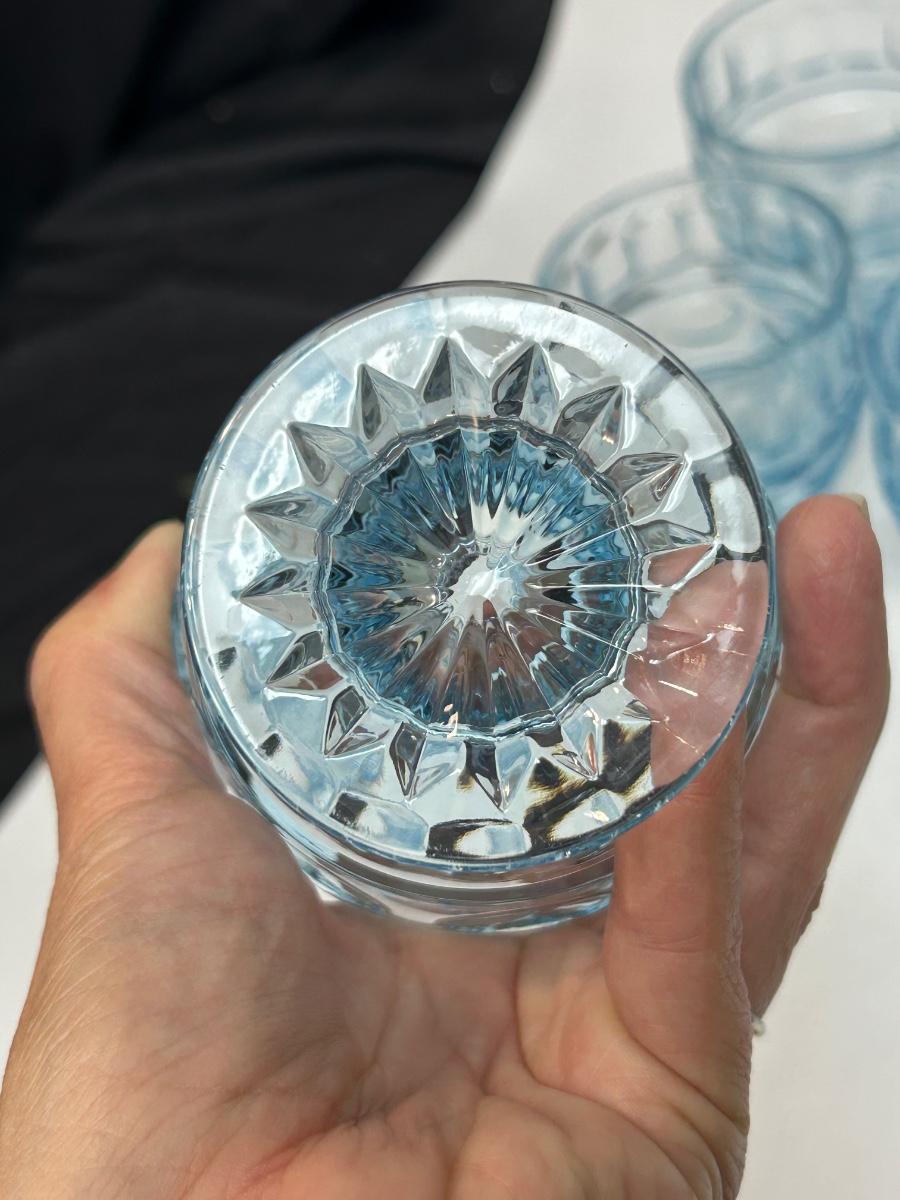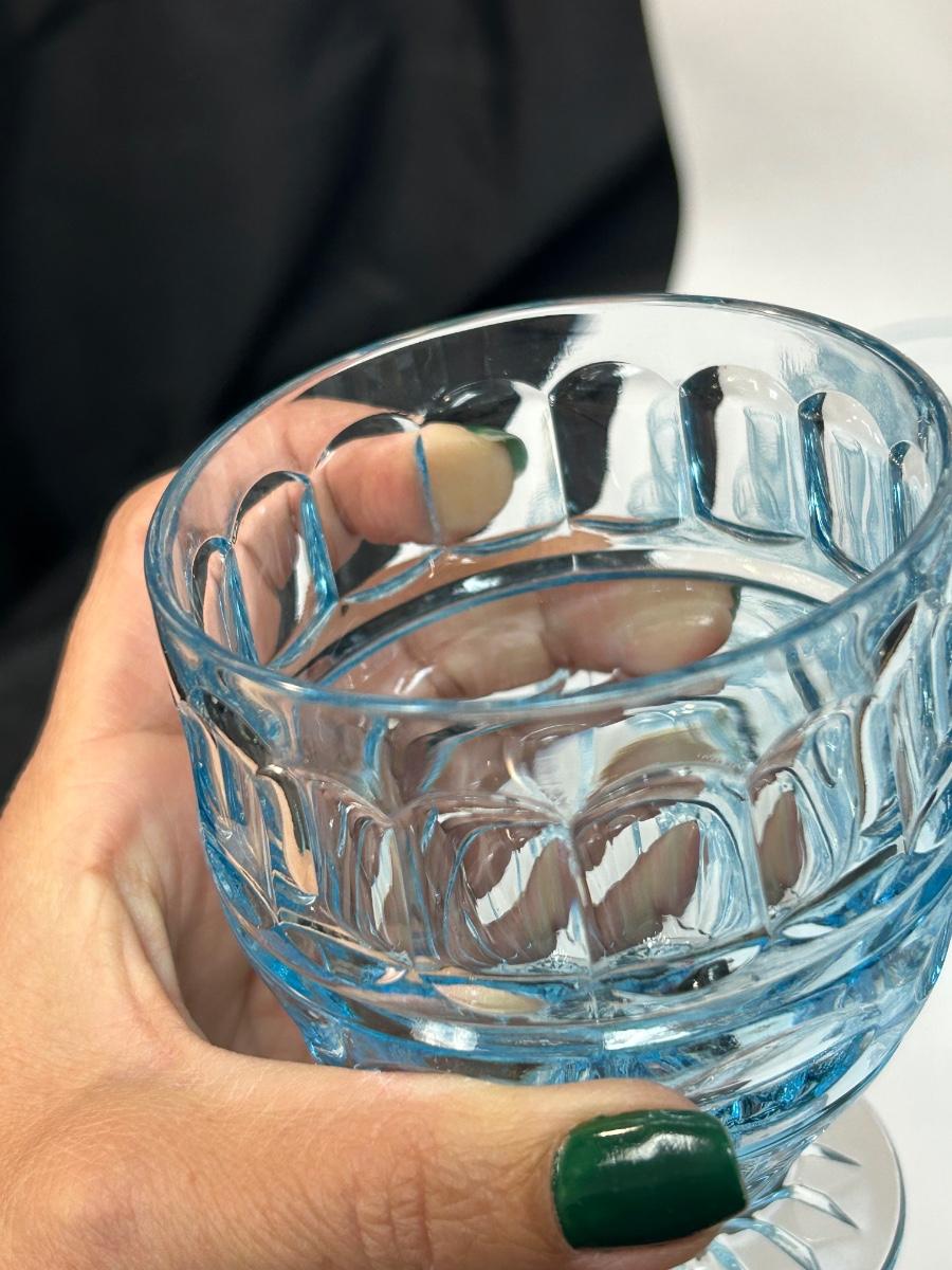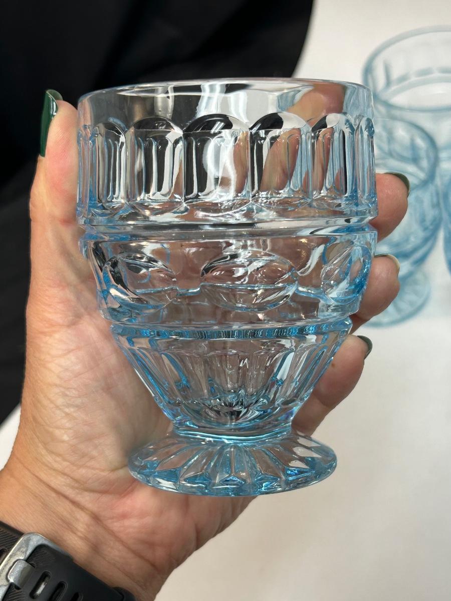 Vintage Fostoria Hermitage Pale Blue Glass Footed Juice Glass Drink Glasses Goblets