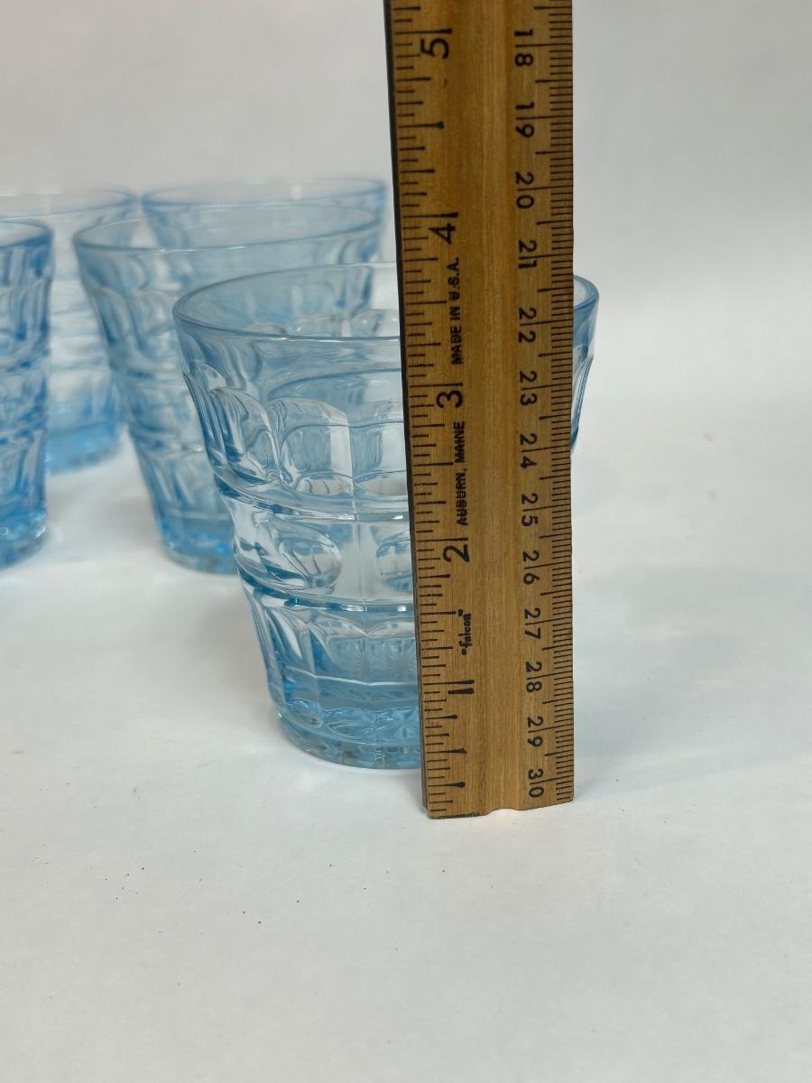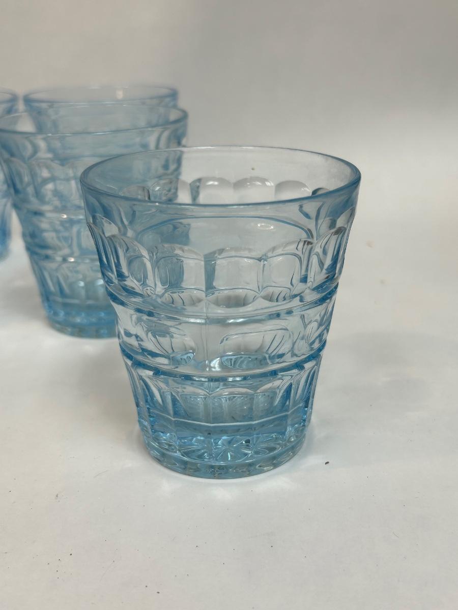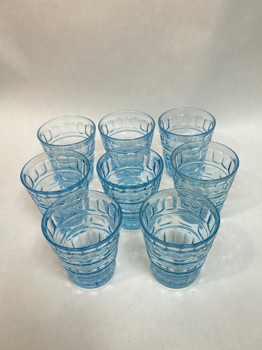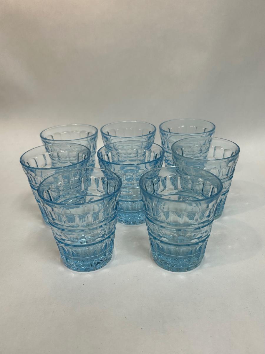 Vintage Pale Blue Fostoria Hermitage Juice Drink Glasses Set of 8. In good condition, no chips. About 3" size.
