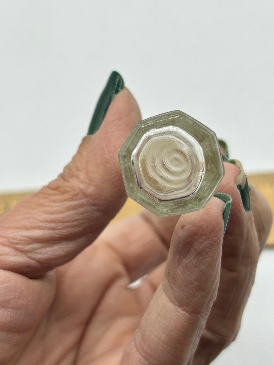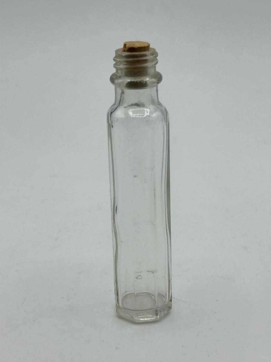 Vintage Ribbed Clear Glass Vile Bottle with Measurement Marks and Cork Stopper