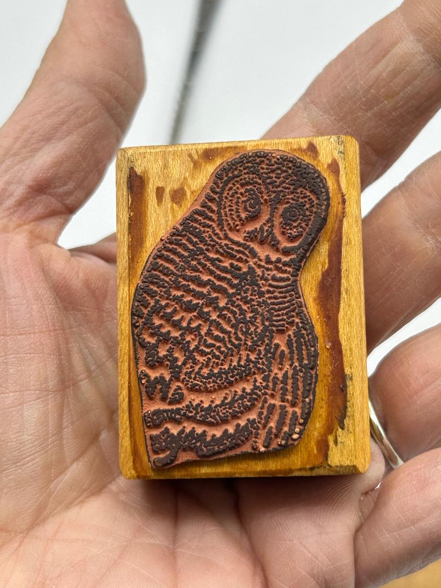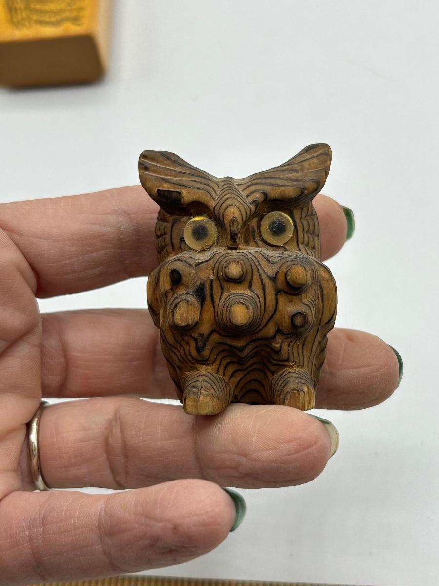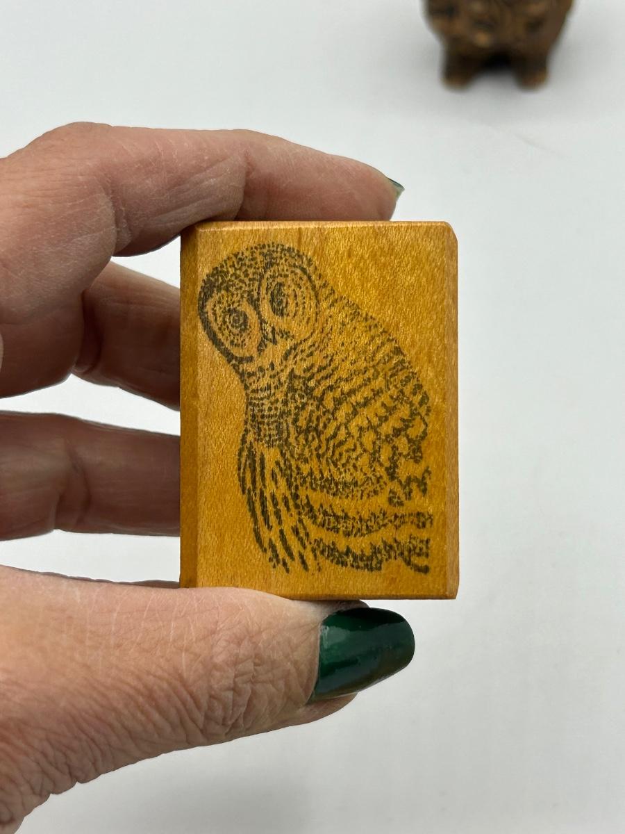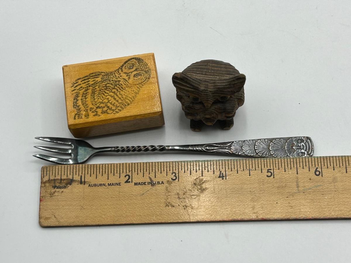 Owl Lovers trinket Lot Rubber Stamp Wooden Figurine and Small Fork