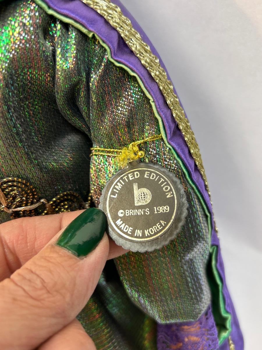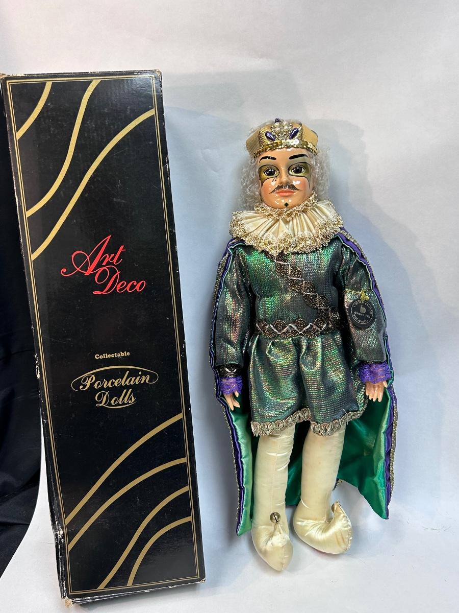 Vintage Brinns Authentic Collectible Edition Harlequin Jester Doll. Comes with box but I don't believe the box is original to doll. In good condition. Porcelain with soft body.