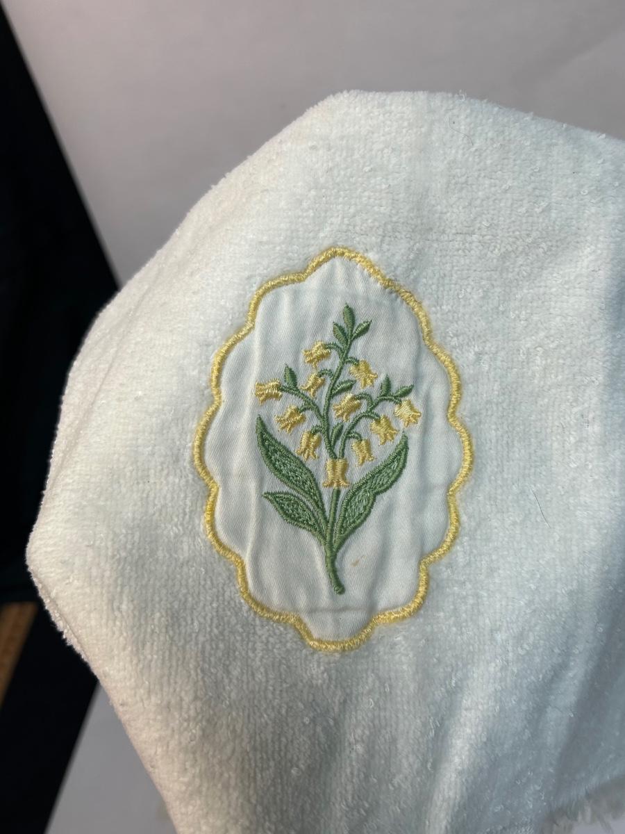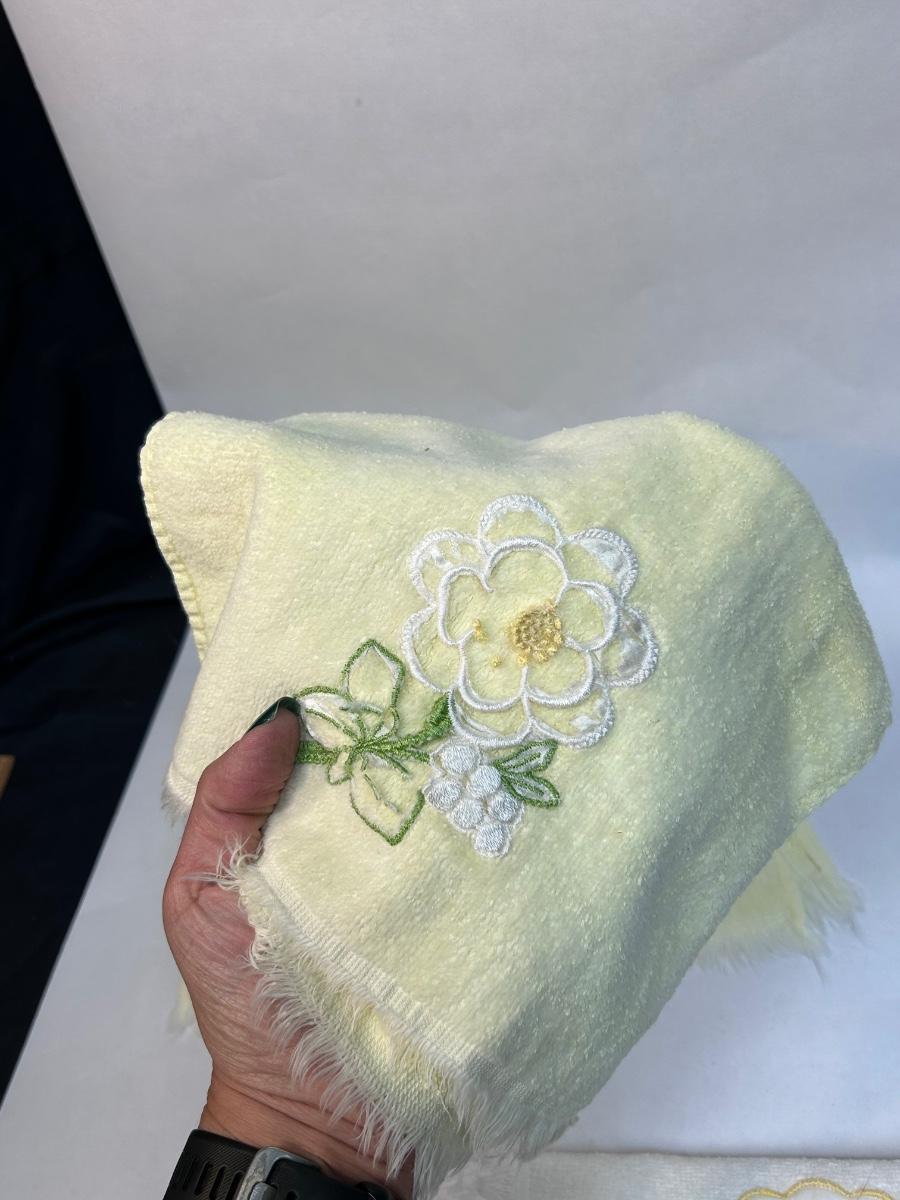 Lot of Three Flower Embroidered Yellow and White Hand Fingertip Towels