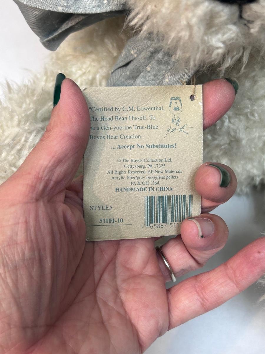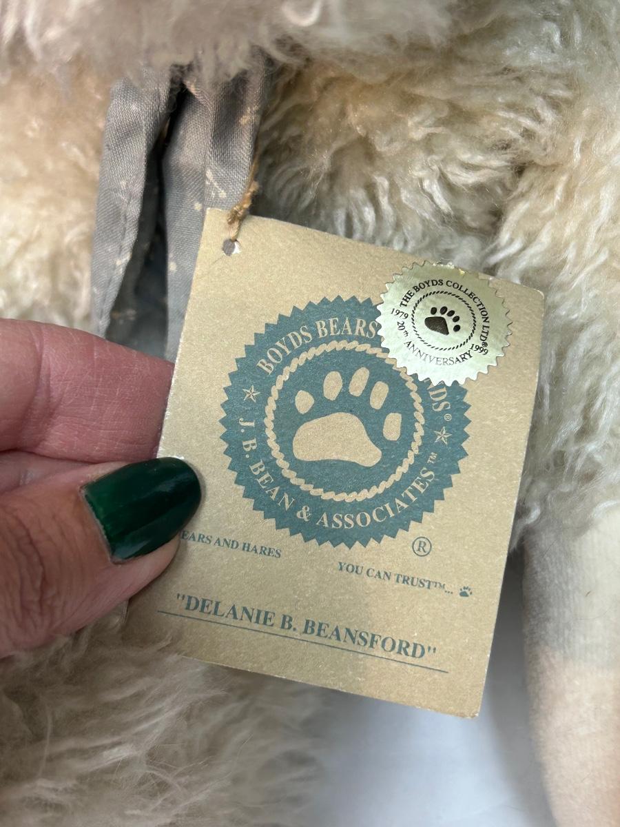 Vintage Light Tan Cream Colored Boyd's Bears Jointed Teddy Bear Stuffed Plush. In good condition. Light wear from age and display. Original hang tag attached.