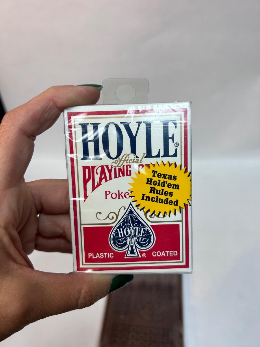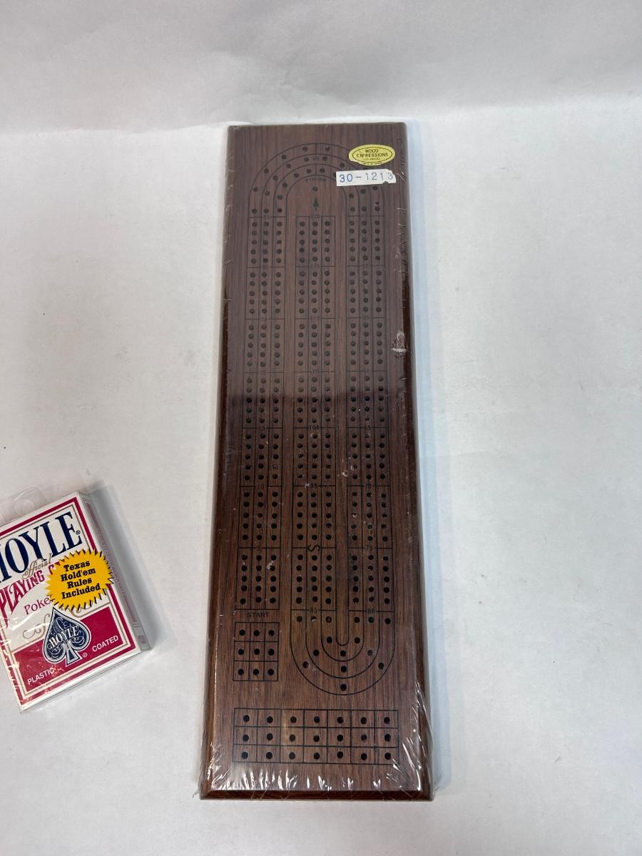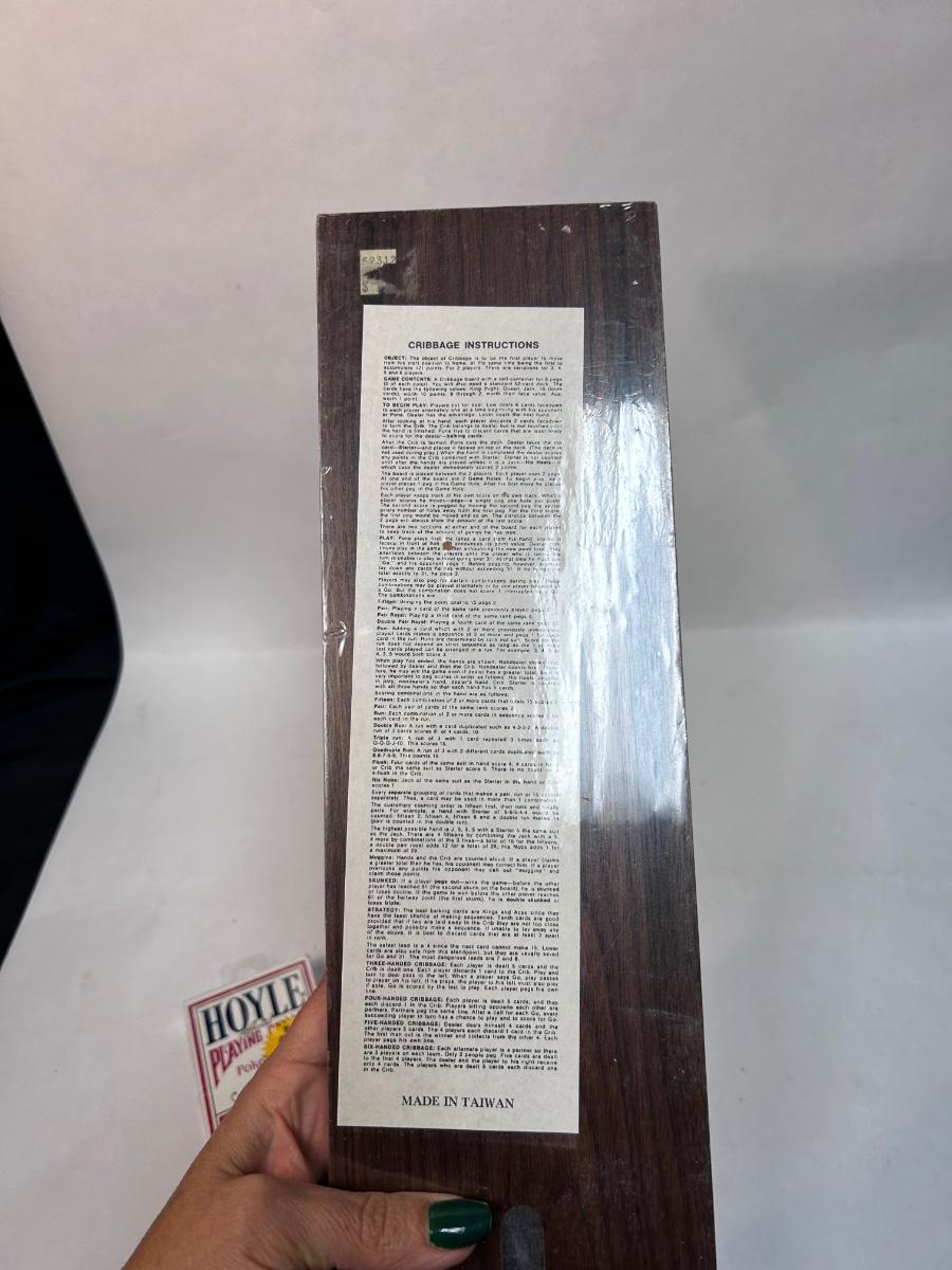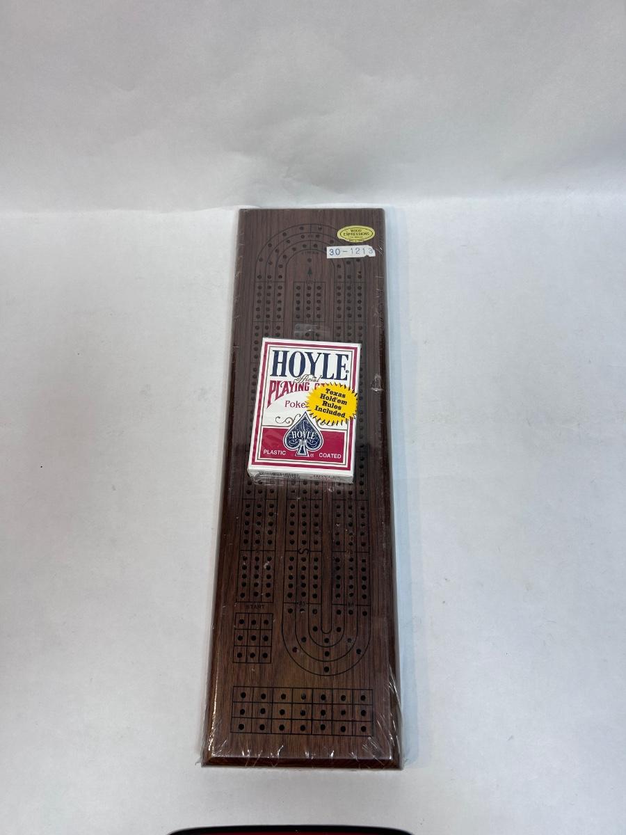 New in Plastic Hoyle Playing Cards & Wood Cribbage Board. Unopened. Both come with instructions of game play.