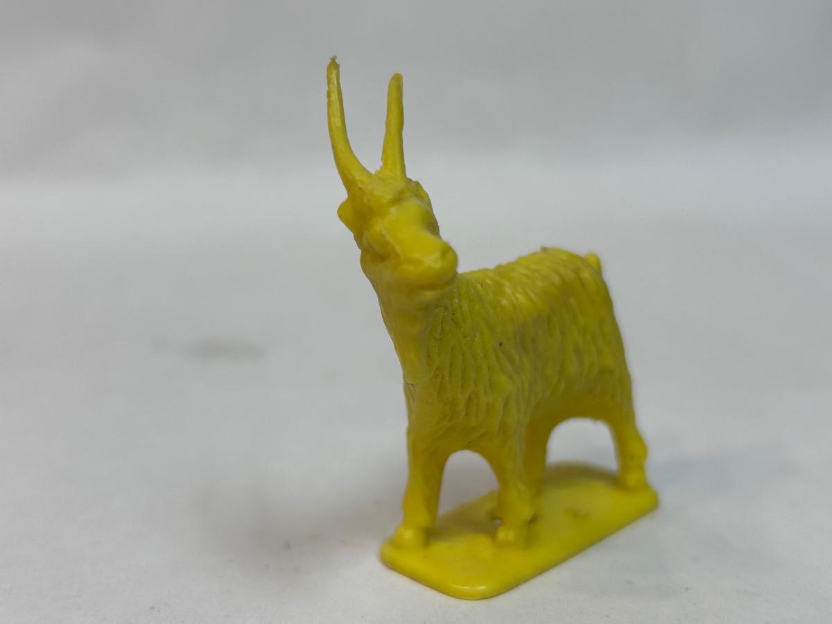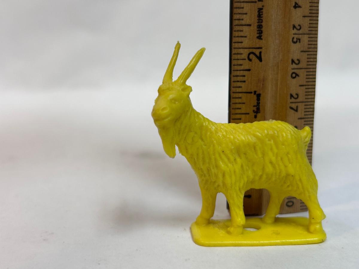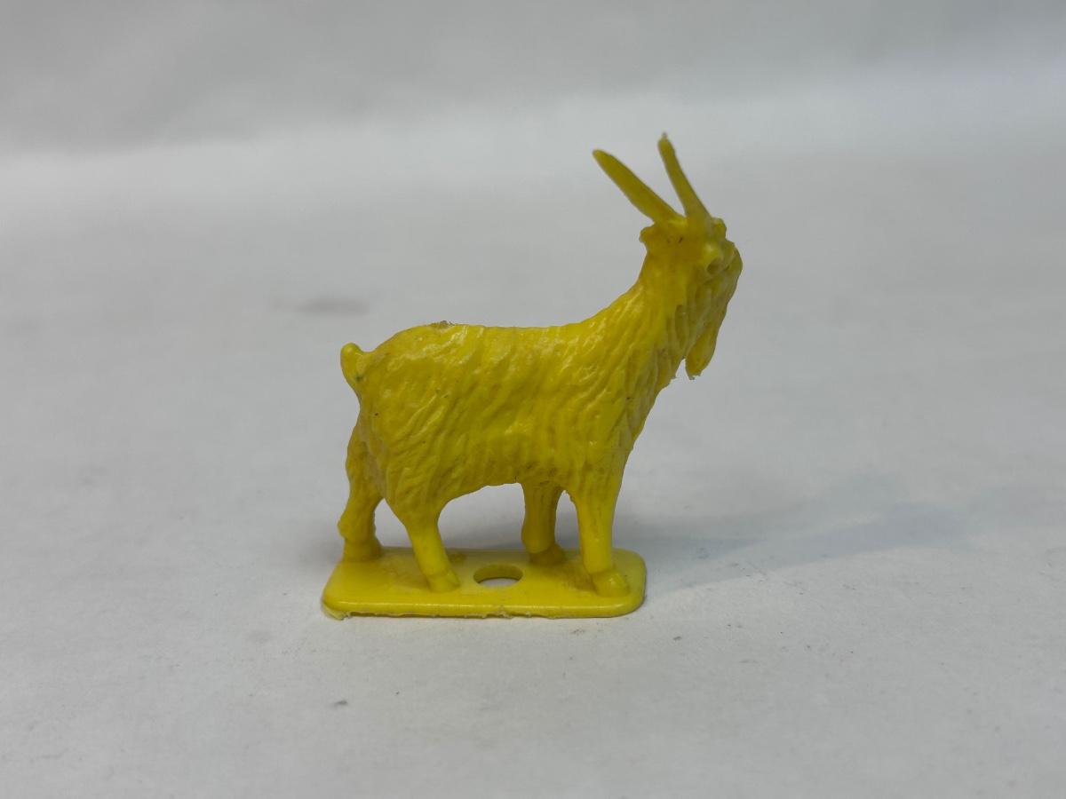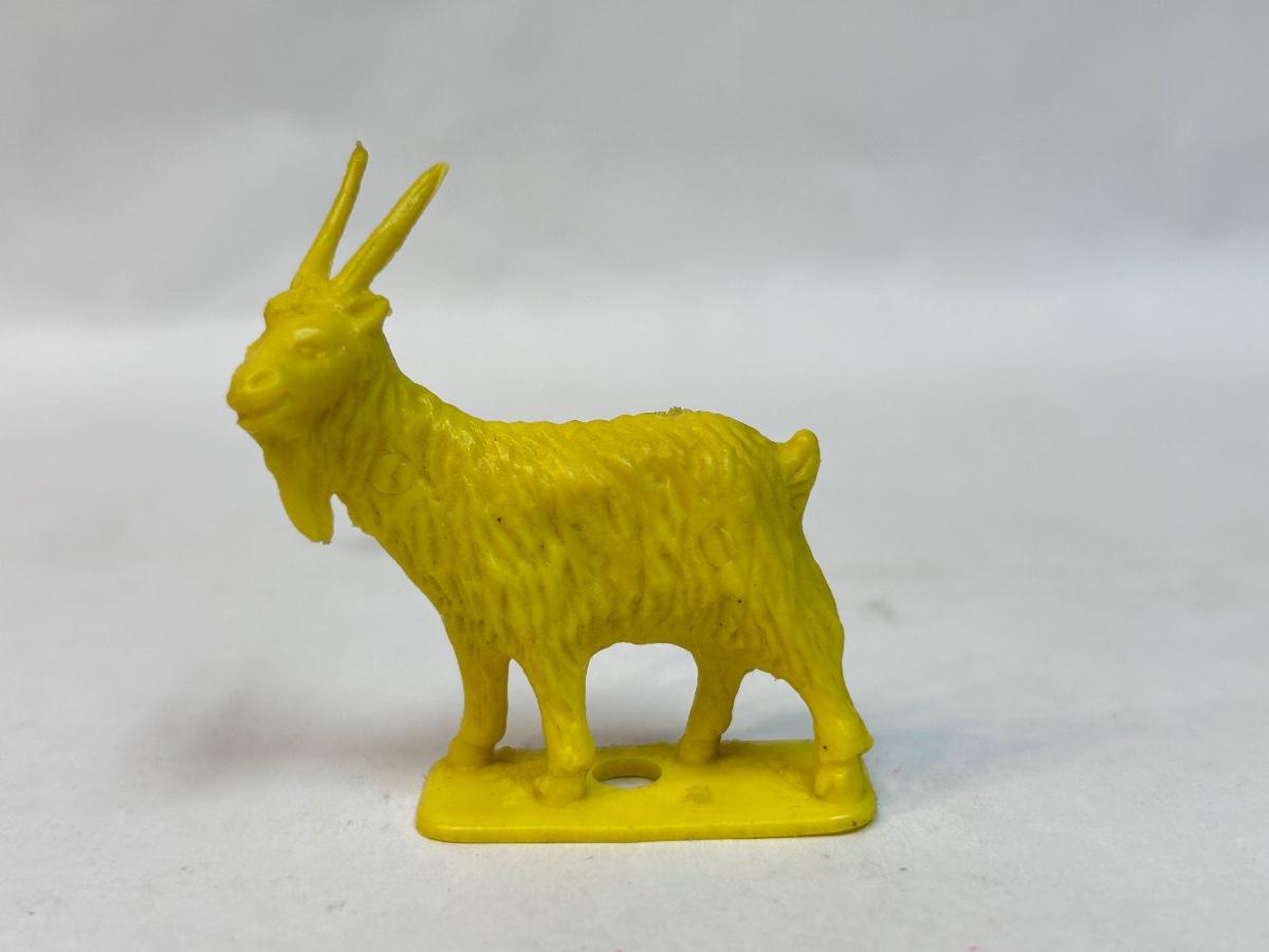 Vintage Yellow Plastic Billy Goat Animal Figurine. In good vintage condition. About 2" size. No maker info on figure.