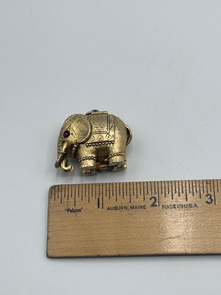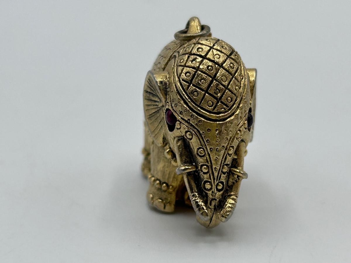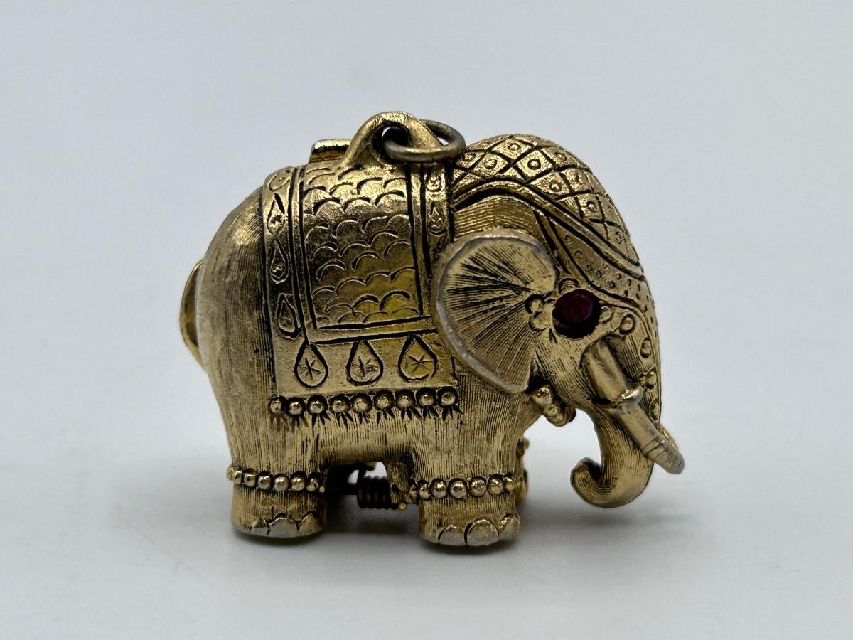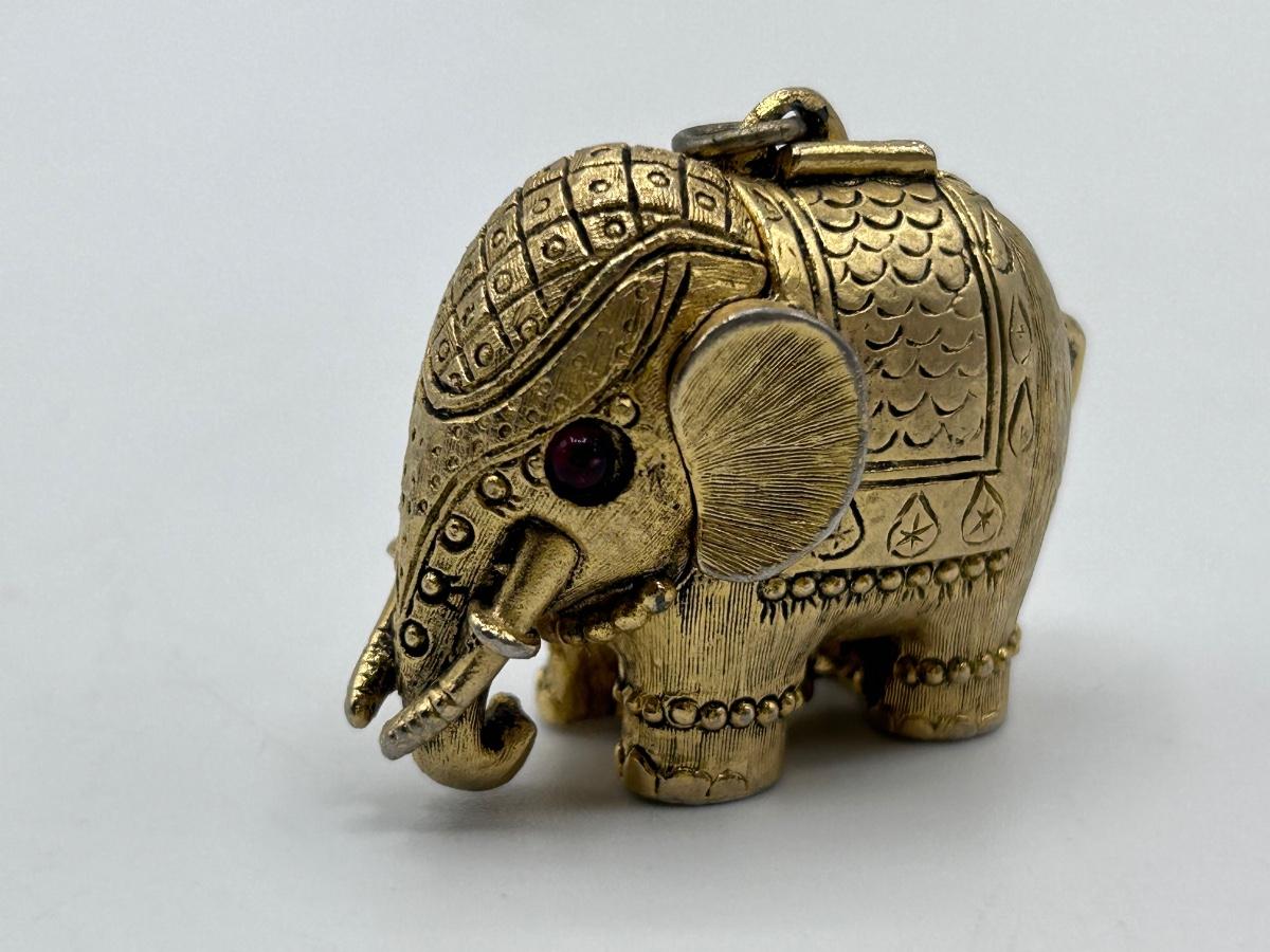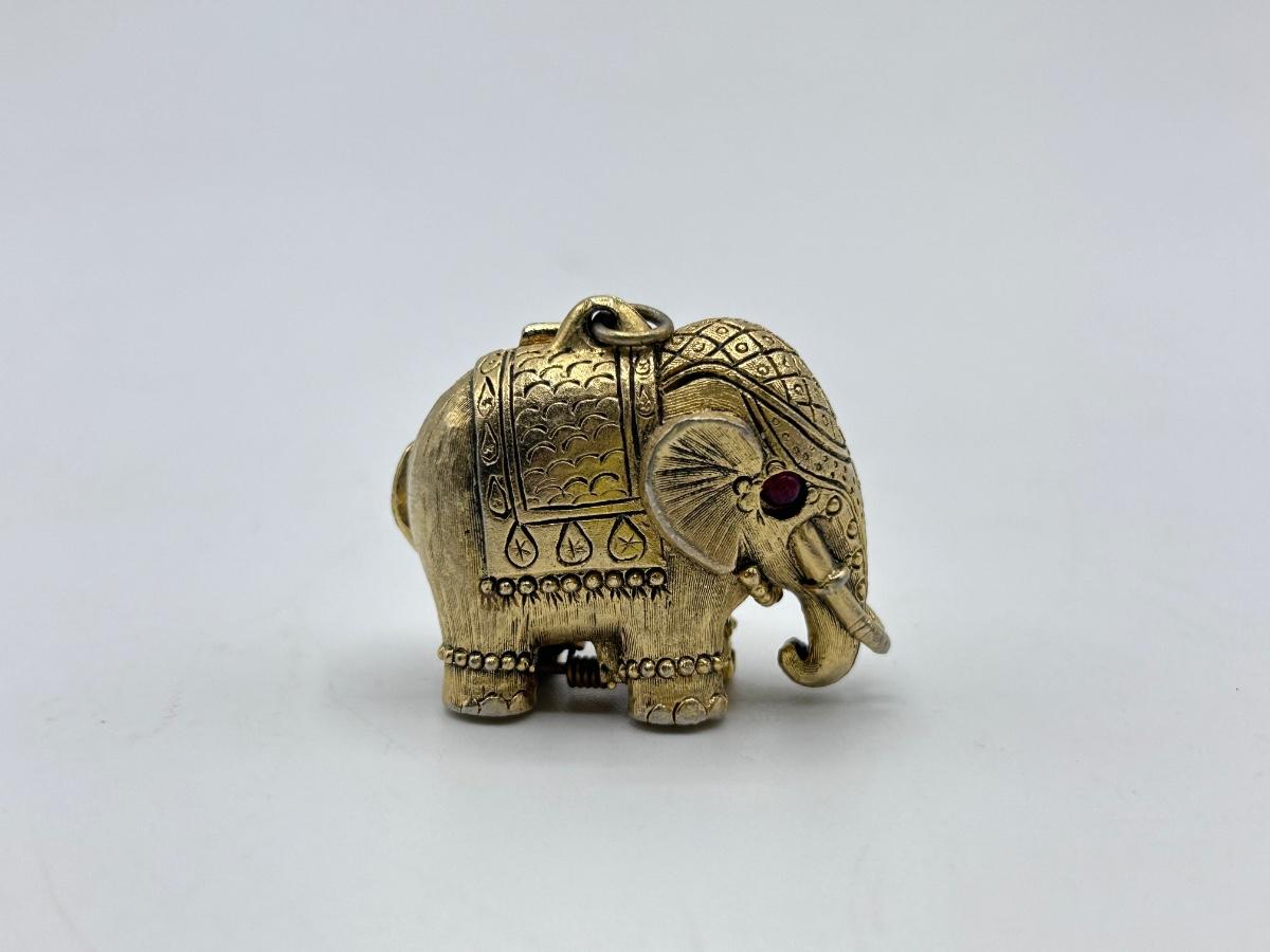 Vintage Gold Tone Elephant Hinged Scent Locket with Wax Perfume Inside. Gold tone elephant has jewel eyes, can be worn as charm. The perfume inside is old, it has a scent but not great from age.