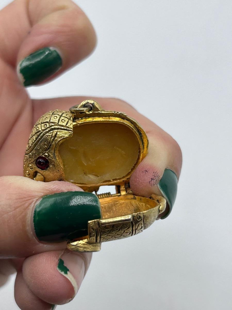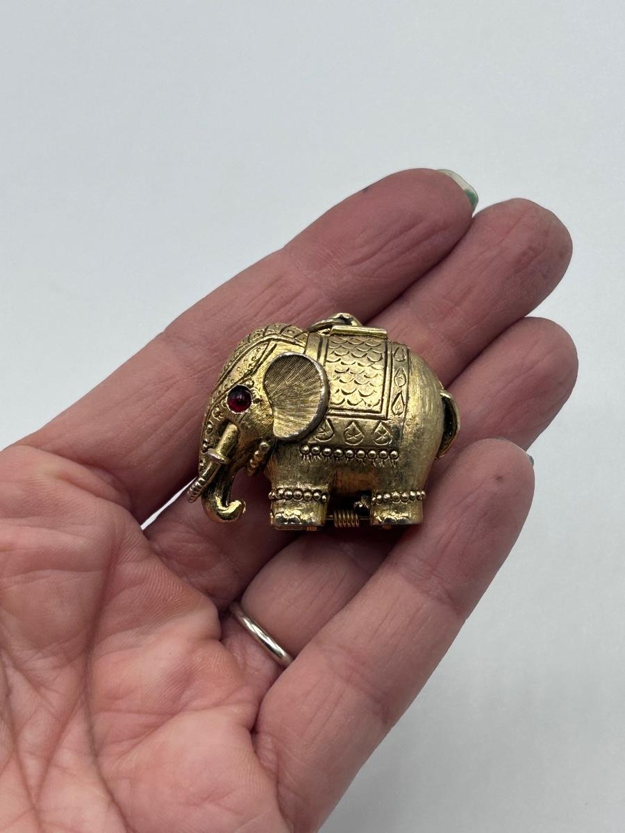 Vintage Gold Tone Elephant Hinged Scent Locket Trinket with Wax Perfume Inside